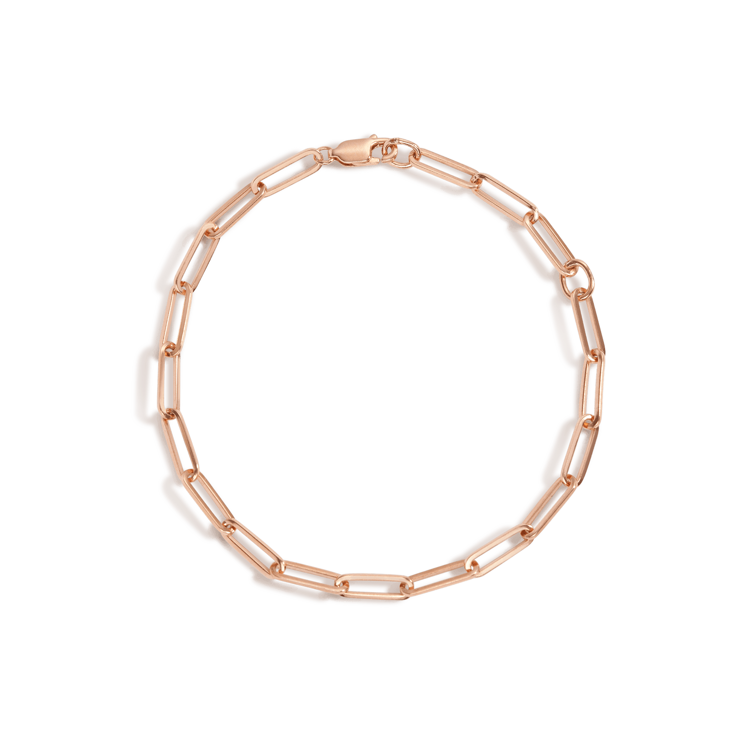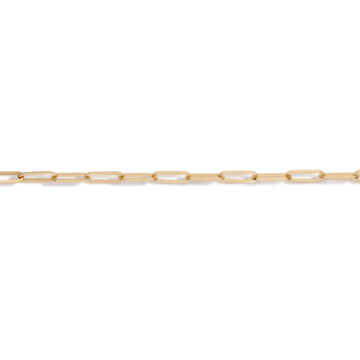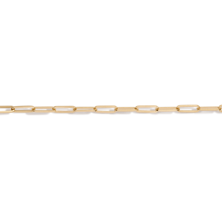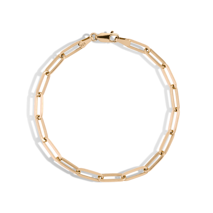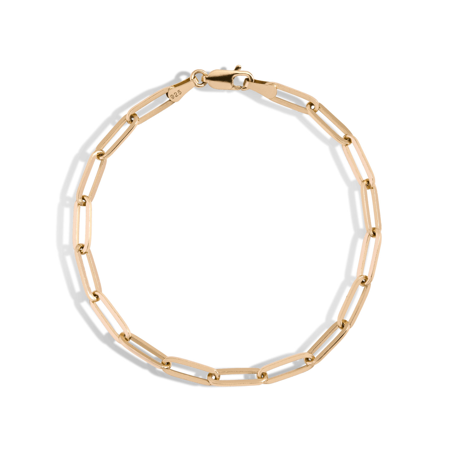 Crafted in gold vermeil with rectangular links. Width: 3.5mm. Thickness: 1.0mm. Length: 7'. Weight: 4.0–5.0g. Lobster clasp closure fits into any link for adjustable sizing.