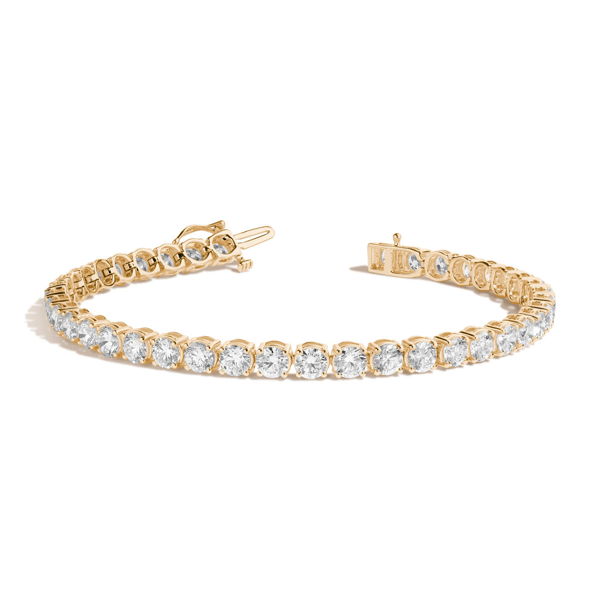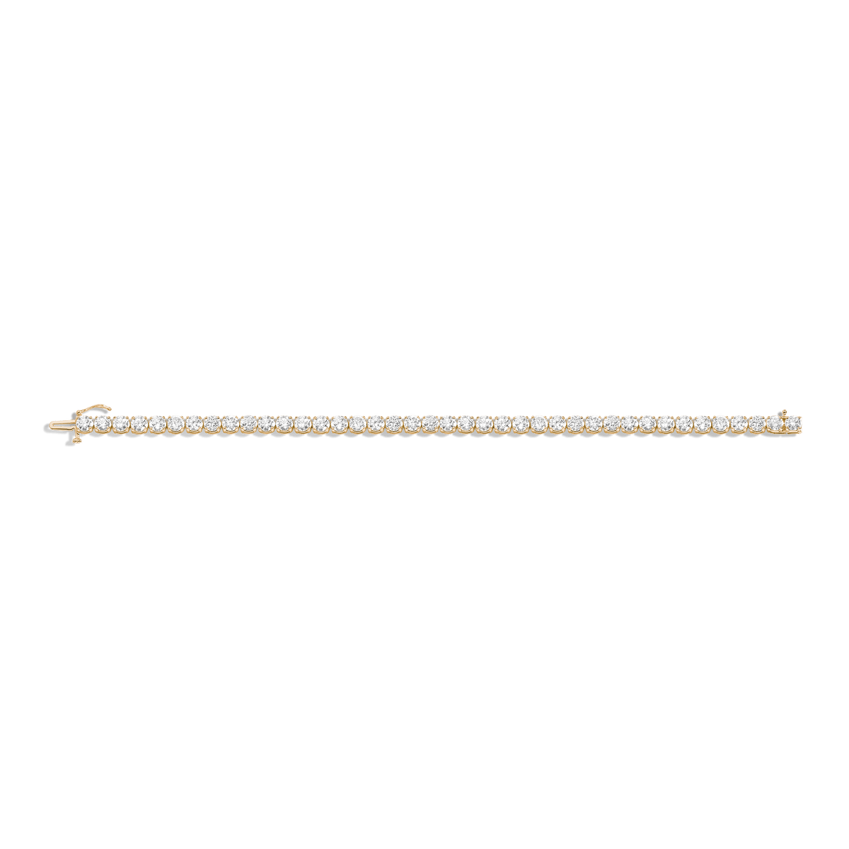 Crafted in 14k recycled gold. Prong-set SI2 clarity F/G color round lab grown diamonds, 4mm (0.25ct) each. Total carat weight: 10tcw. Width: 4.6mm. Thickness: 3.3mm. Length options: 6.5', 7', 7.5'. Weight: 11.3g. Secured with box clasp and safety catch.