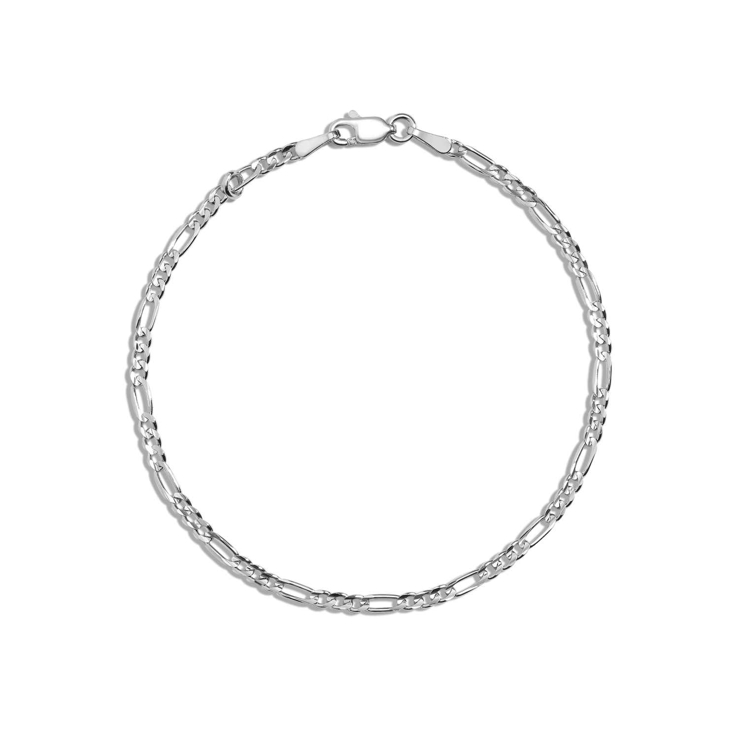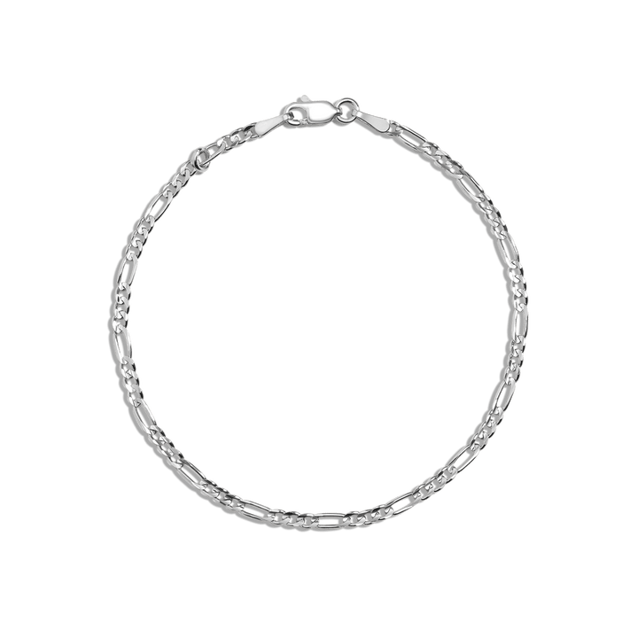 Crafted in vermeil with Figaro links, measuring 7'' in length, 2.4mm in width, 1.5mm in thickness, and weighing 1.6g. Secured with lobster clasp and jump ring.