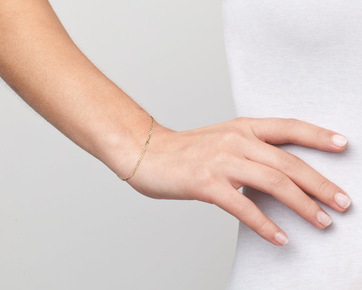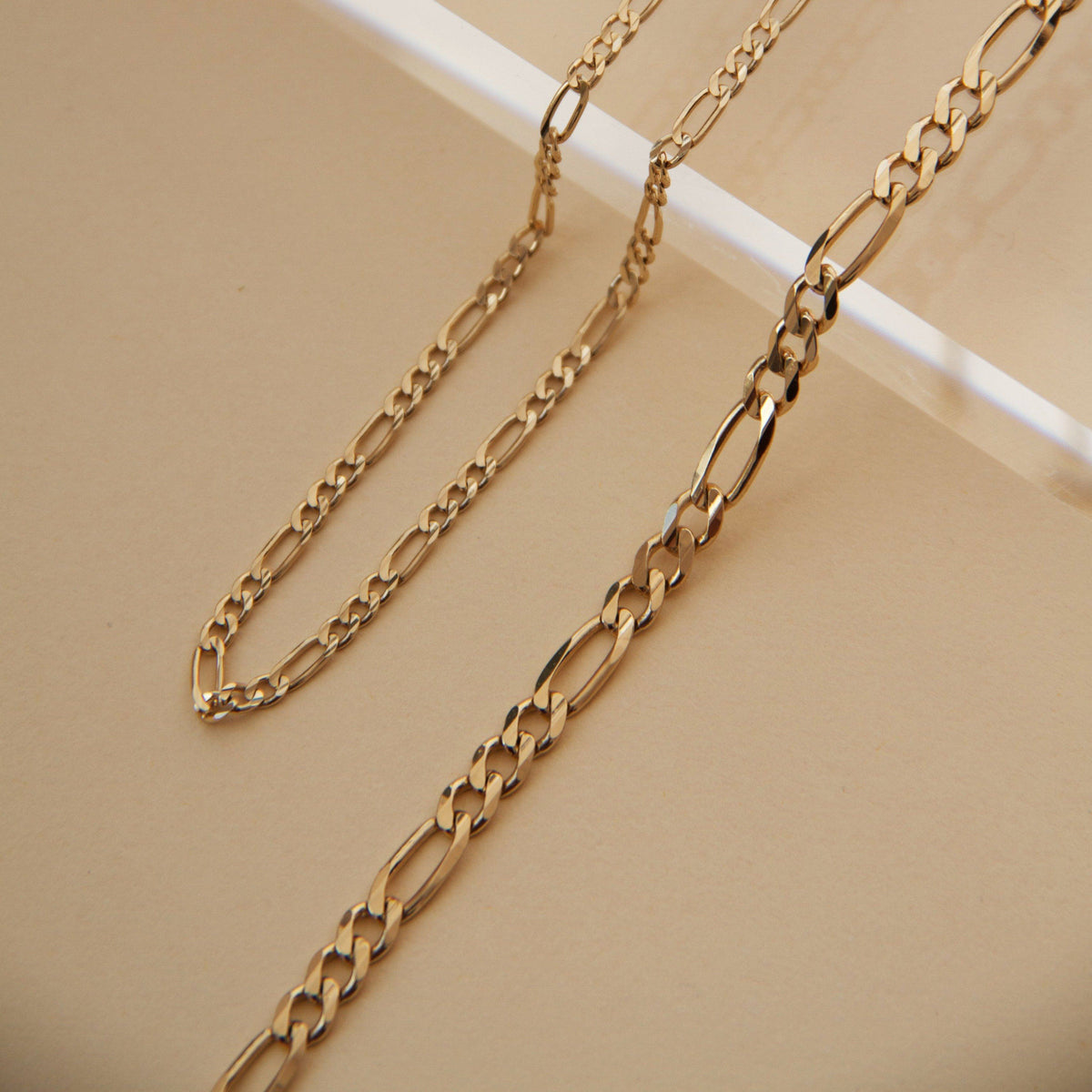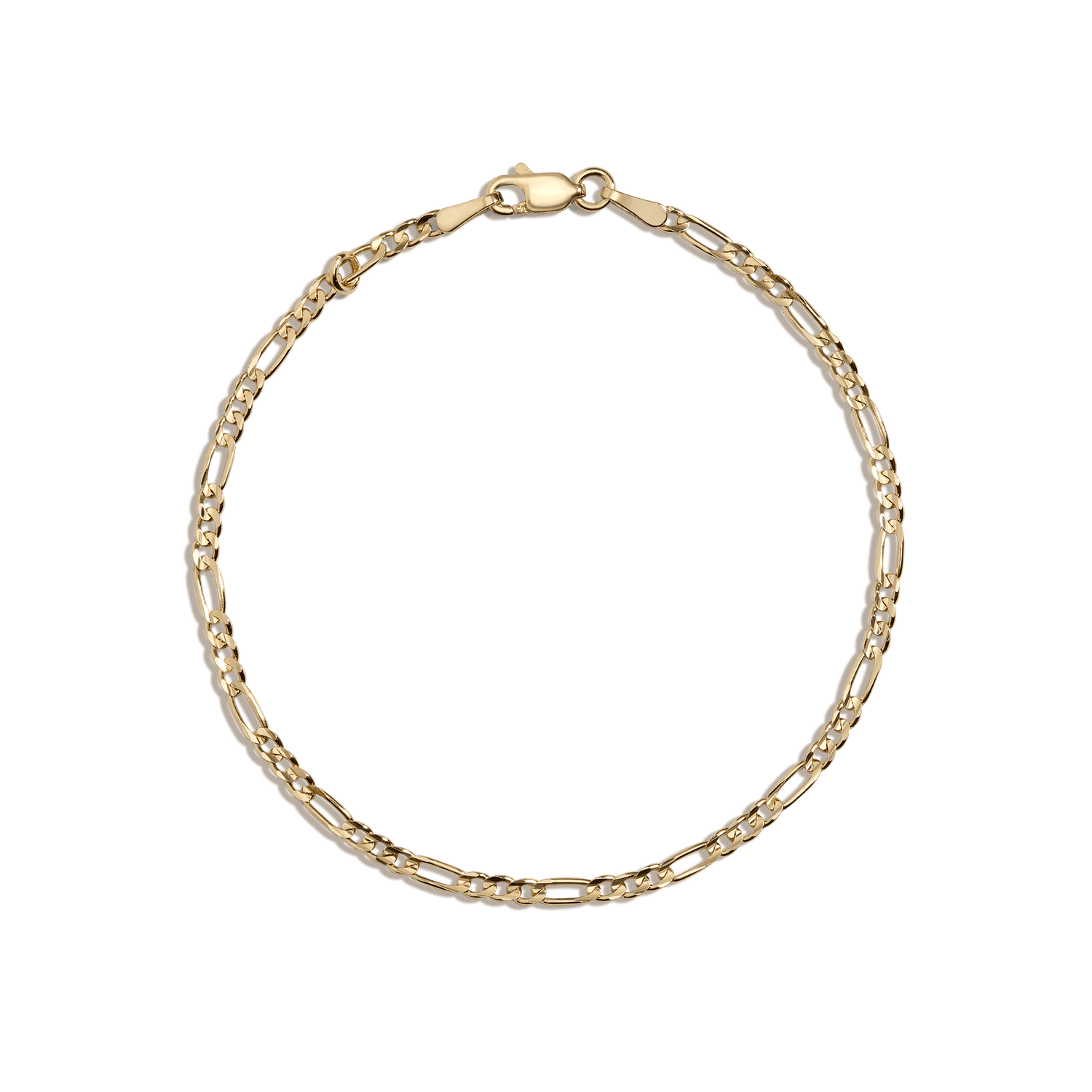 This Medium Gold Figaro Chain Bracelet by Aurate offers a refined and versatile take on a bold classic. The medium-weight Figaro links are ideal for both layering and standalone wear, creating a stylish statement that suits any occasion. A go-to piece for subtle sophistication.