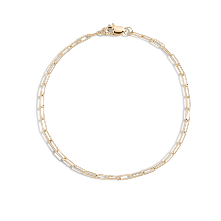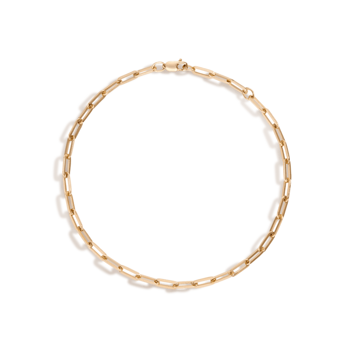 This Medium Paperclip Chain Bracelet by Aurate (Vermeil) speaks in quiet strength. Its rectangular links form a sleek, modern silhouette—bold yet restrained. Perfect as a standalone or for stacking, it’s a wearable reminder of resilience and subtle statement. A staple piece that pairs intention with style.