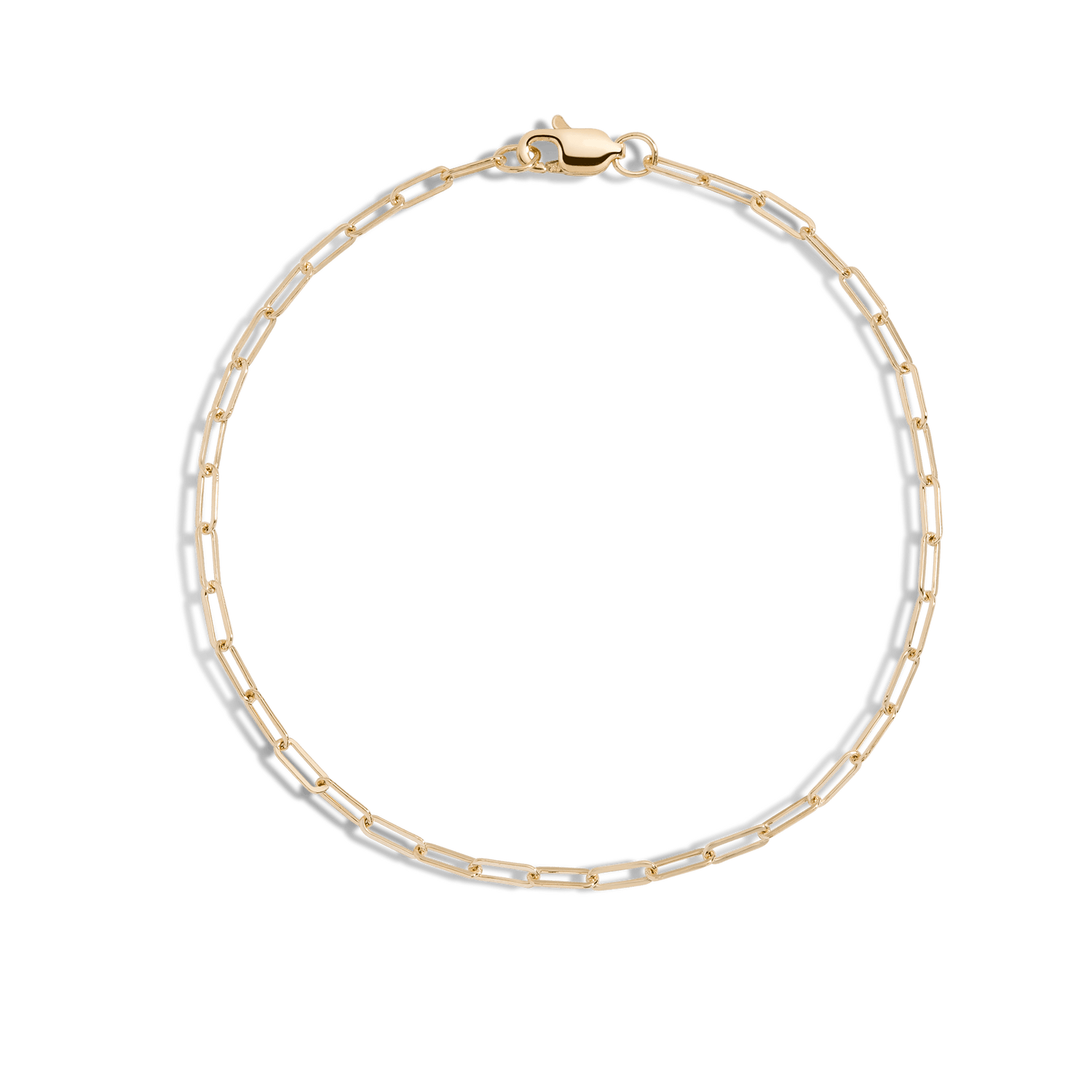 Crafted in gold vermeil. Rectangular links with a lobster clasp. Chain length: 7'. Width: 2.0mm. Thickness: 0.5mm. Weight: 2.0–2.5g.