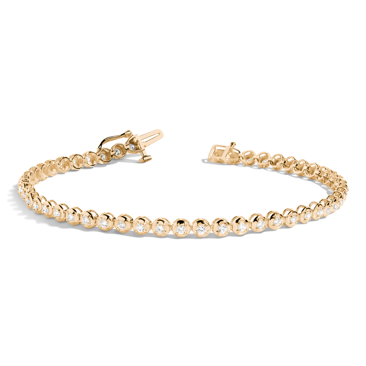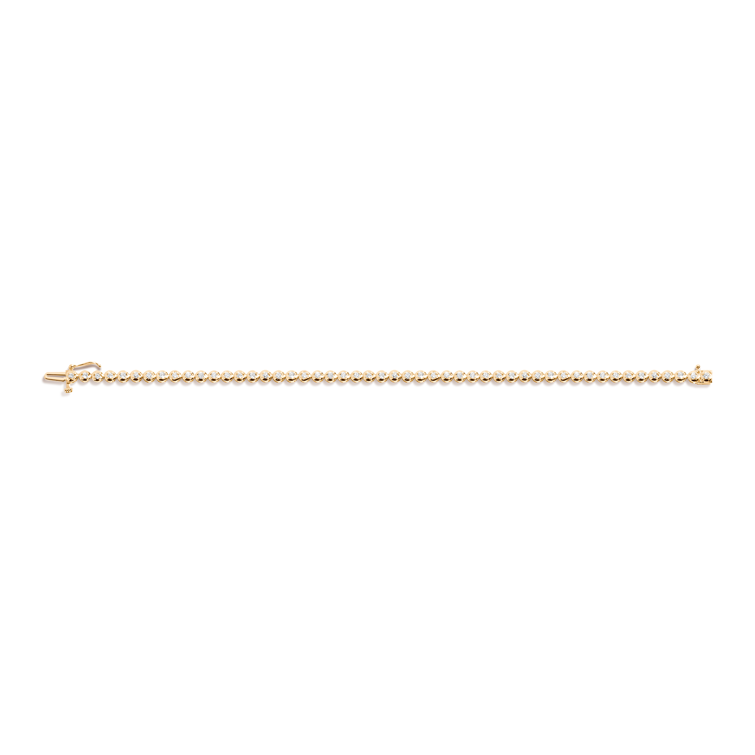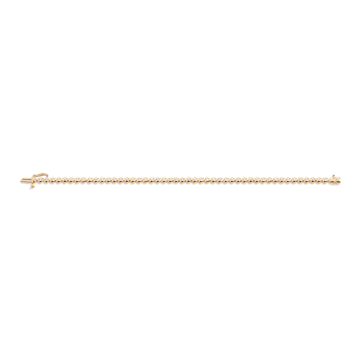 Handcrafted in solid 14k gold with F/G SI1/2 round lab-grown diamonds (1.7mm), totaling 1tcw. 3.5mm wide, 2.5mm thick, and weighs 4.1g. Secured with a signature box clasp.
