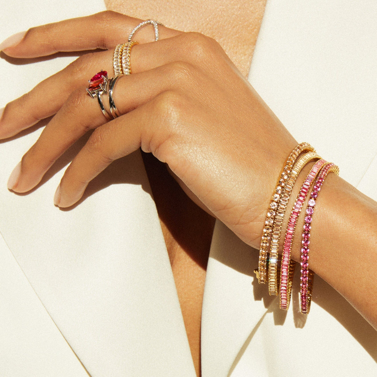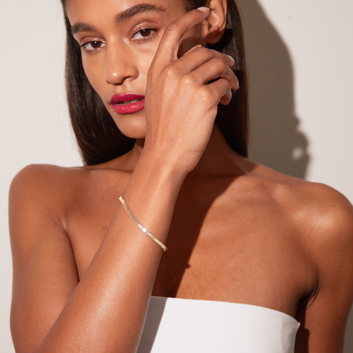 This Lab Grown Morganite Baguette Tennis Bracelet by Aurate (Vermeil) blends modern structure with soft allure. Featuring baguette-cut lab-grown morganites, its clean lines and pink shimmer make it a versatile luxury—refined, radiant, and refreshingly contemporary.