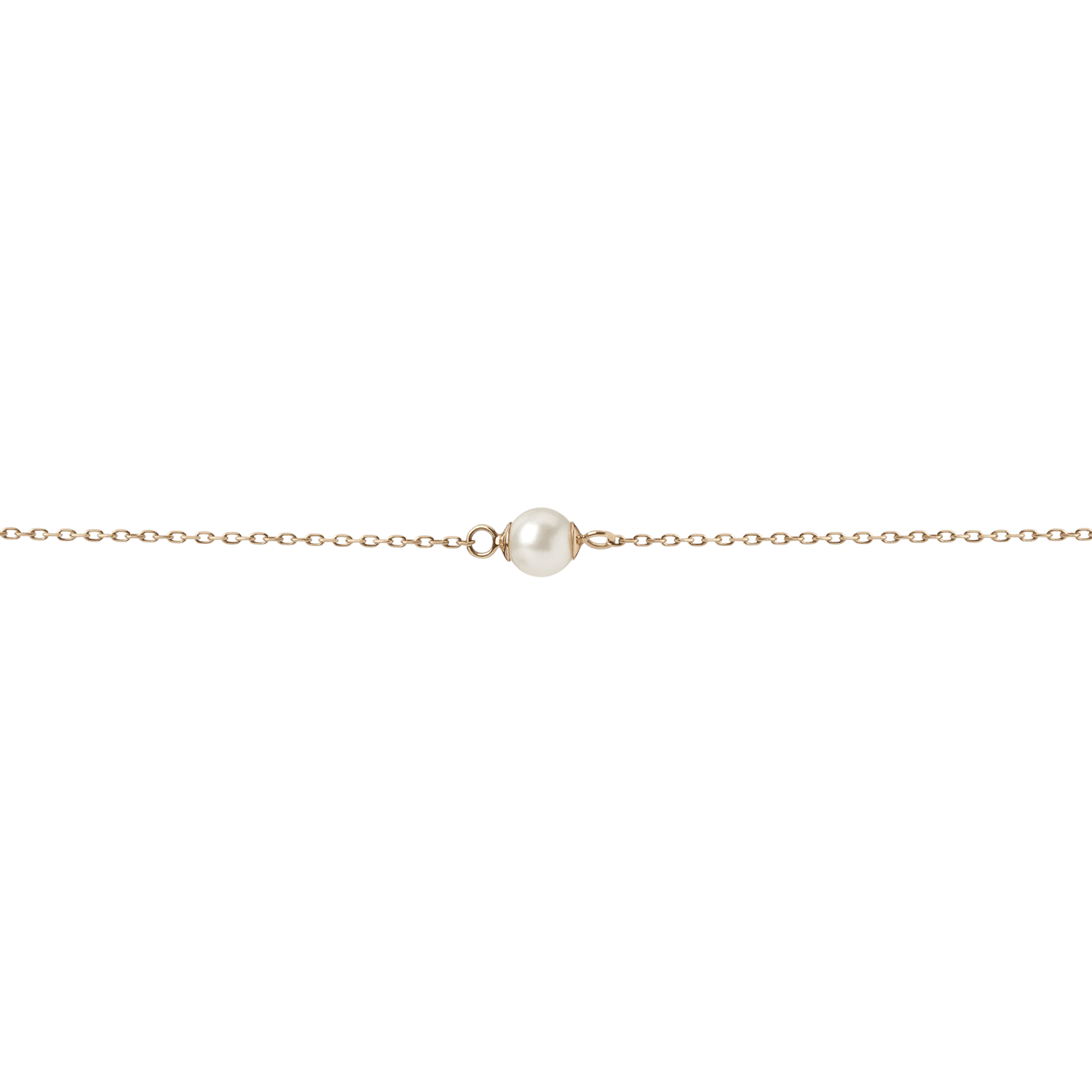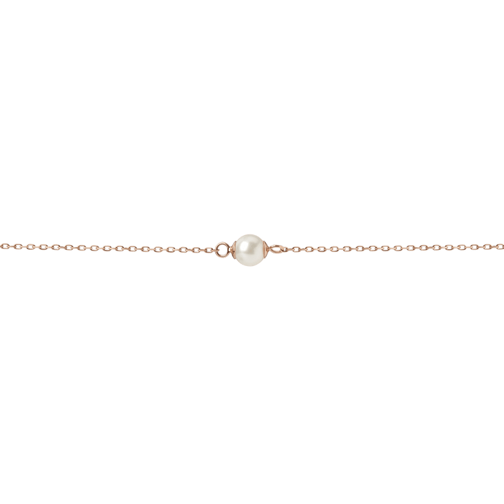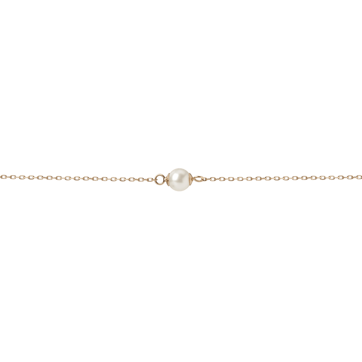 Handcrafted in 18k gold with one 5mm Akoya pearl. Chain length: 6.5' with jump rings at 6' and 6.5'. Secured with a spring ring clasp.