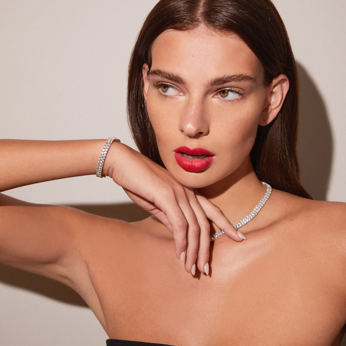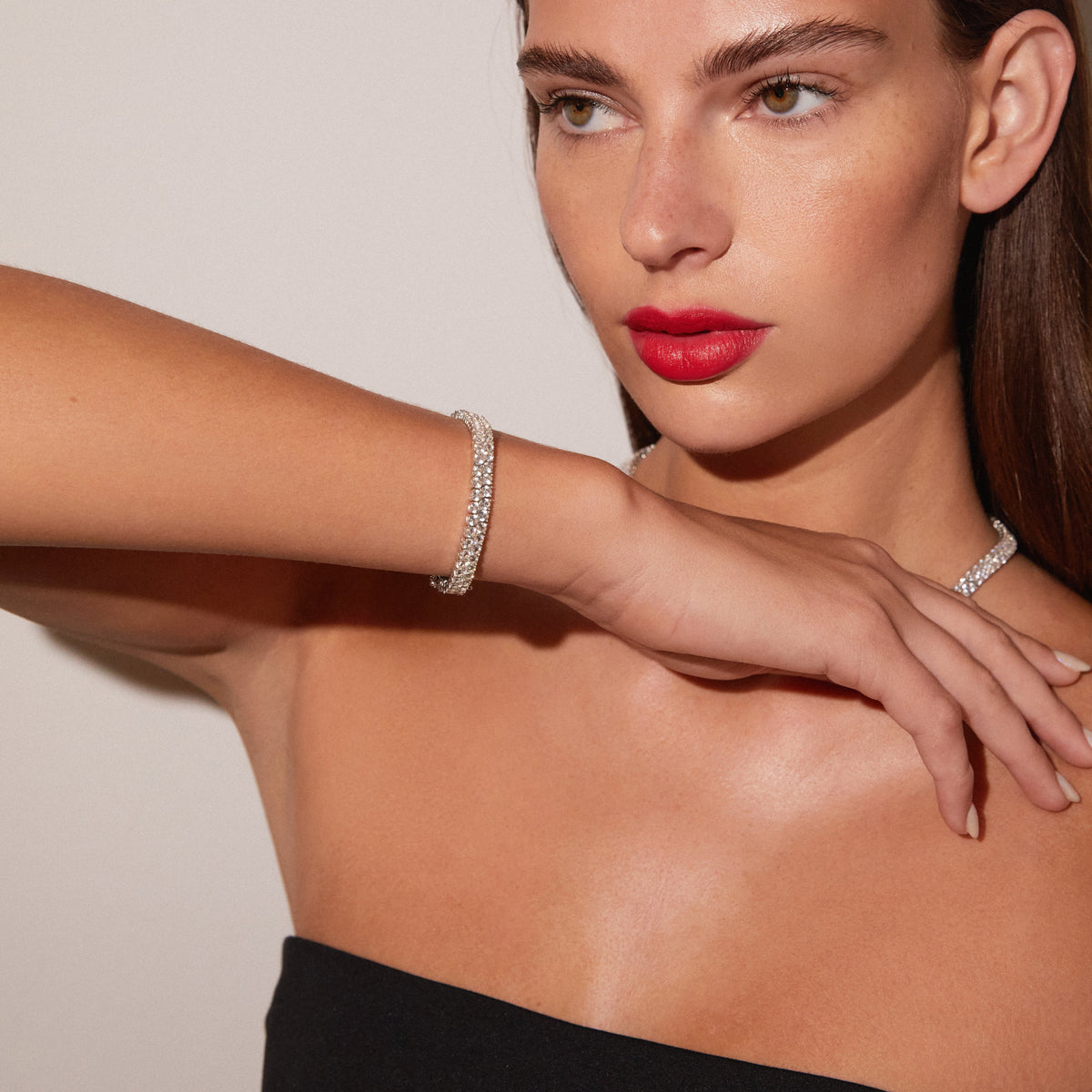 This Lab Grown White Sapphire Double Row Tennis Bracelet by Aurate is double the sparkle, double the impact. Featuring a stunning 20tcw of white sapphires set in twin rows, it delivers maximum brilliance with graceful fluidity — an instant heirloom.
