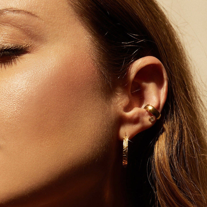 These Rose Garden Hoop Earrings by Aurate x MaCenna are a wearable work of art. Inspired by her own garden, MaCenna’s hand-drawn roses are digitized and debossed into polished vermeil hoops. These meaningful 3mm huggies bring artistry, nature, and modern femininity together in perfect harmony.