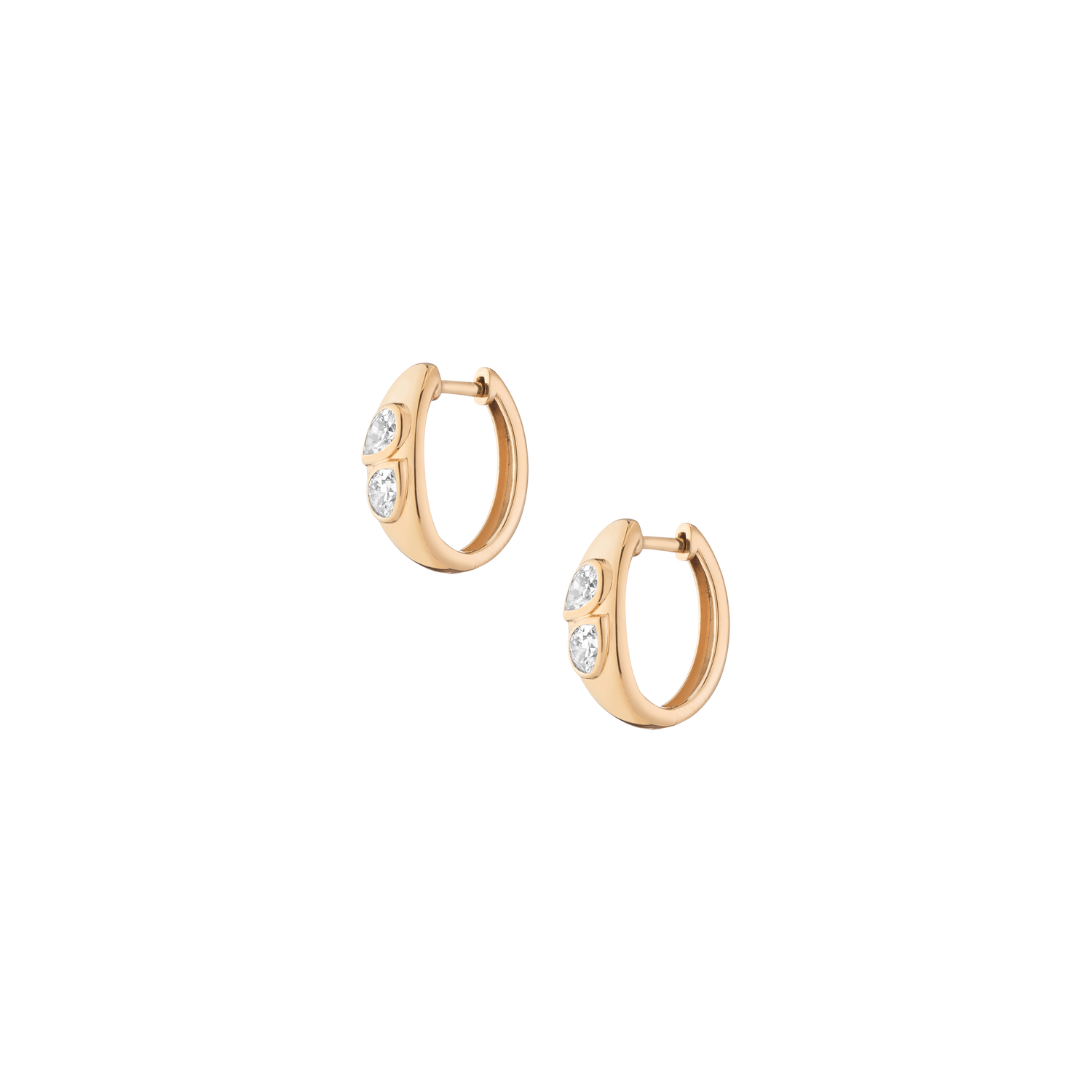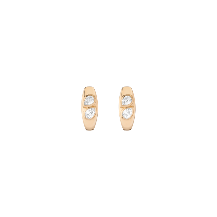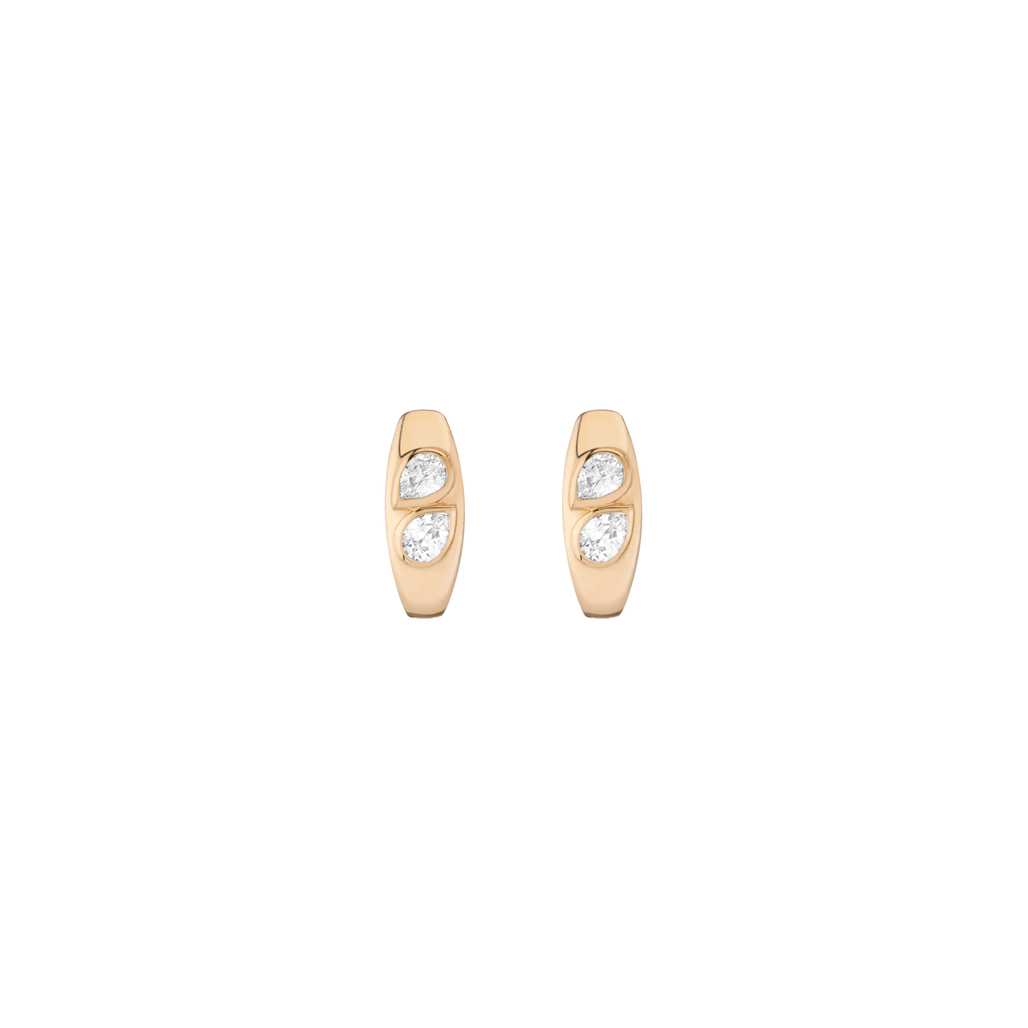 Handcrafted in solid 14k gold with 4 FG-SI pear-cut lab-grown diamonds (1tcw). 16.10mm wide, 7.20mm thick, 5.73g total weight. Sold as a pair.