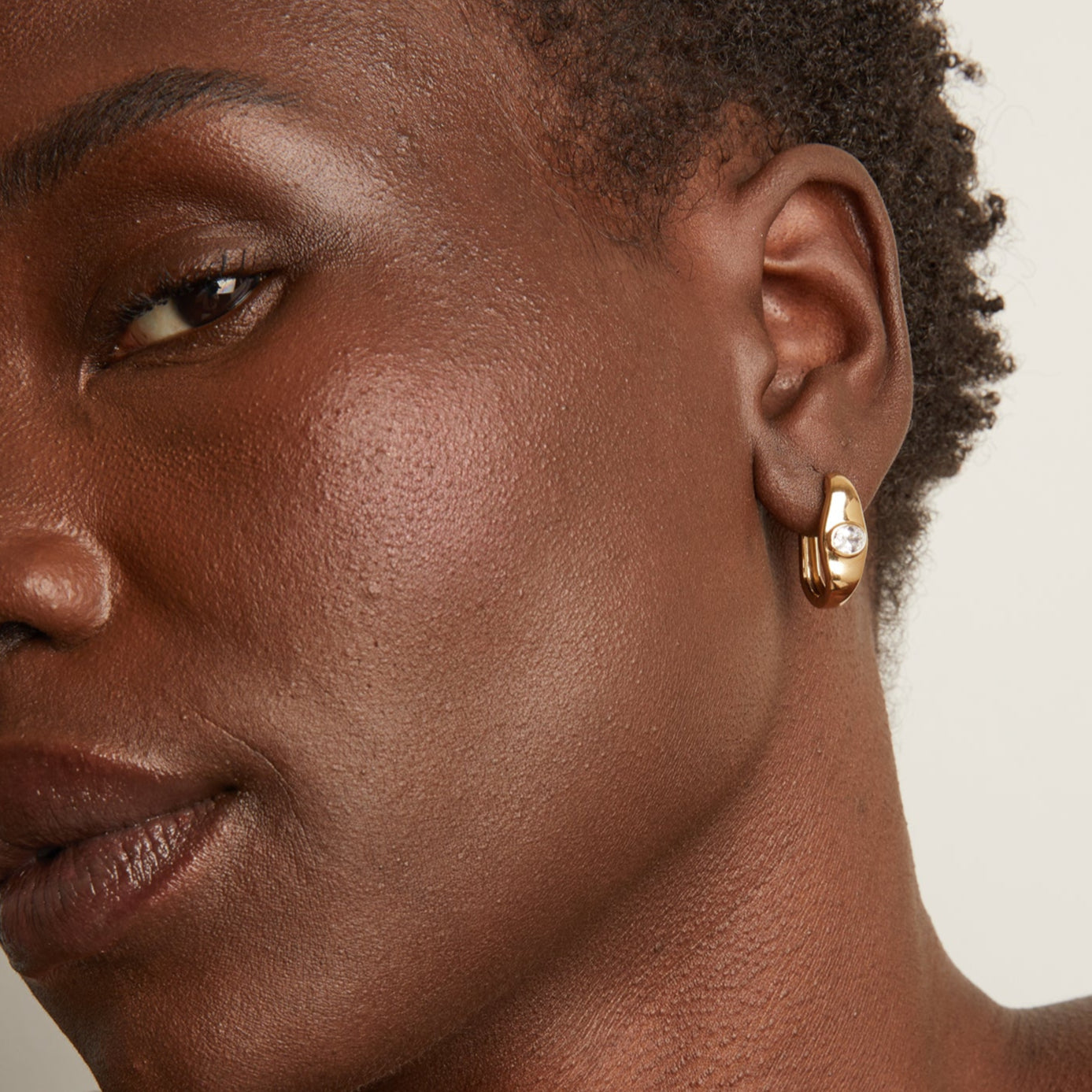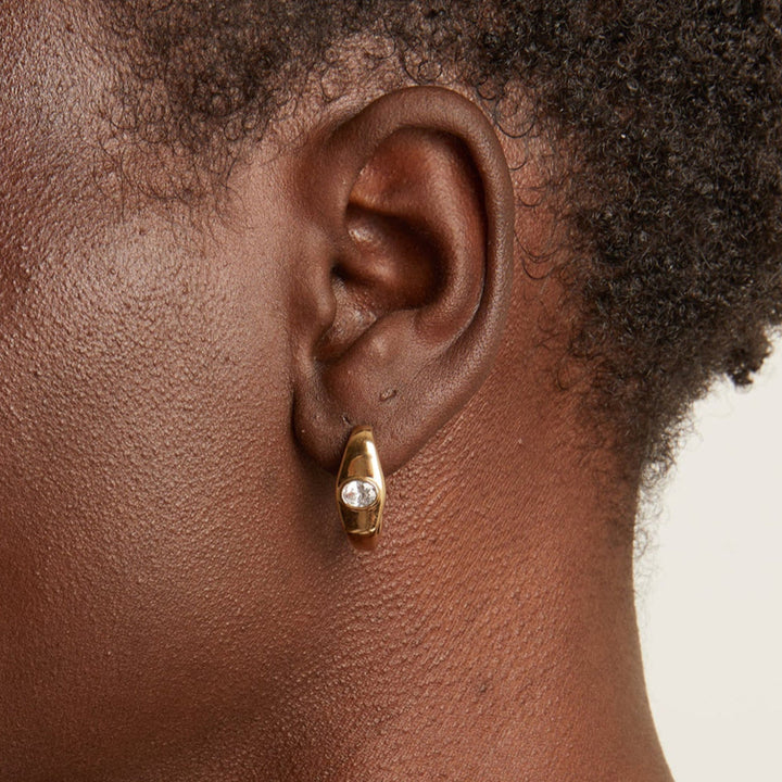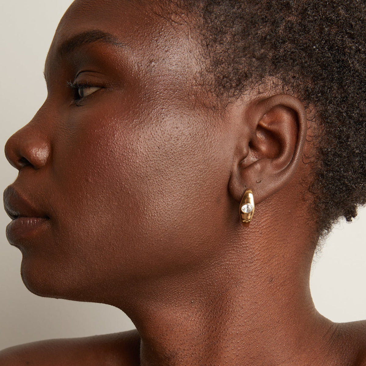 These Chunky Lab Grown Diamond Oval Huggie Earrings by Aurate in 14k blend sculptural volume with radiant sparkle. Each earring features a 0.25ct oval diamond in a bold gold hoop — a luxurious lift to your daily look.