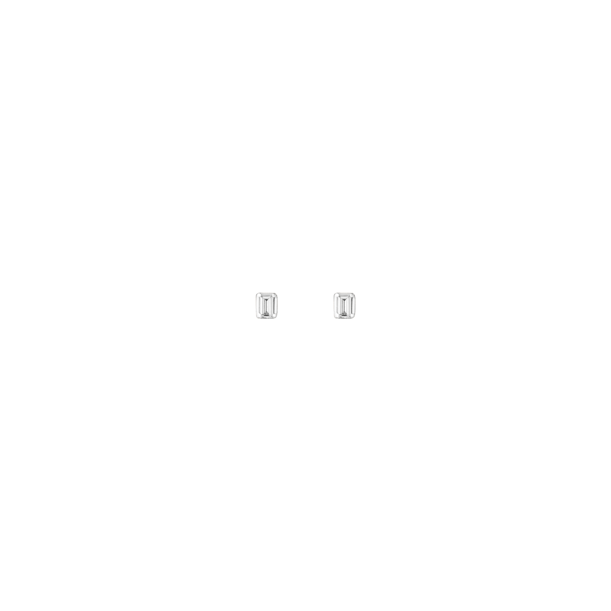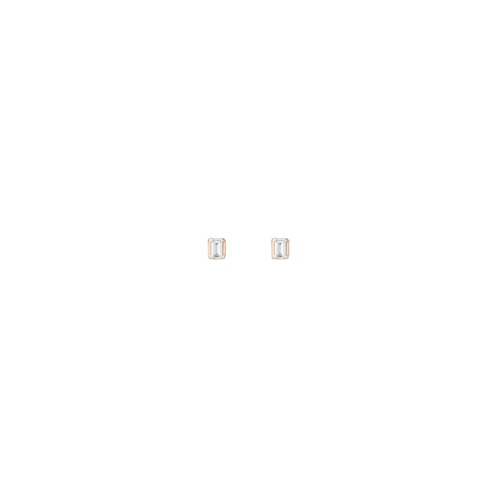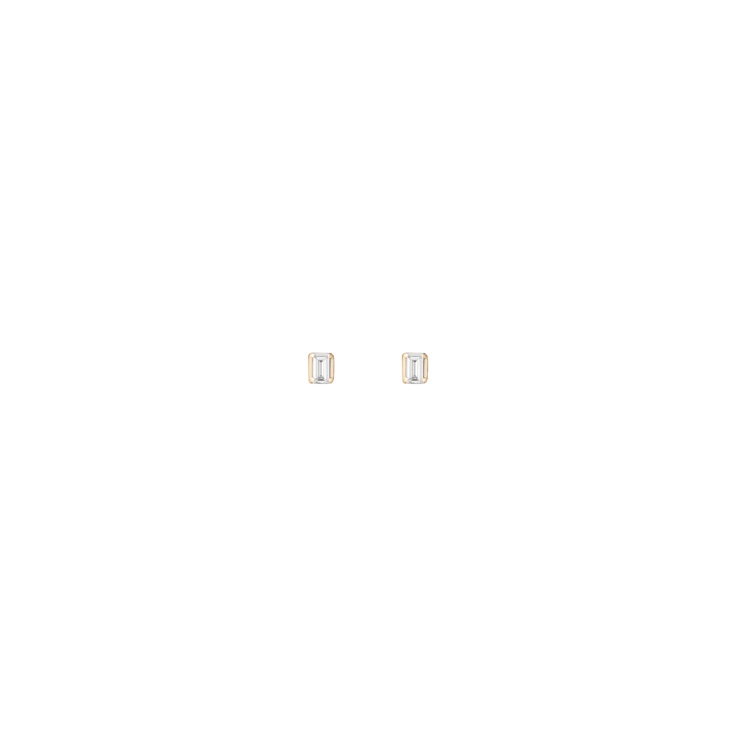Handcrafted in 18k recycled gold with 2 G/H SI quality baguette diamonds per pair. Diamond size: 2.4x1.5mm each. Total carat weight: 0.1tcw. Width: 2.5mm. Thickness: 2mm. Weight: 0.8g.