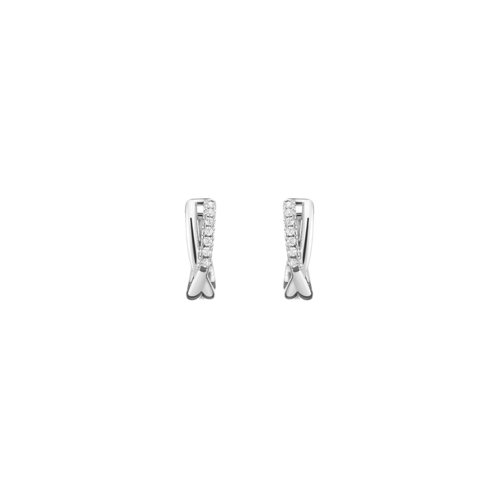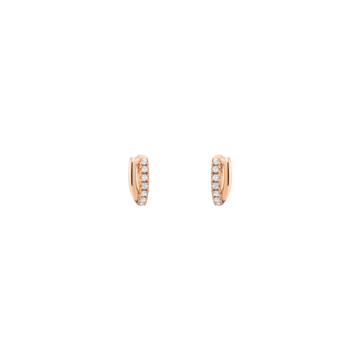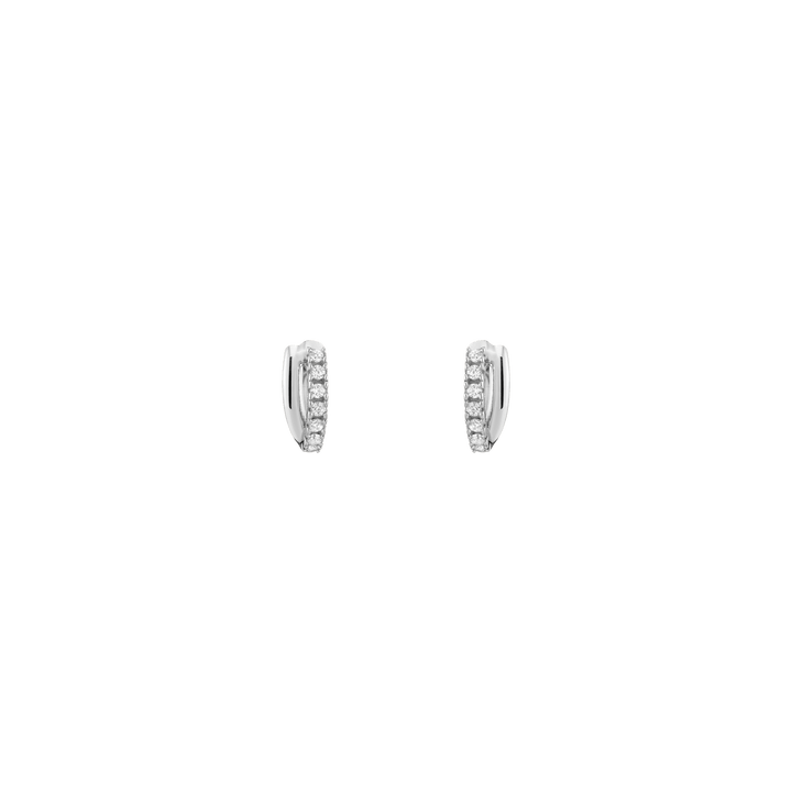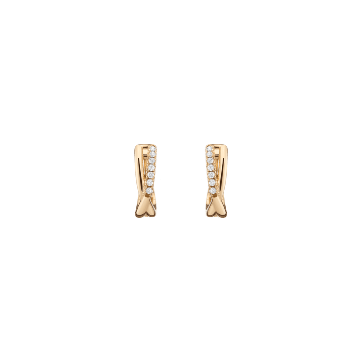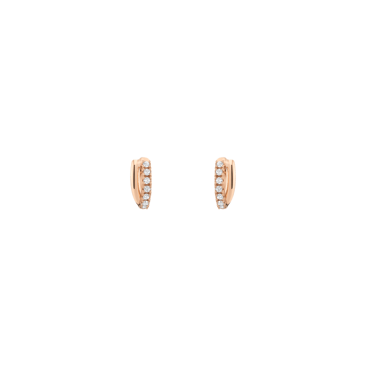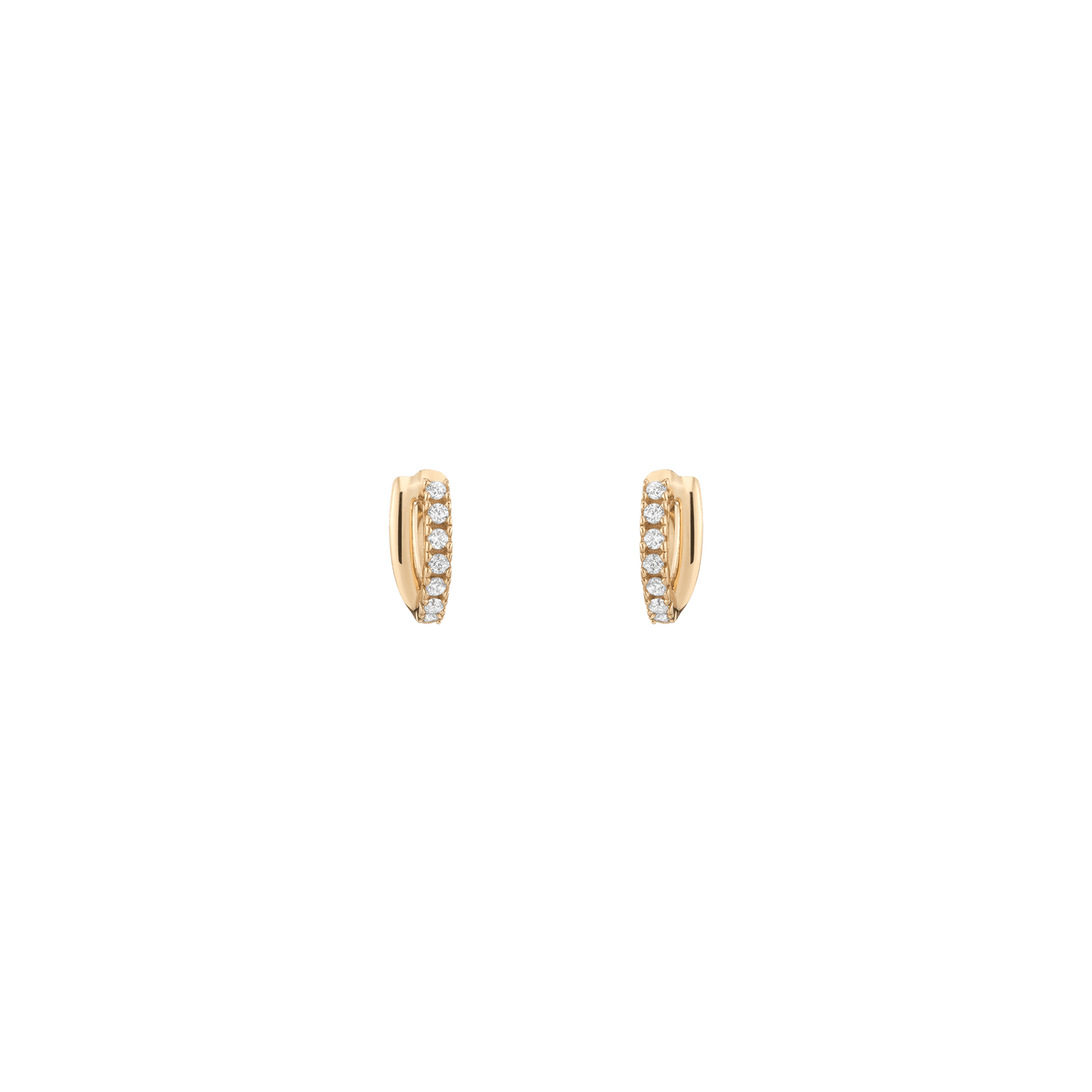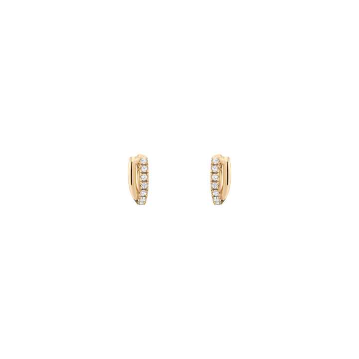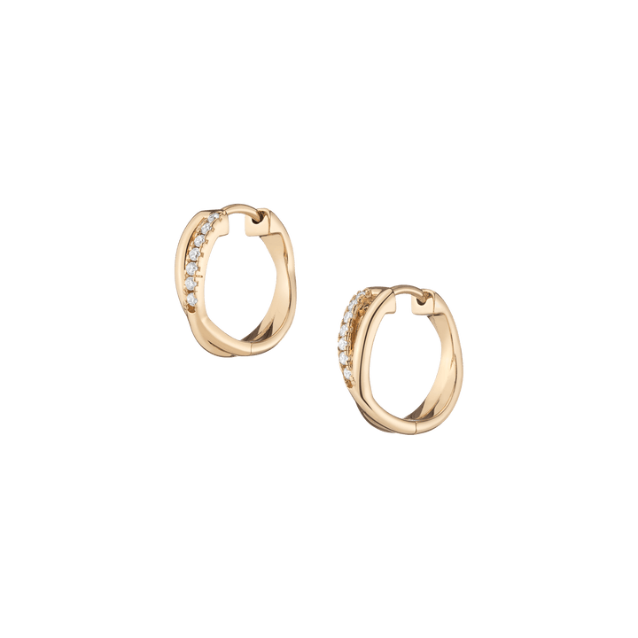Handcrafted in 18k gold with 14 round G/H SI quality diamonds per pair (0.14 tcw). 10mm outer diameter, 5mm at thickest, 2mm at thinnest. Weight: 4.8g. Diamond size: 1.3mm each (0.01ct).
