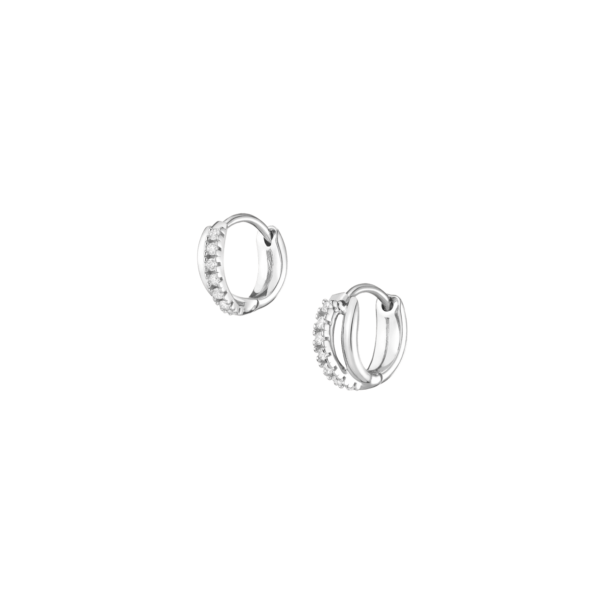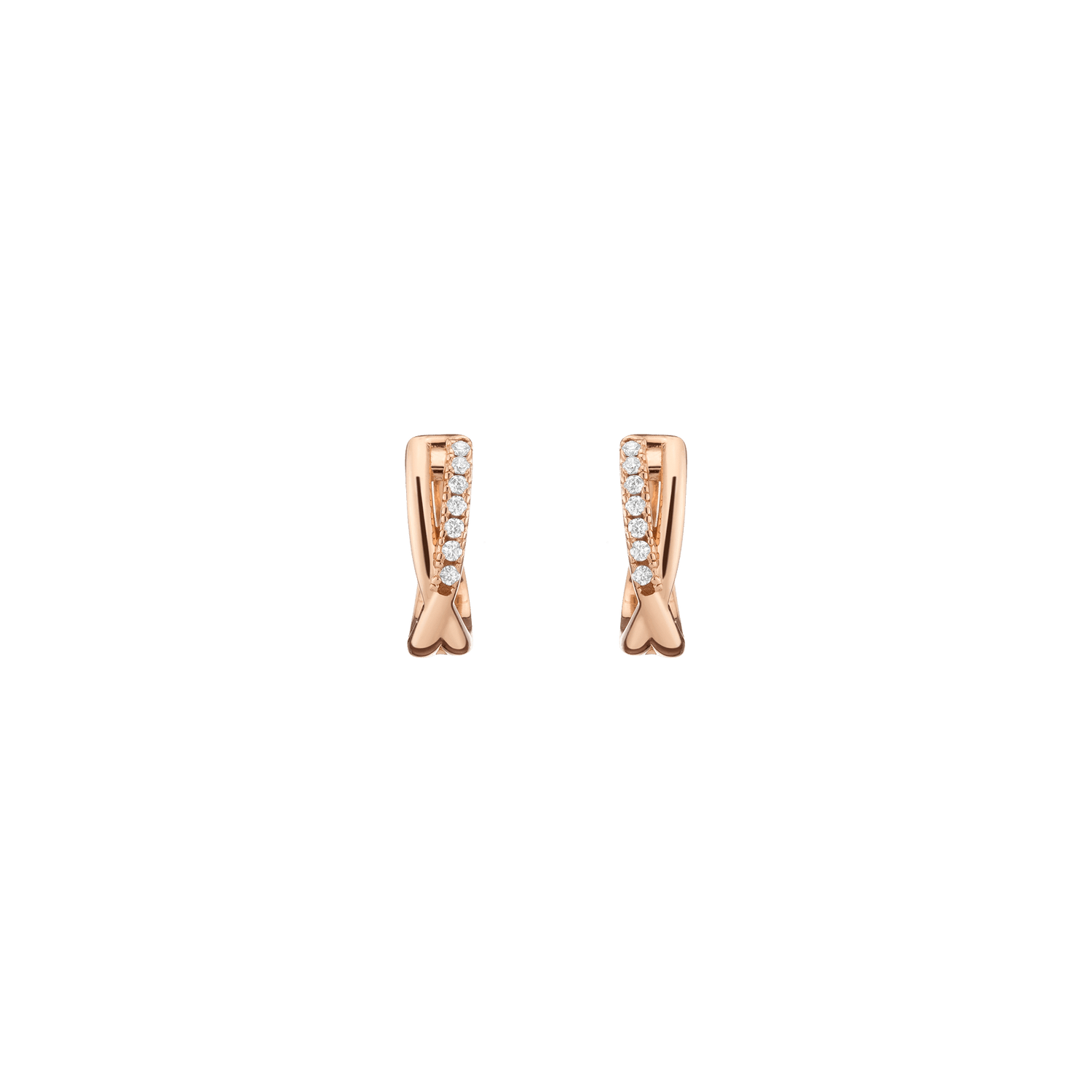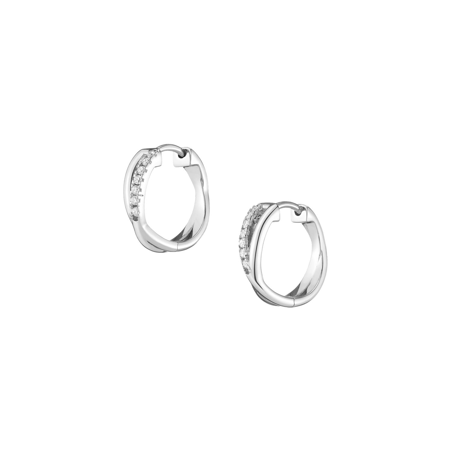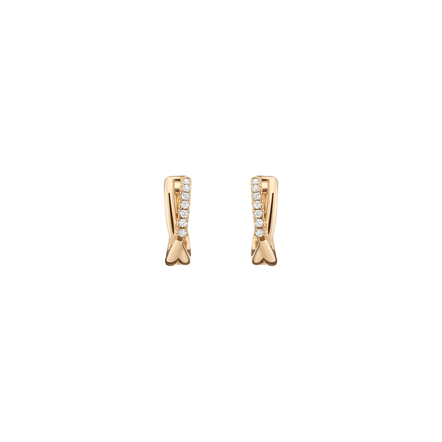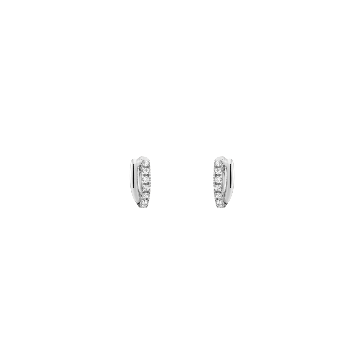Handcrafted in 18k gold with 14 round G/H SI quality diamonds per pair (0.14 tcw). 10mm outer diameter, 5mm at thickest, 2mm at thinnest. Weight: 4.8g. Diamond size: 1.3mm each (0.01ct).