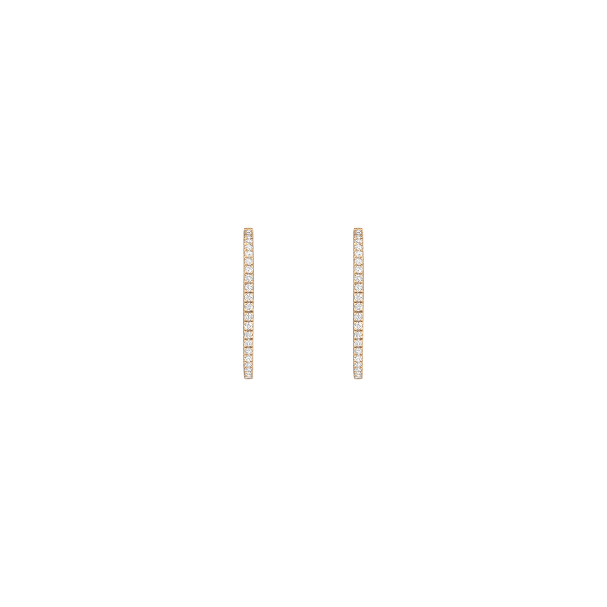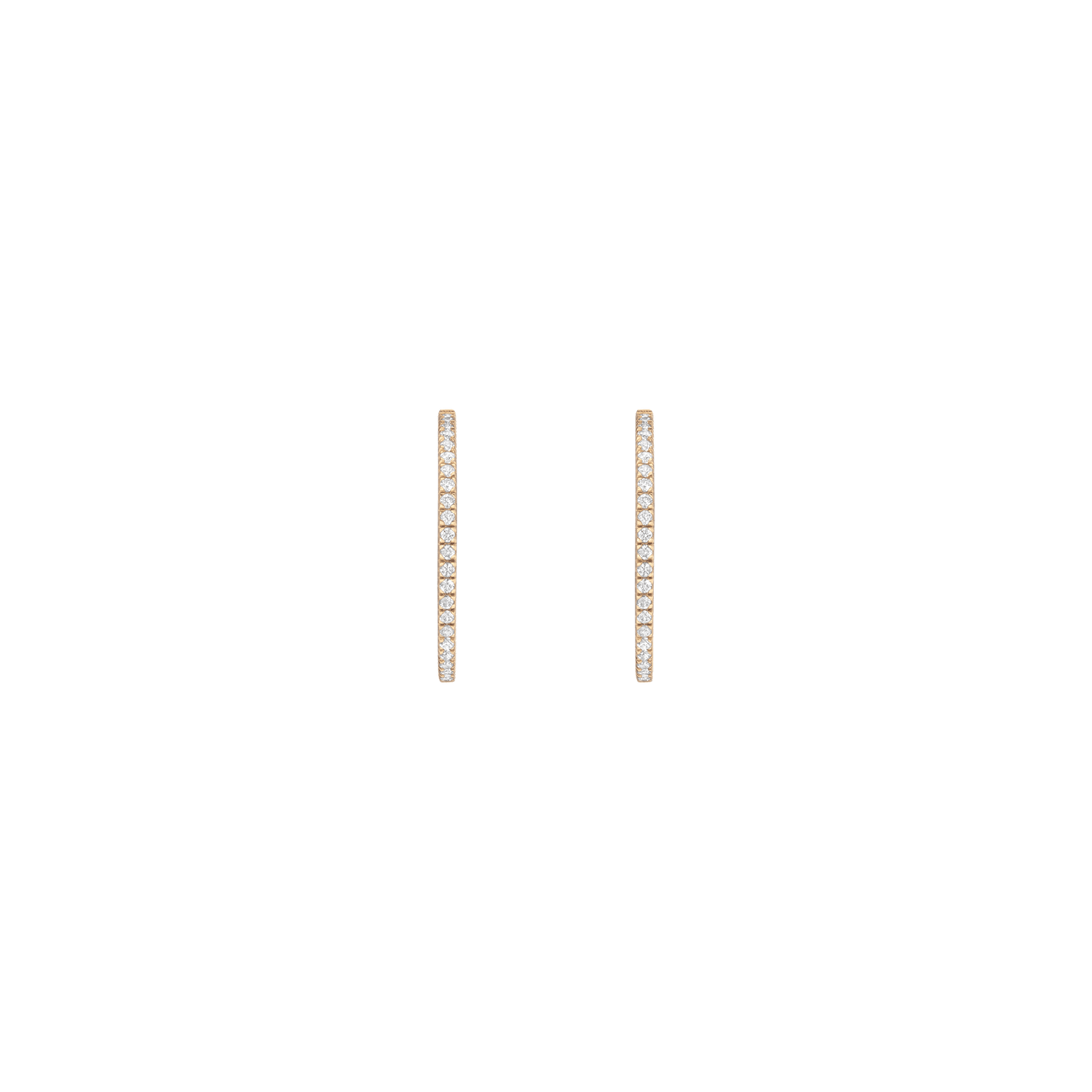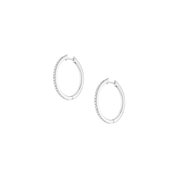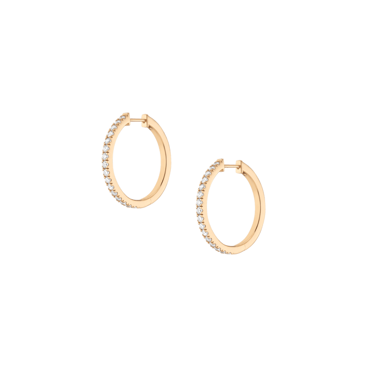 Handcrafted in 14k solid gold with GH SI-quality lab-grown round diamonds. Available total carat weights: 0.125tcw (0.80mm), 0.25tcw (0.90mm), 0.50tcw (1.35mm), 0.75tcw (1.60mm). Hoops measure 20mm internal diameter, 2mm thickness. Total weight: 4.5g.