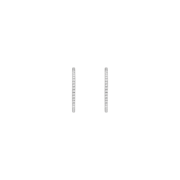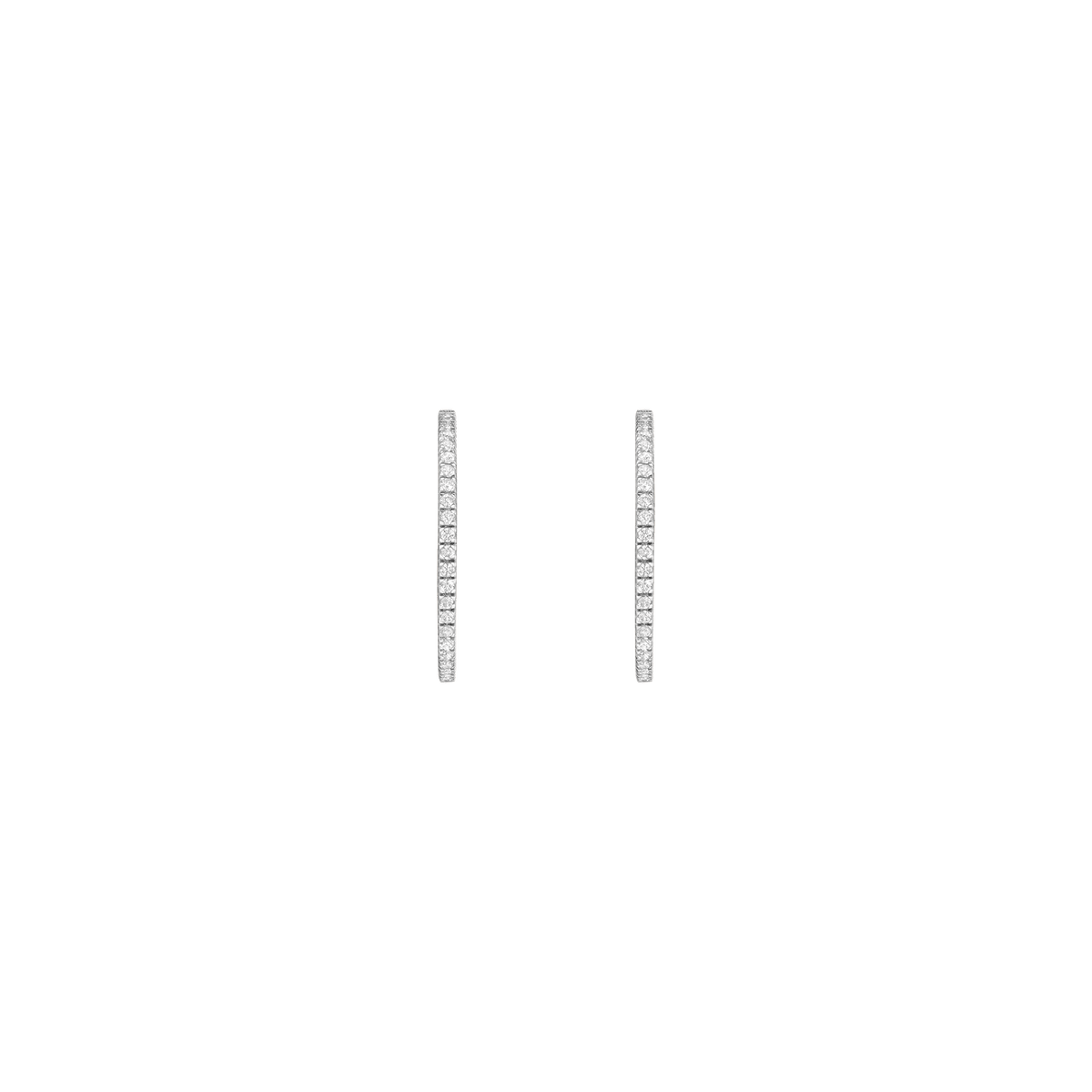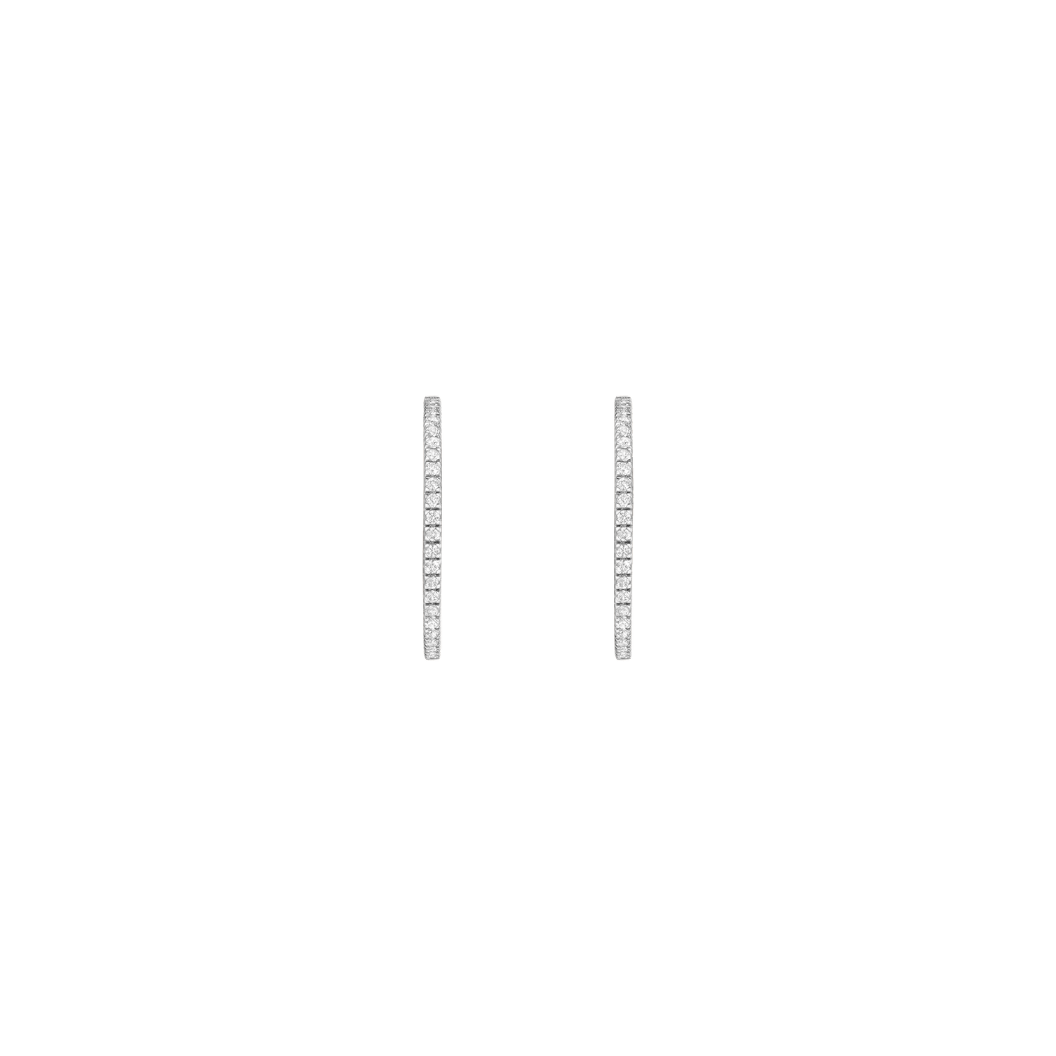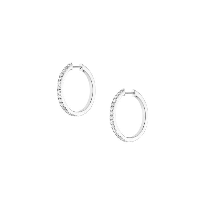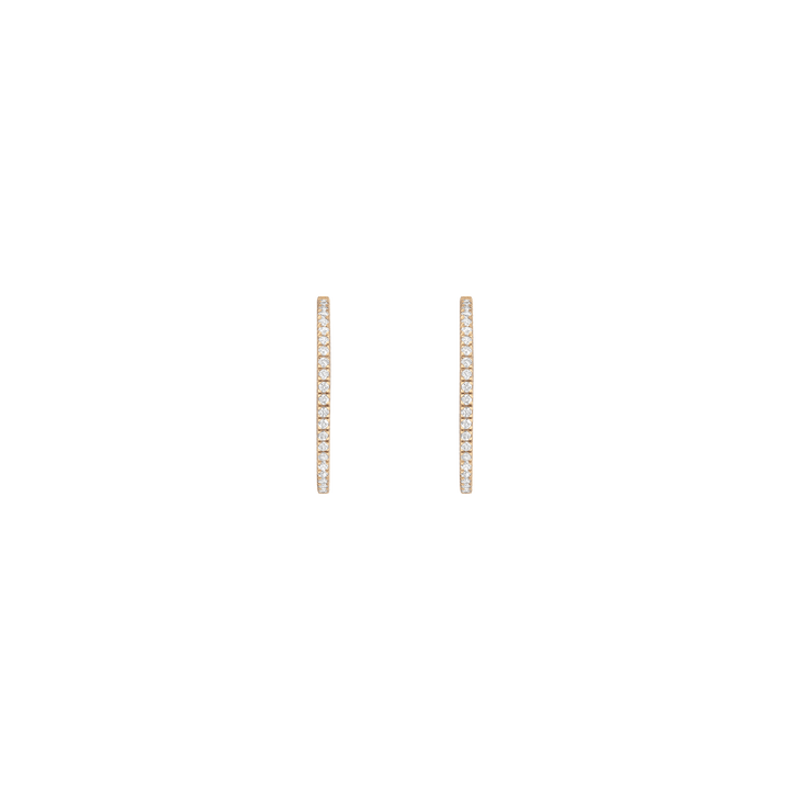 Handcrafted in 14k solid gold with GH SI-quality lab-grown round diamonds. Available total carat weights: 0.125tcw (0.80mm), 0.25tcw (0.90mm), 0.50tcw (1.35mm), 0.75tcw (1.60mm). Hoops measure 20mm internal diameter, 2mm thickness. Total weight: 4.5g.
