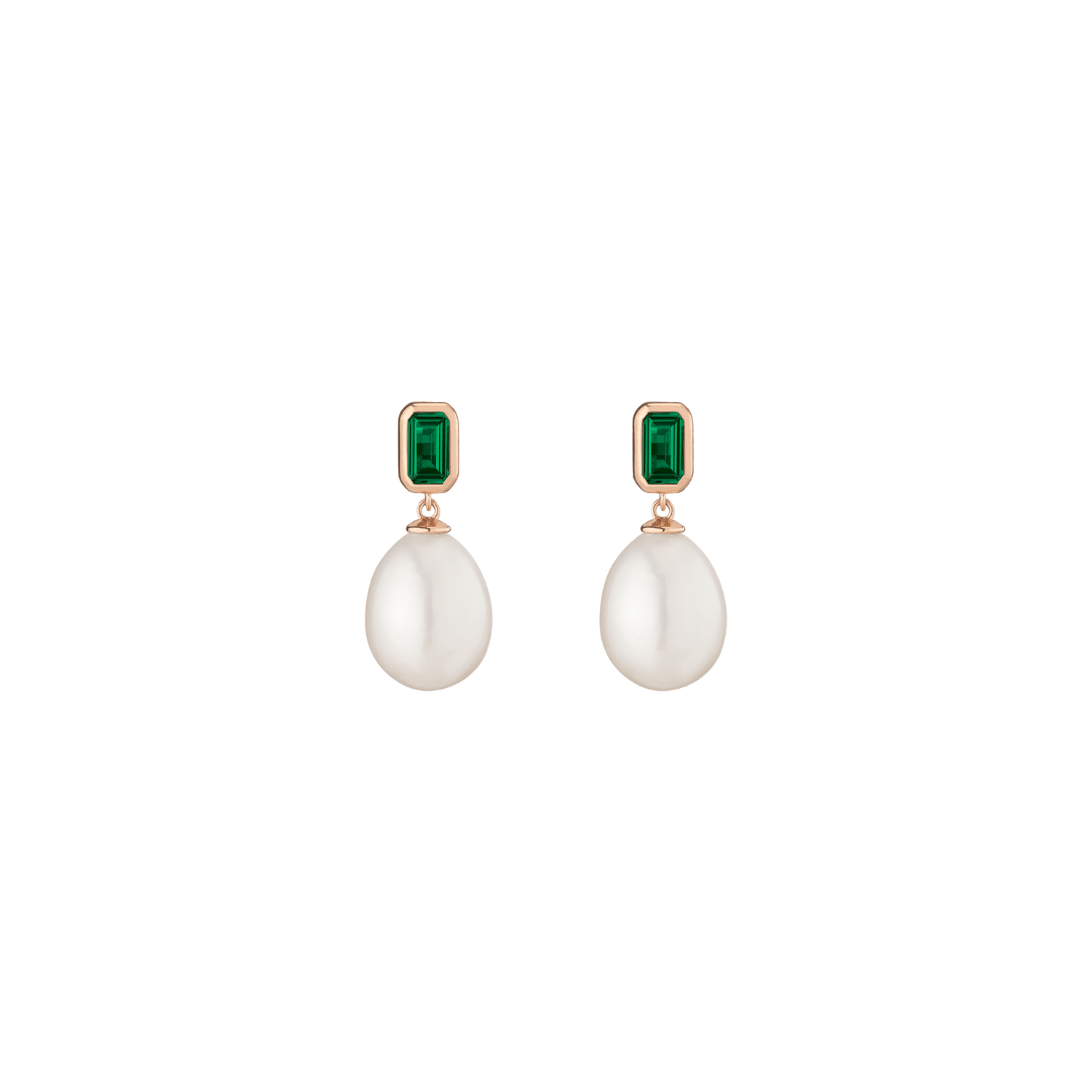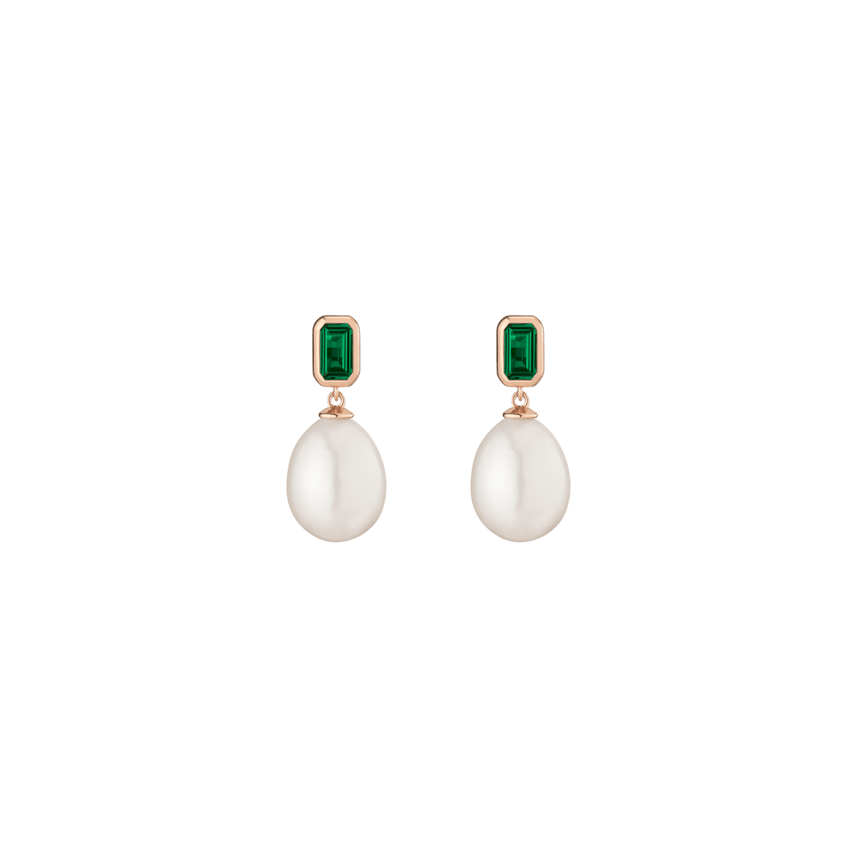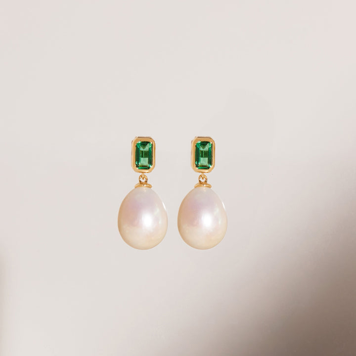 Lab Grown Emerald Heirloom Pearl Drop Earrings