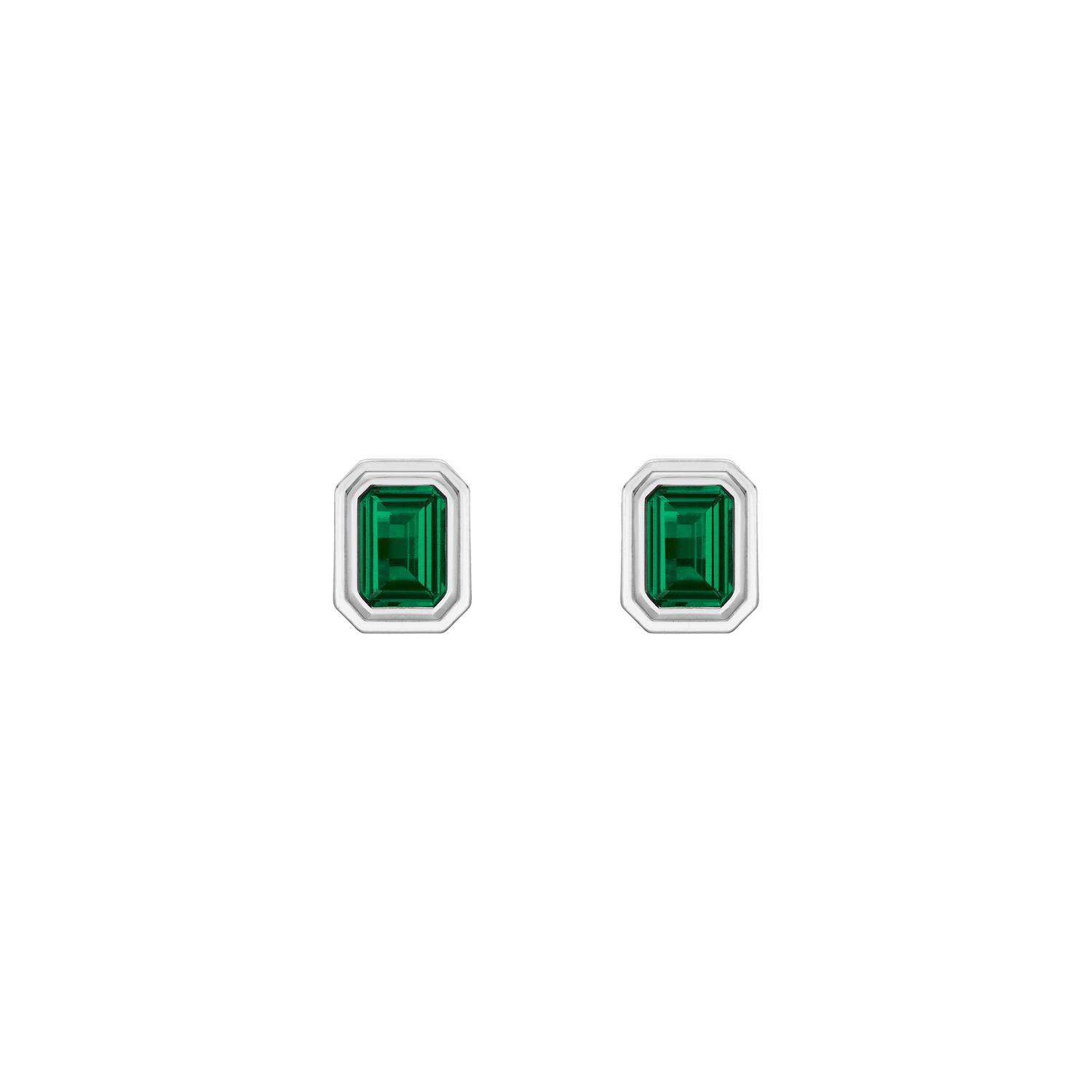 Crafted in 18k gold with 7×5mm AAA quality lab grown emeralds. Stud size: 7.85×17mm. Thickness: 3.84mm. Weight: 2.1g. Secured with post and wingnut.