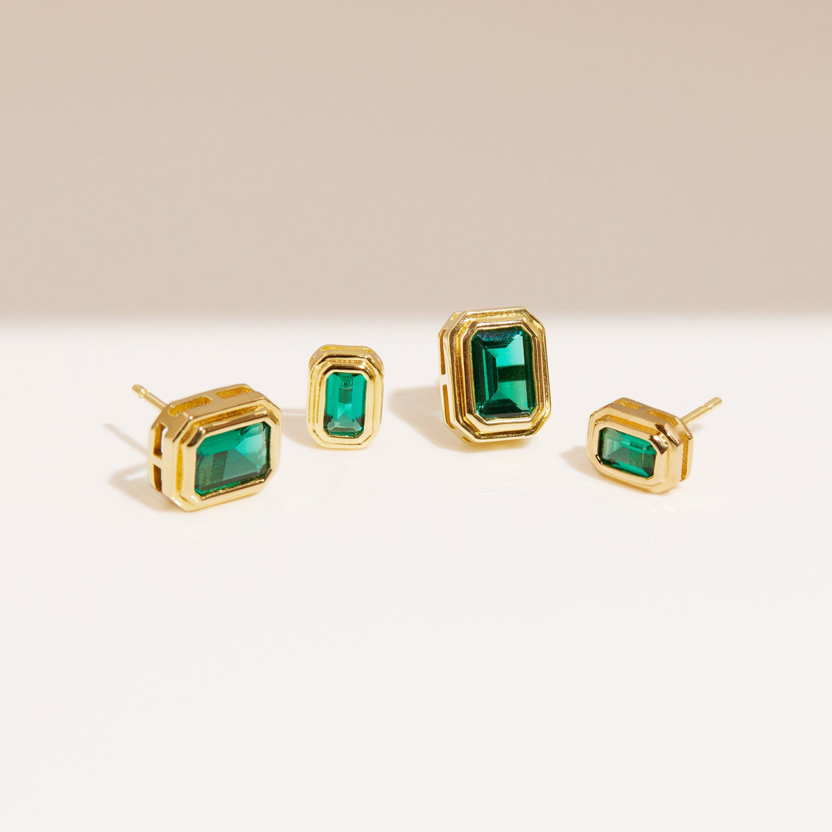 These Lab Grown Emerald Heirloom Stud Earrings by Aurate in 18k gold are timeless treasures in the making. The vivid green emeralds, set in double-edged bezels, evoke vintage elegance reimagined for modern keepsakes. Their heirloom-inspired design and fine detailing make them ideal for marking meaningful milestones.
