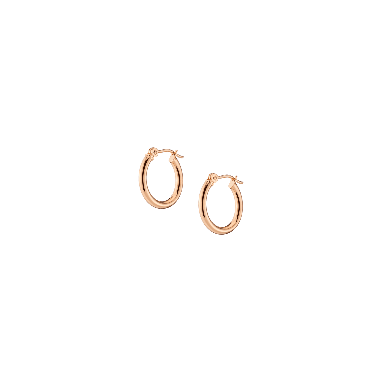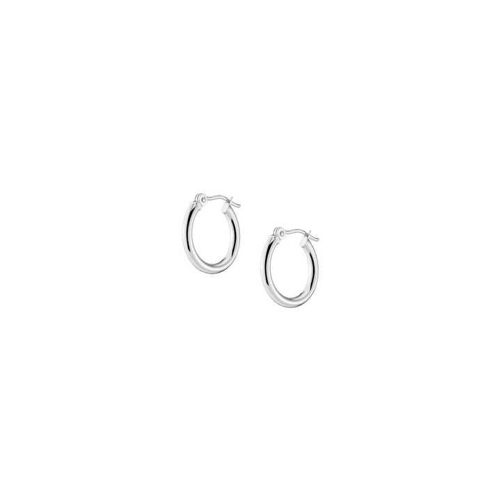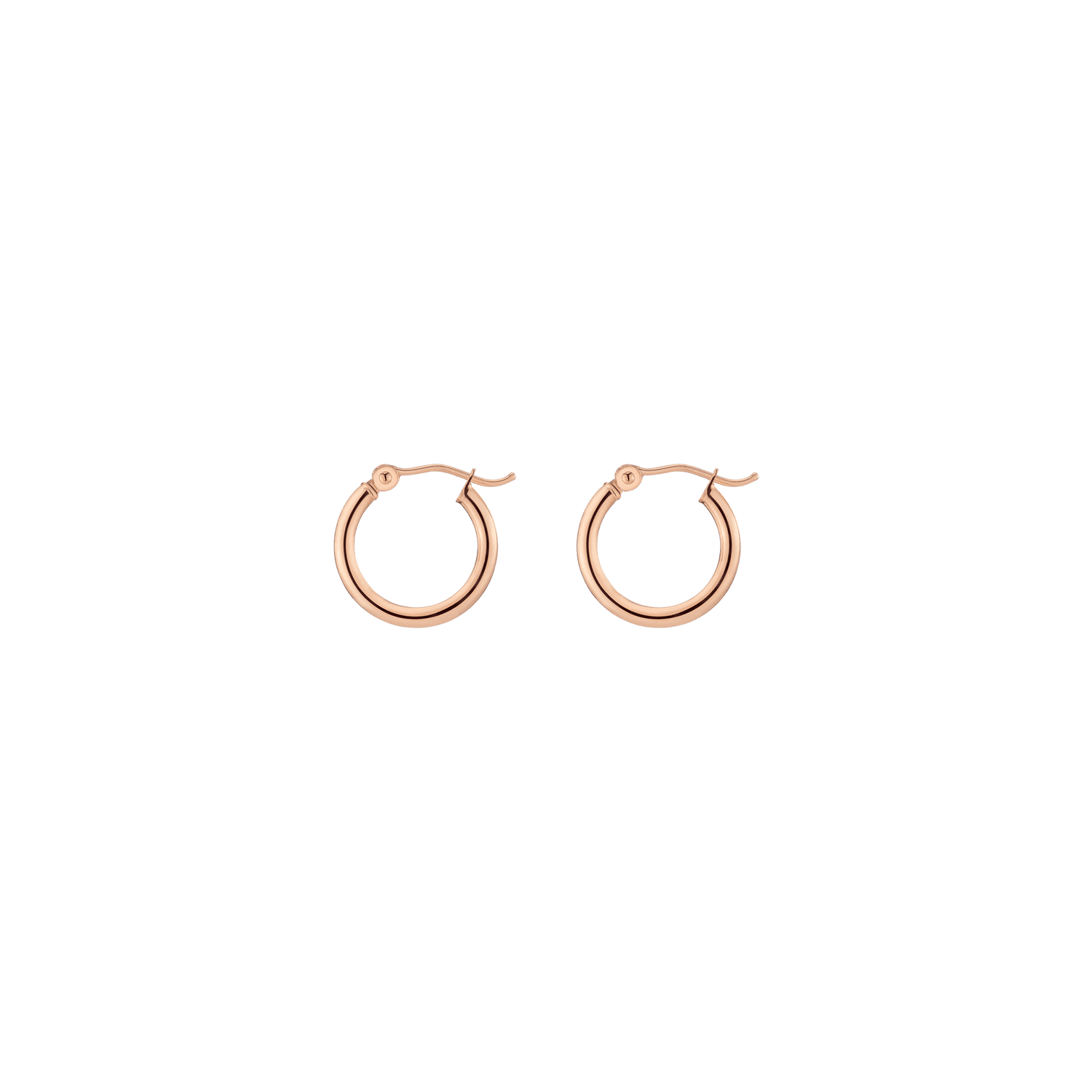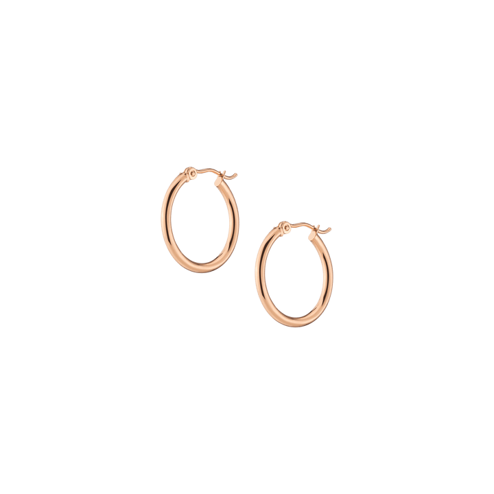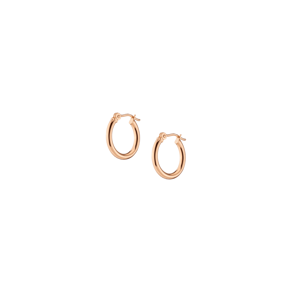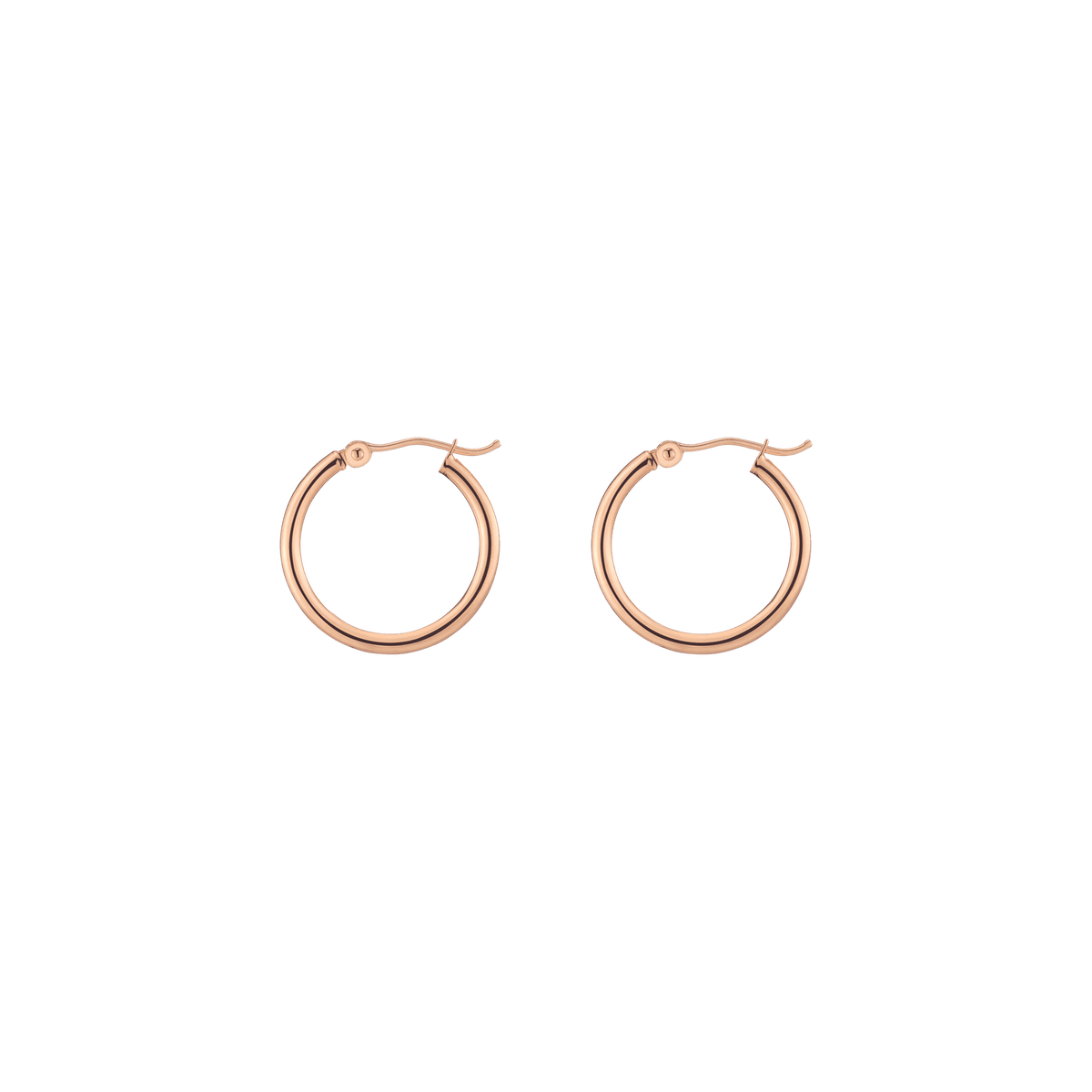 Hollow hoops in 14k gold alloy, 2mm width and thickness. Available diameters: 15mm (0.9g), 20mm (1.1g), 25mm (1.2g), 30mm (1.4g), 40mm (1.7g), 50mm (2.9g), 60mm (3.5g). Hinge post with secure latch.