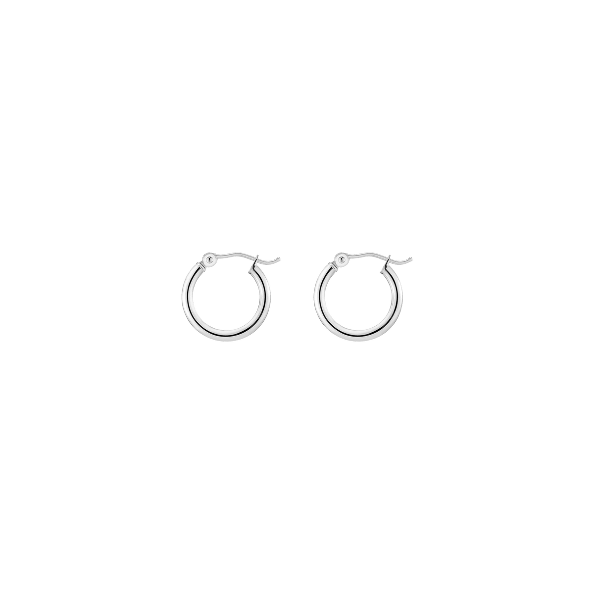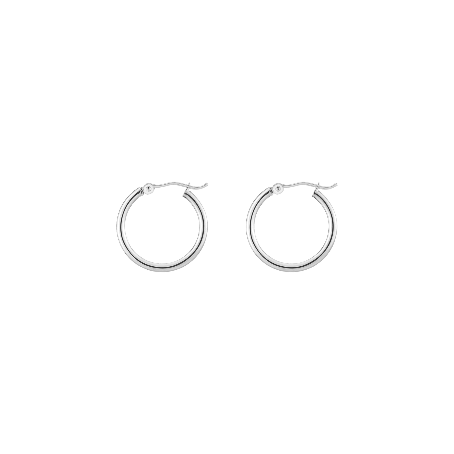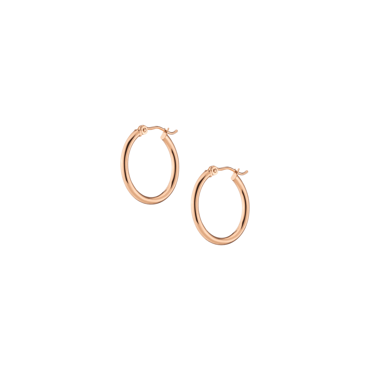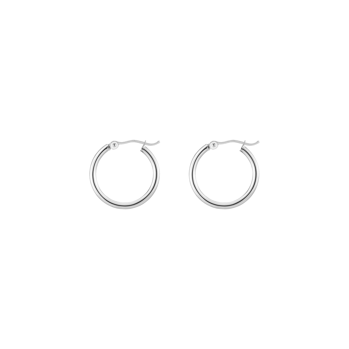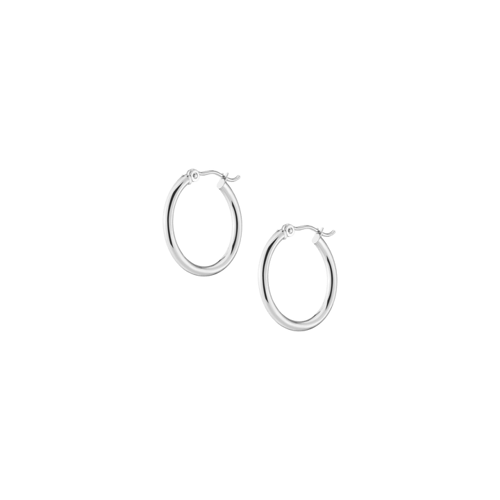 Hollow hoops in 14k gold alloy, 2mm width and thickness. Available diameters: 15mm (0.9g), 20mm (1.1g), 25mm (1.2g), 30mm (1.4g), 40mm (1.7g), 50mm (2.9g), 60mm (3.5g). Hinge post with secure latch.