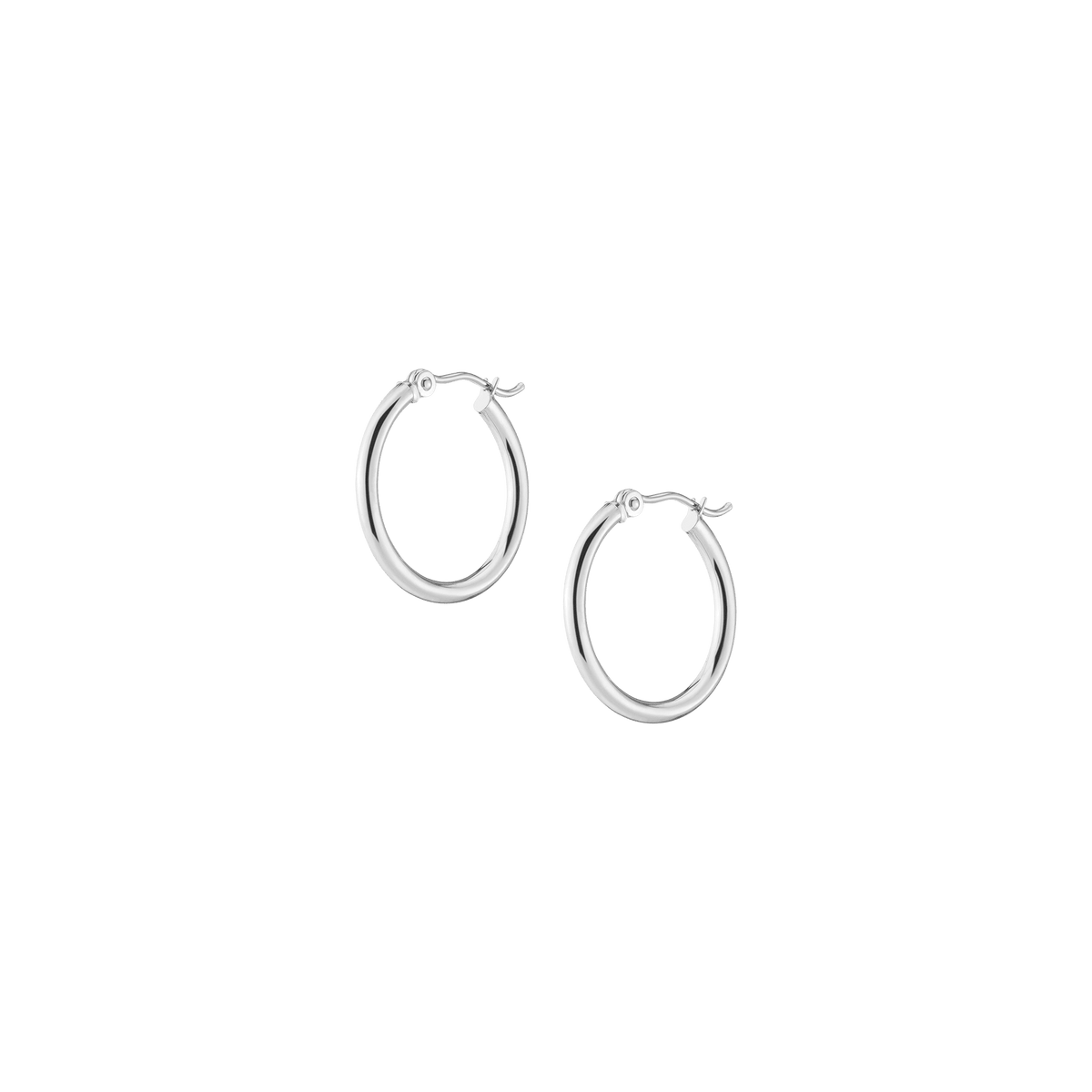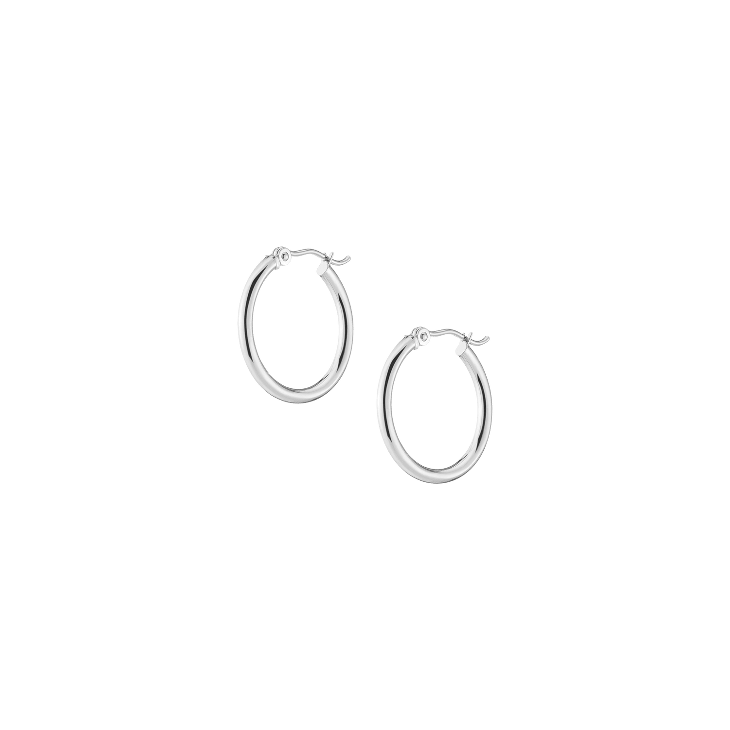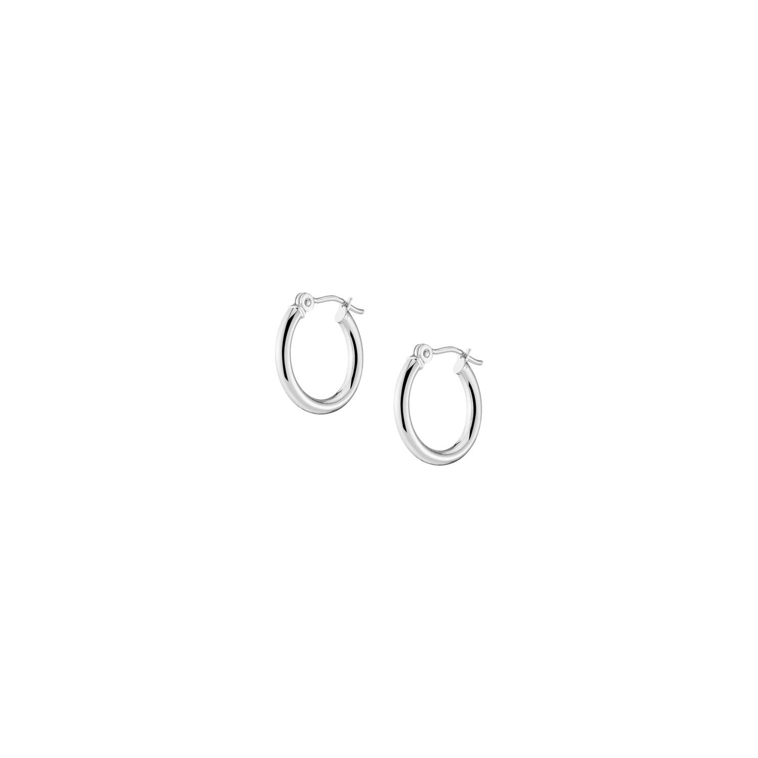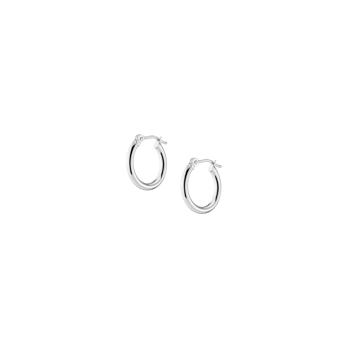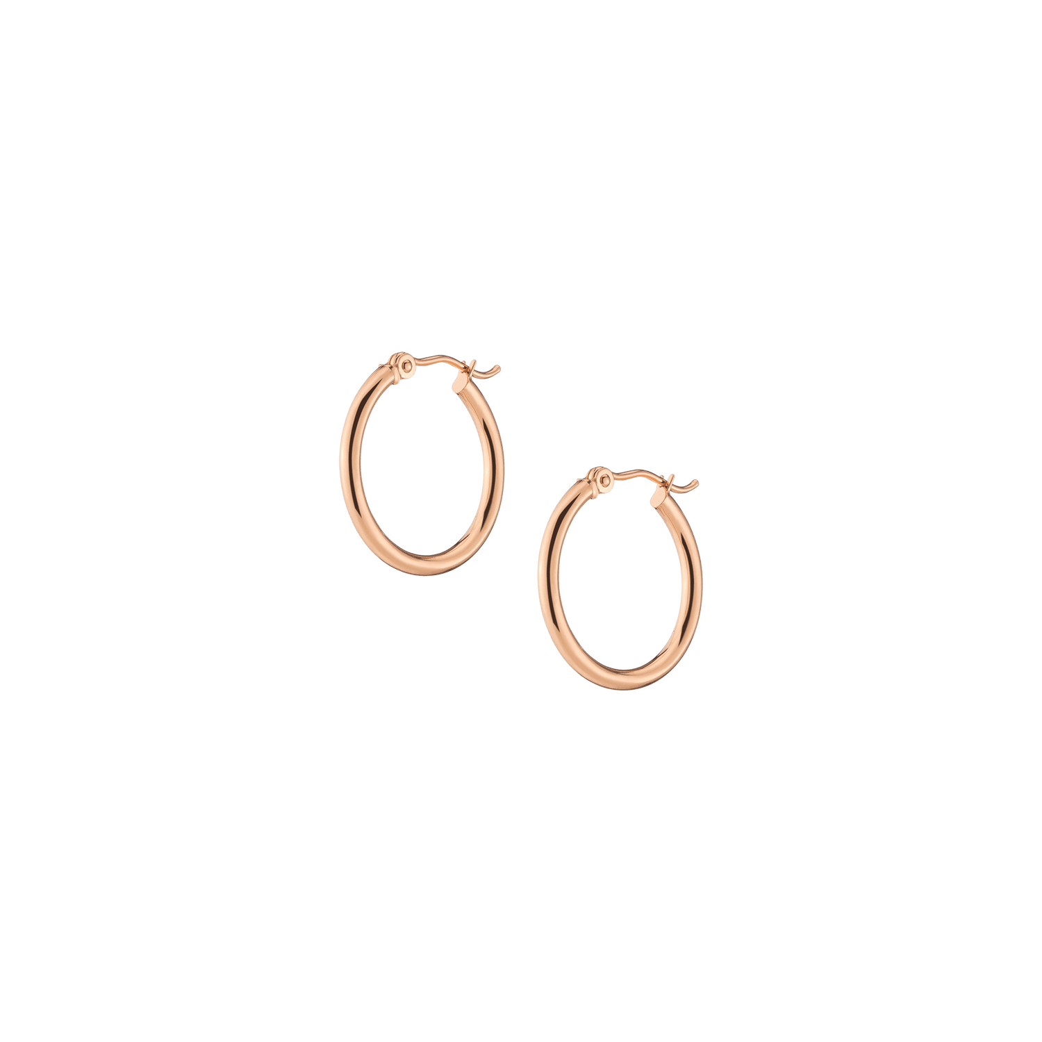 Hollow hoops in 14k gold alloy, 2mm width and thickness. Available diameters: 15mm (0.9g), 20mm (1.1g), 25mm (1.2g), 30mm (1.4g), 40mm (1.7g), 50mm (2.9g), 60mm (3.5g). Hinge post with secure latch.