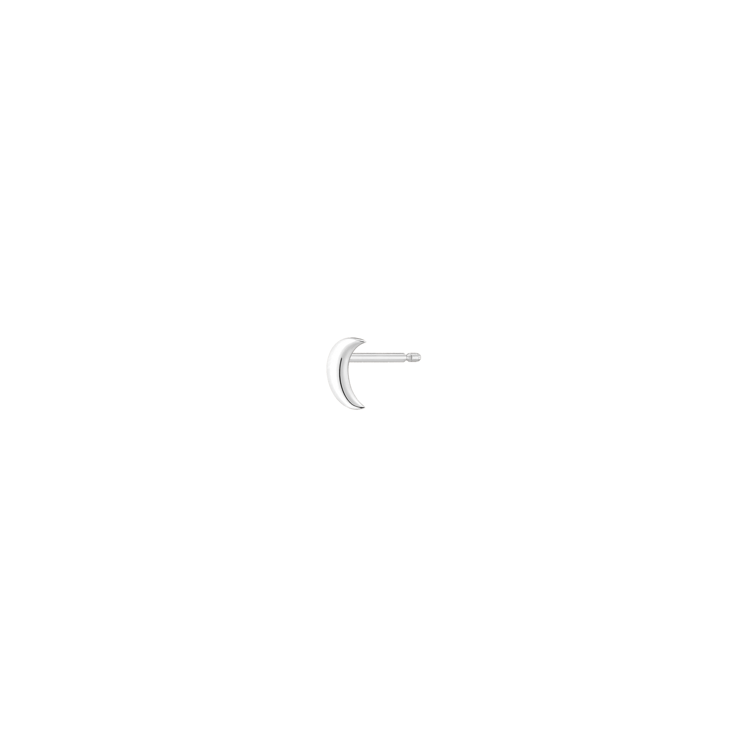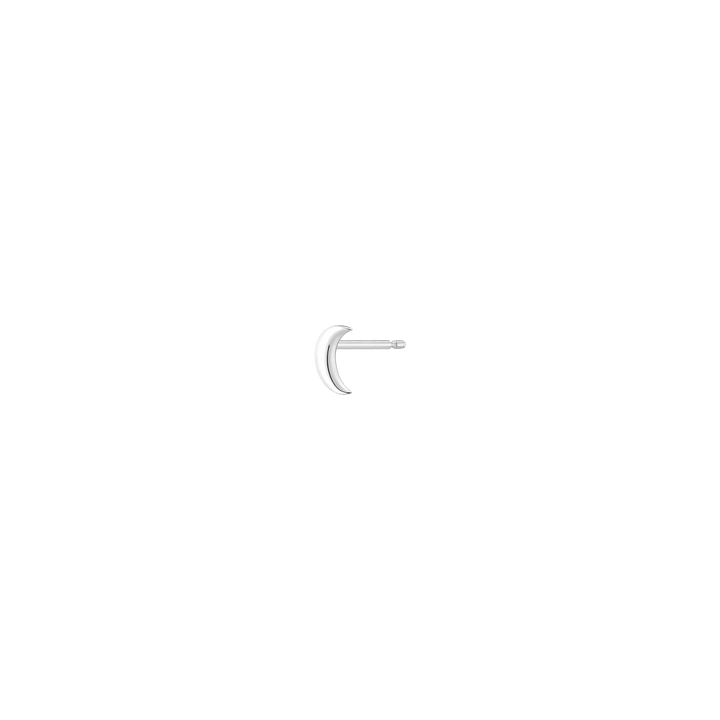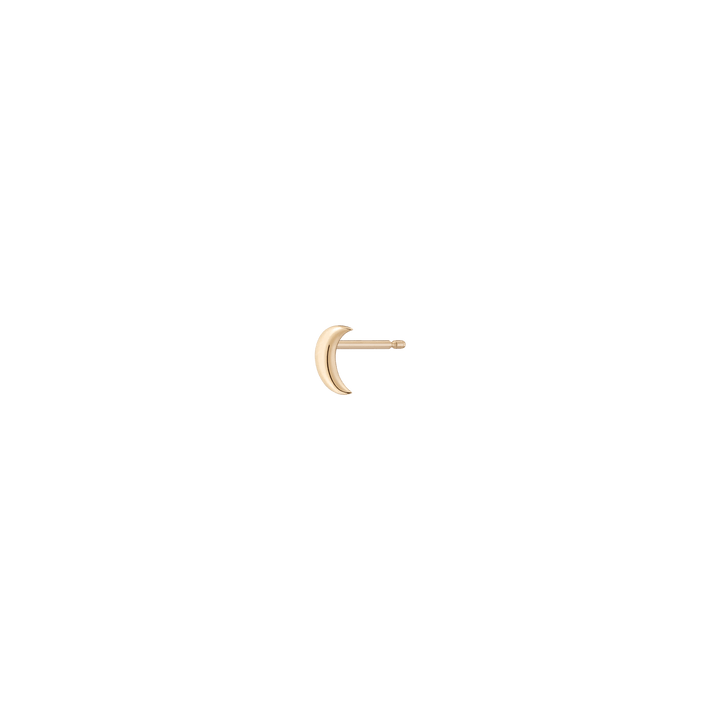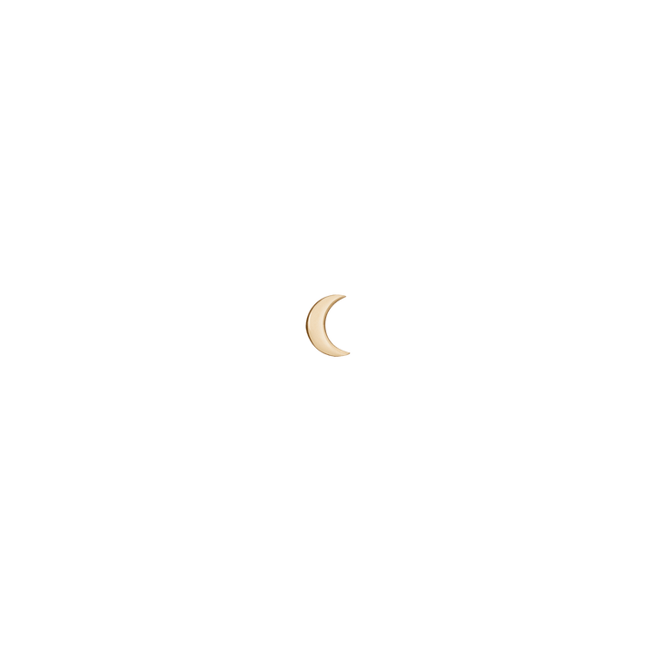 Crafted in solid 14k recycled gold. Moon shape design. Width: 4.8mm. Length: 6.3mm. Thickness: 1.1mm. Weight: 0.2g. Sold as a single stud.