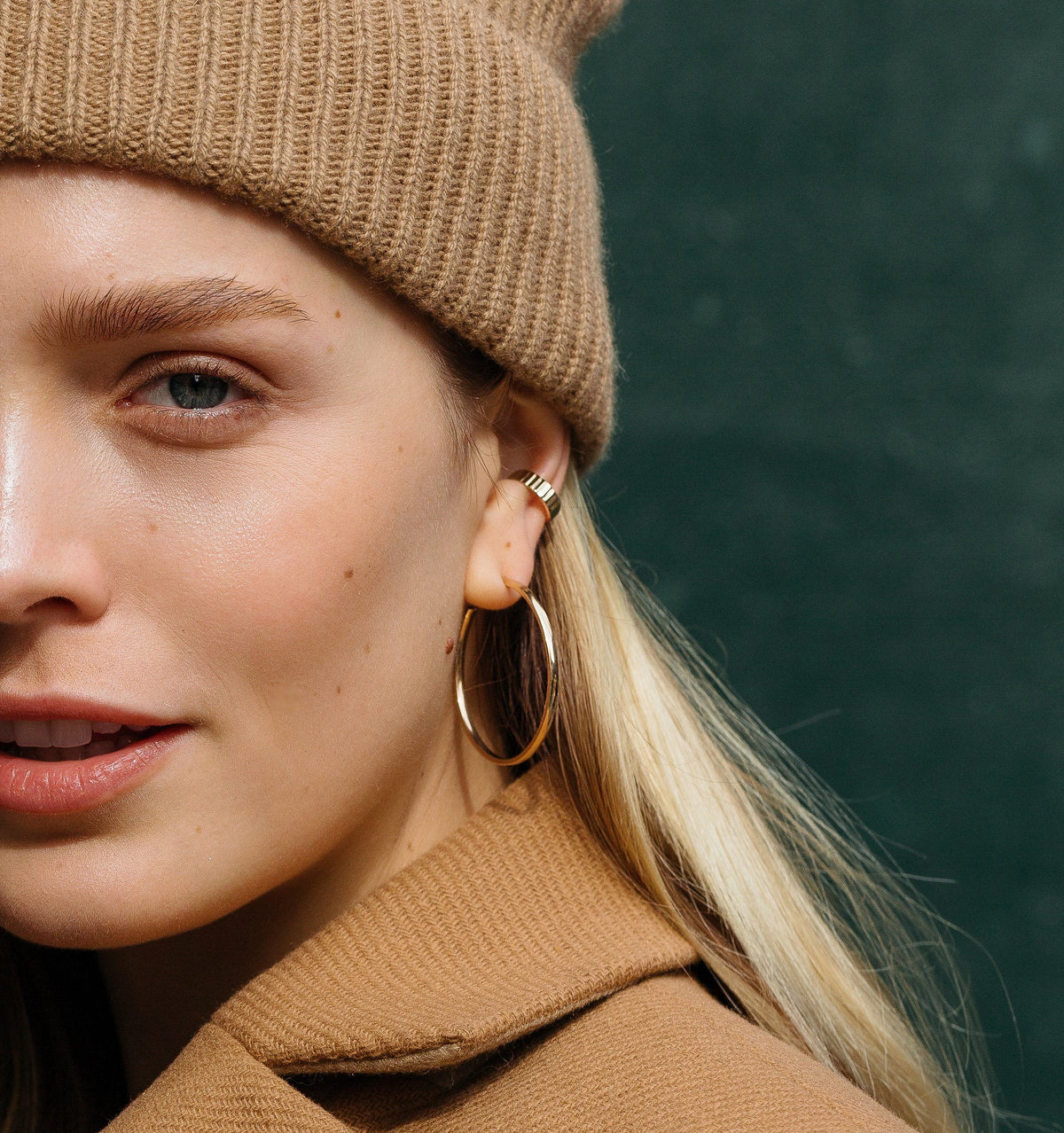 These Hoop Earrings by Aurate in 14k gold are an everyday essential redefined. With a just-right 3.7cm diameter and weight that speaks to quality, they offer the perfect mix of presence and polish. Clean lines, sleek gold, and a whisper of edge make them your go-to golden circle.