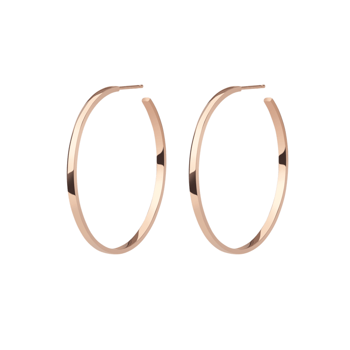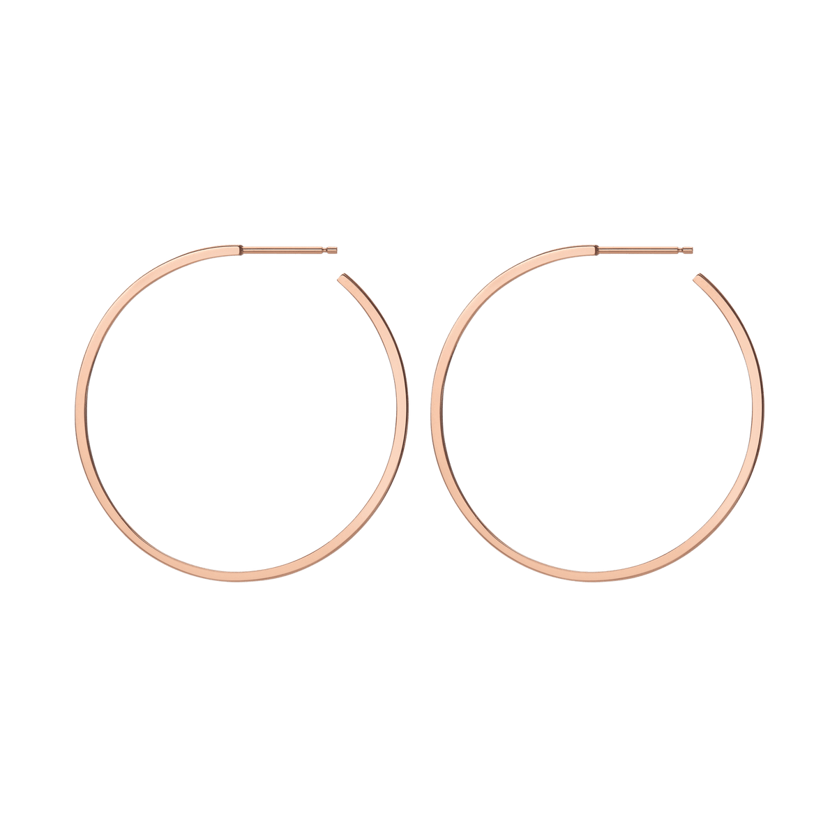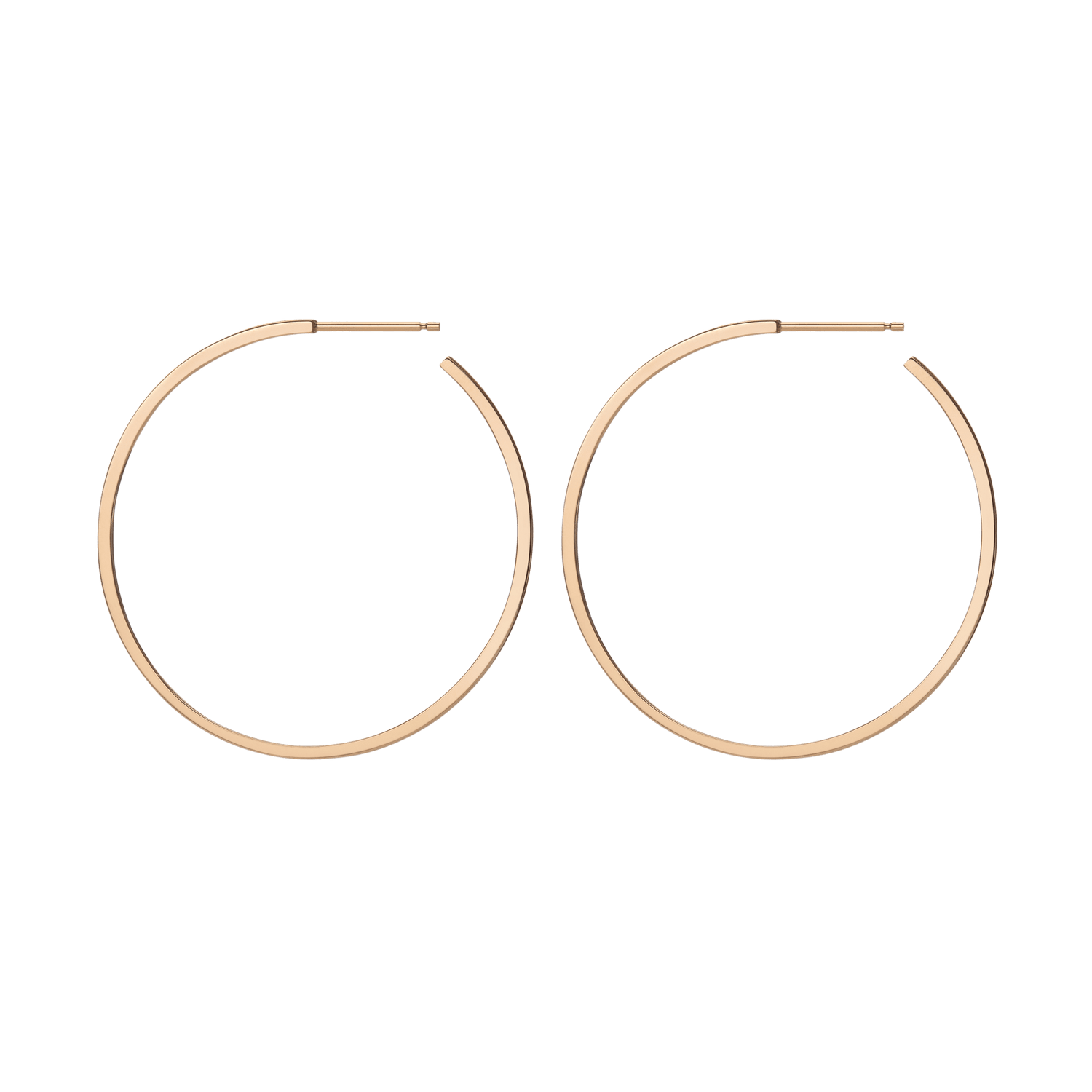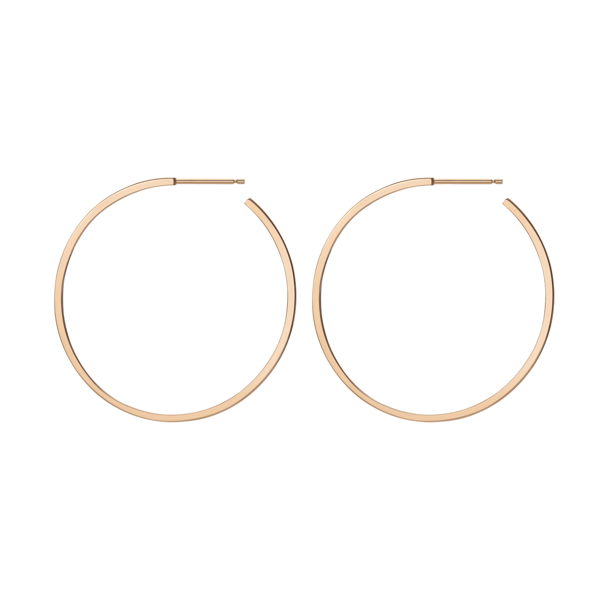Crafted in 14k gold. Diameter: 3.7cm. Thickness: 1.2mm. Weight: 2.6g–3.4g (single). Secured with post and wingnut closures.