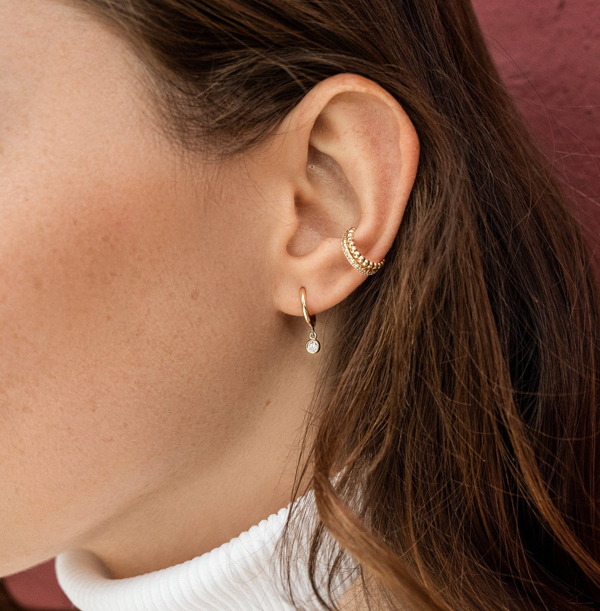 Huggie Earrings with Bezel