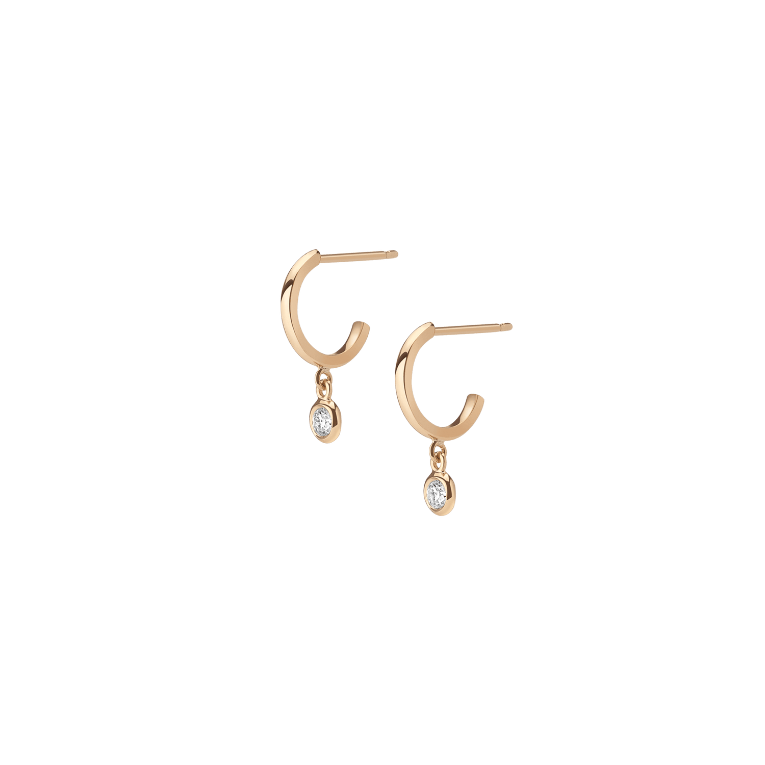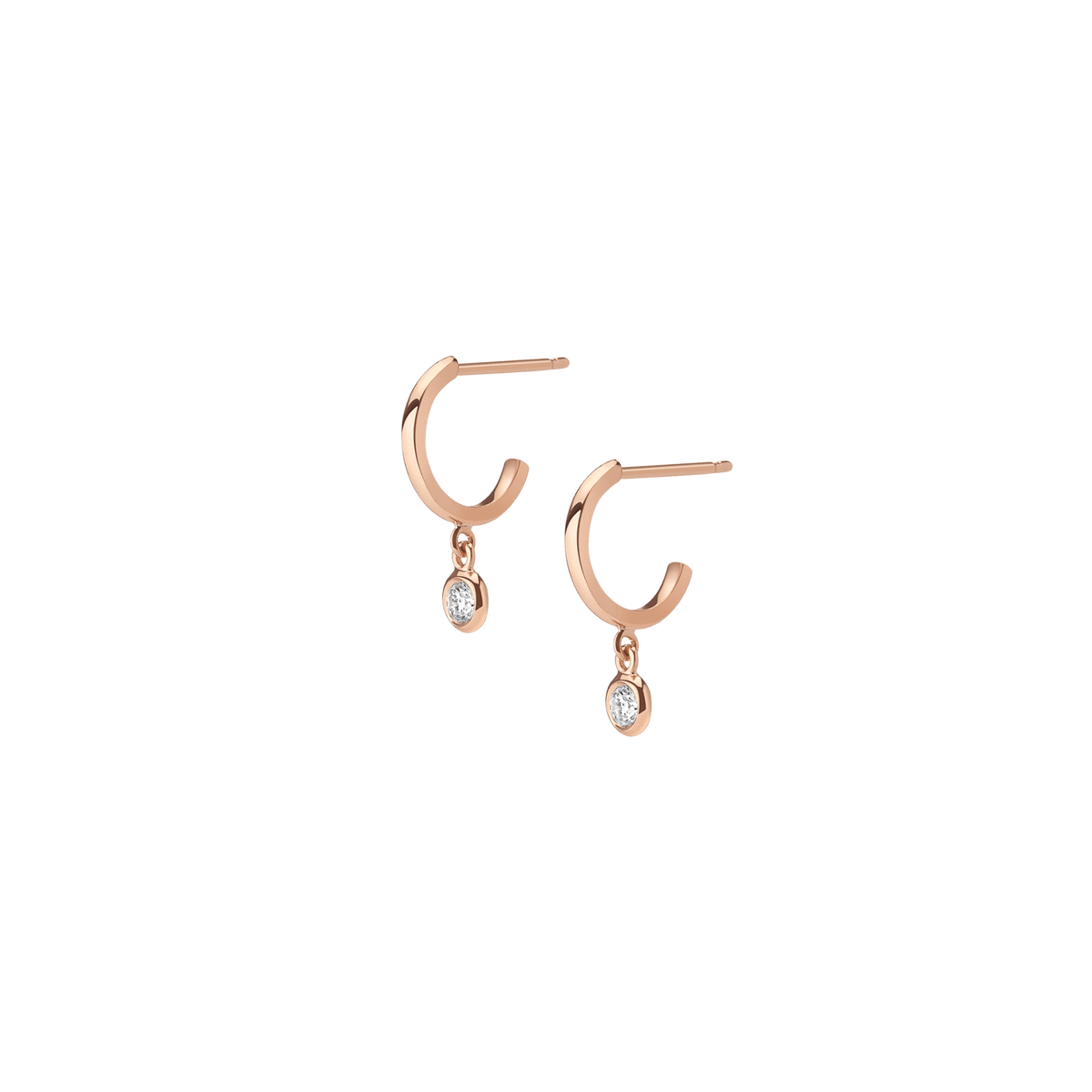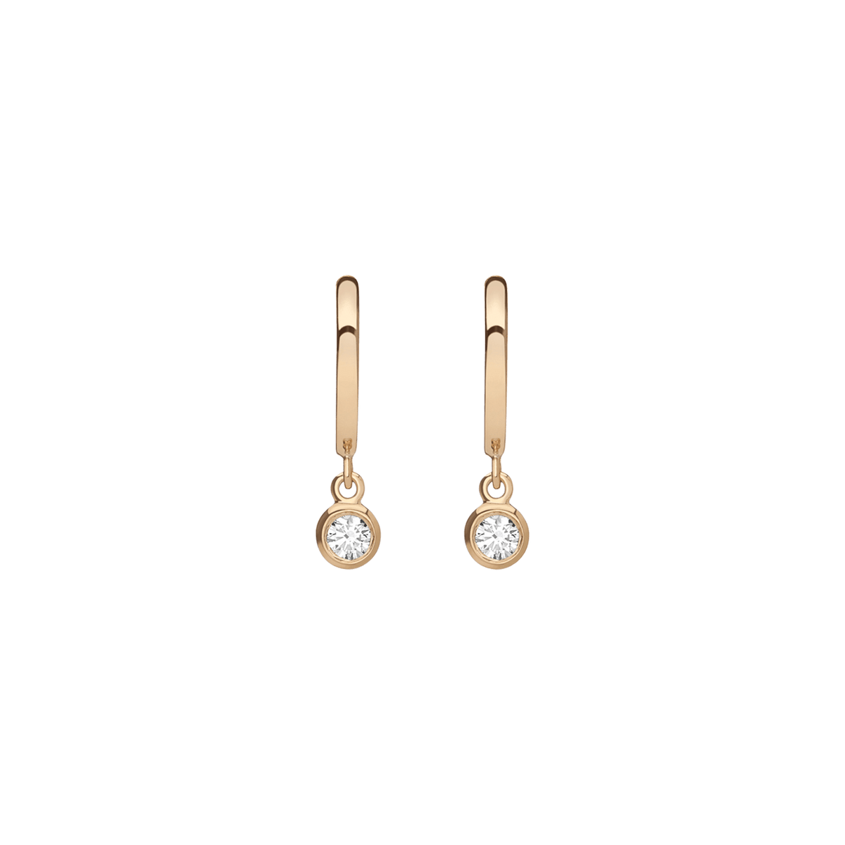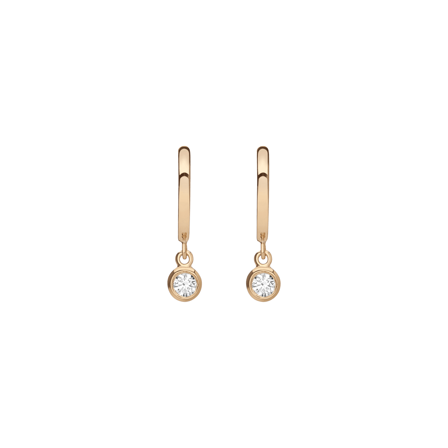 Handcrafted in 18k gold with 2x bezel-set SI clarity diamonds (0.08ct each, 2.7mm). Diameter: 10mm. Length: 14mm. Thickness: 1.5mm.