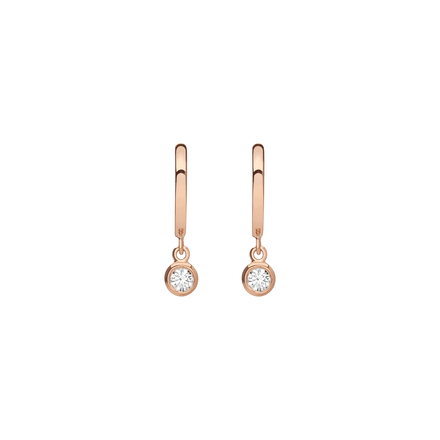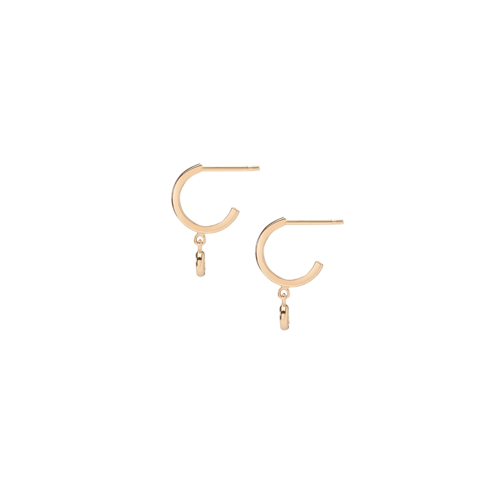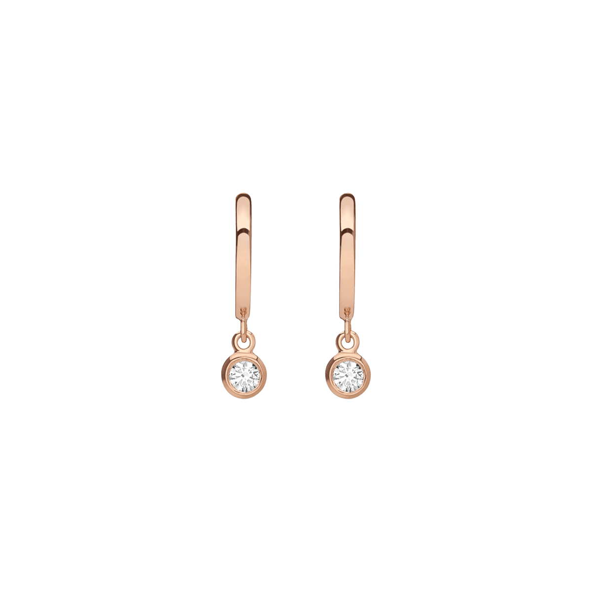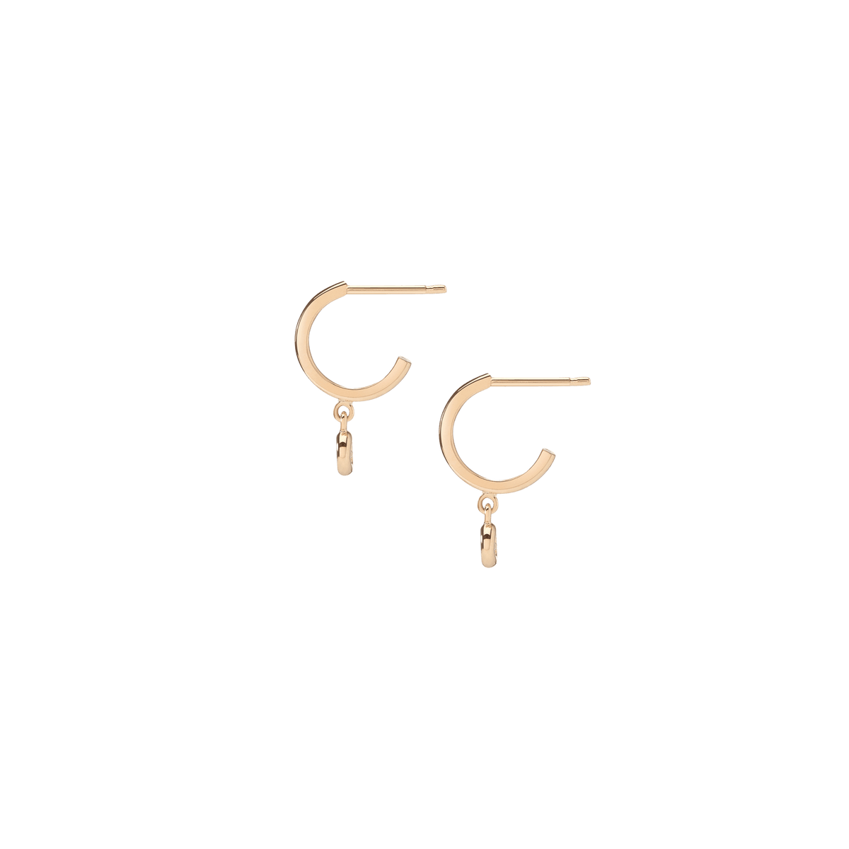 Handcrafted in 18k gold with 2x bezel-set SI clarity diamonds (0.08ct each, 2.7mm). Diameter: 10mm. Length: 14mm. Thickness: 1.5mm.