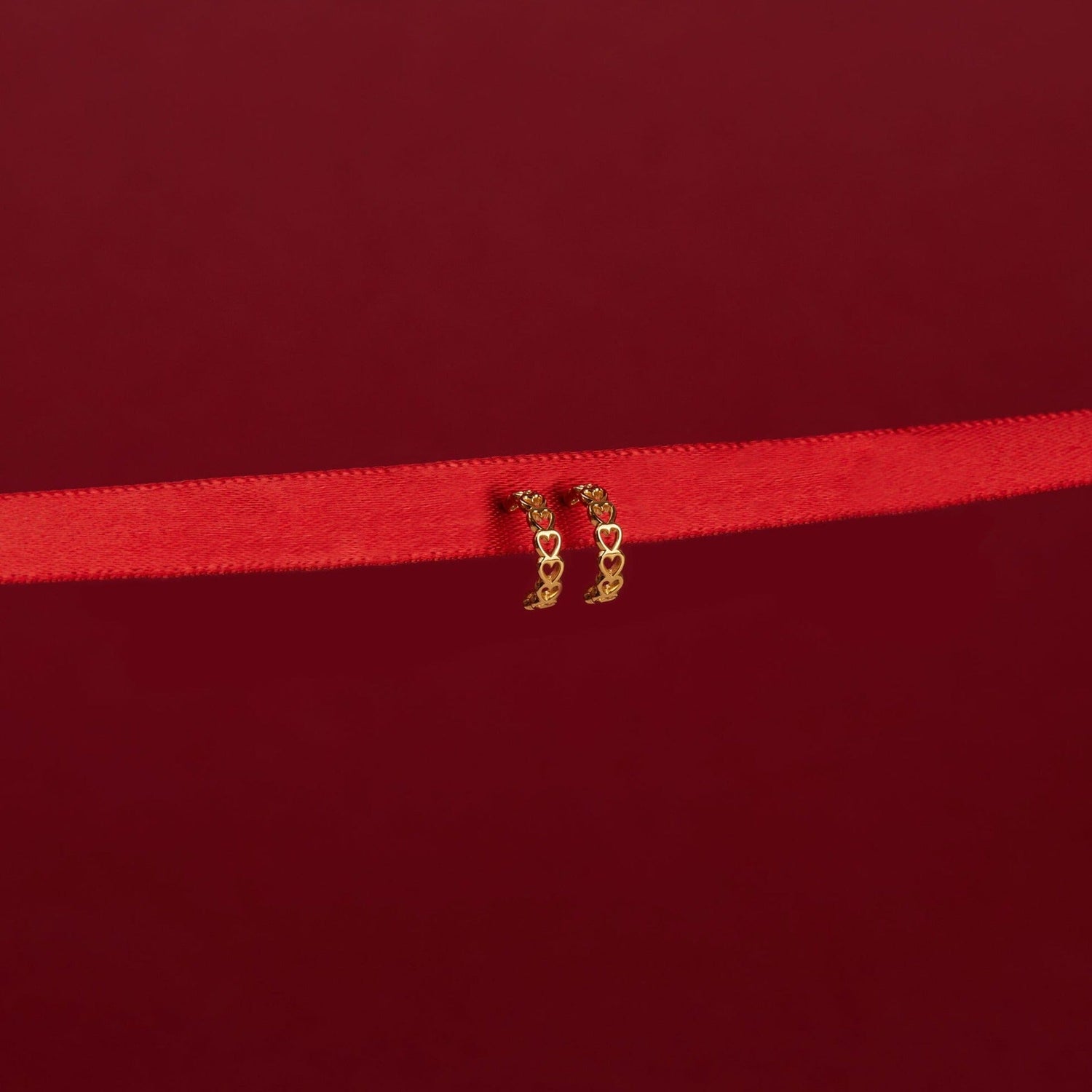 Handcrafted in vermeil with a continuous heart-outline design. Length: 10mm, width: 2mm, thickness: 1mm. Weight: 0.5g (single). Secured with post and wingnut.