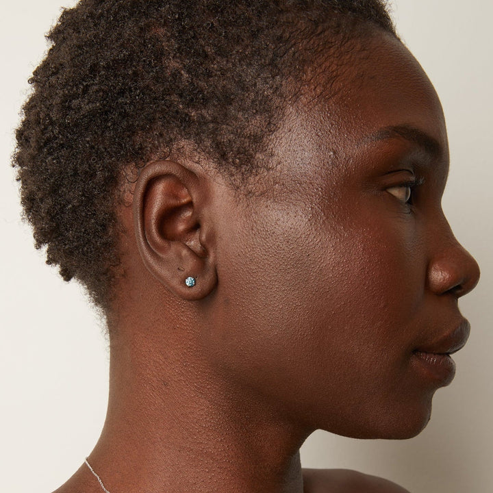 These Lab Grown Blue Diamond Solitaire Stud Earrings by Aurate in silver bring a refreshing burst of pastel sparkle to your everyday style. The serene hue and clean design make them perfect for stacking or solo shine.