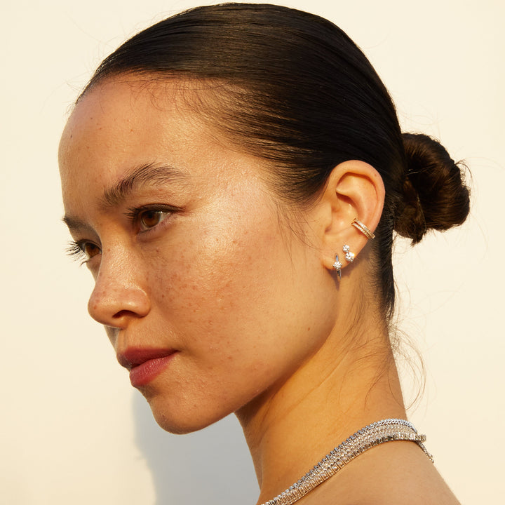 These Lab Grown Diamond Duo Earrings by Aurate in Silver feature an asymmetric pair of diamonds in a chic drop format. Each earring is prong-set for brilliance and balance, delivering a subtle twist on the classic diamond stud. A bold yet refined take on everyday sparkle.