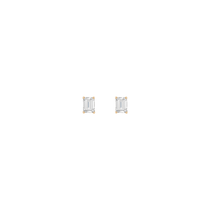 Crafted in 14k gold with SI2 clarity, F/G color emerald-cut lab grown diamonds totaling 2tcw (6.7×4.5mm each). Thickness: 6–6.5mm. Weight: 1.4g. Screw-back posts.