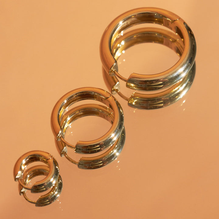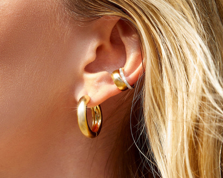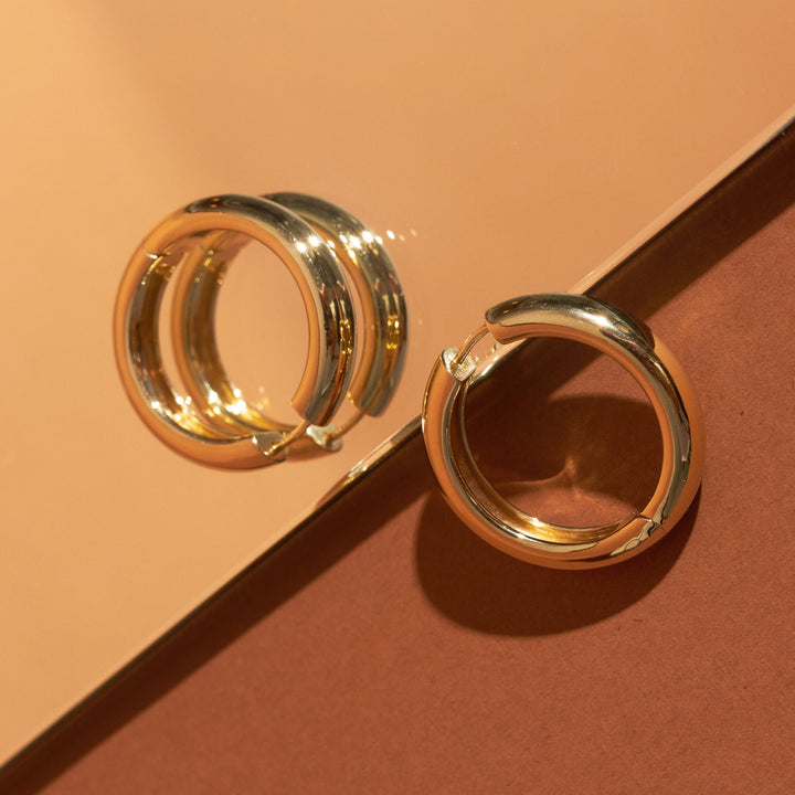 These Medium Chunky Hinged Hoop Earrings by Aurate strike the perfect balance between bold volume and everyday wearability. With a polished domed design that reflects light effortlessly, they bring a glamorous edge to casual and dressy outfits alike. The hinged closure ensures secure and comfortable wear, while the lightweight construction makes them ideal for all-day styling. Their modern yet timeless appeal makes them a jewelry box staple.