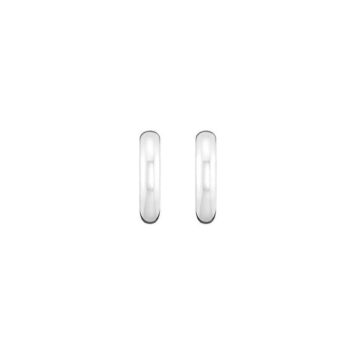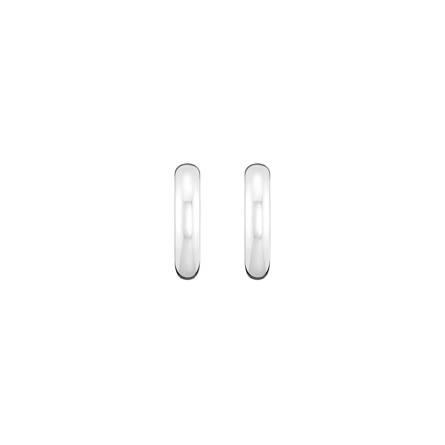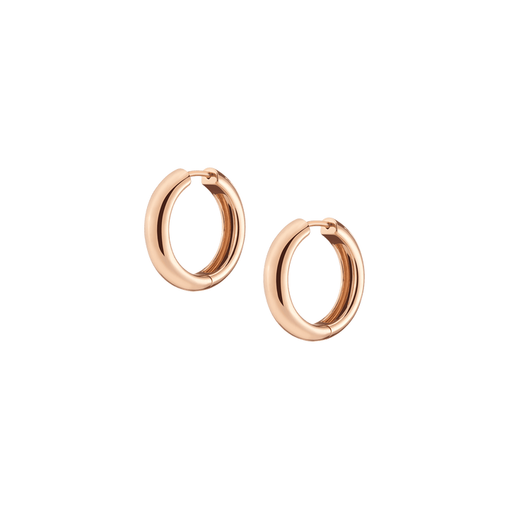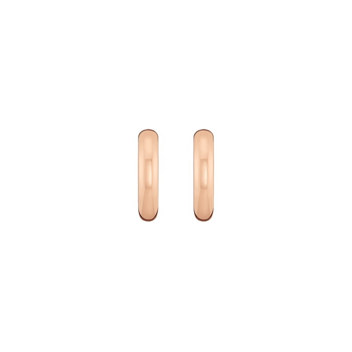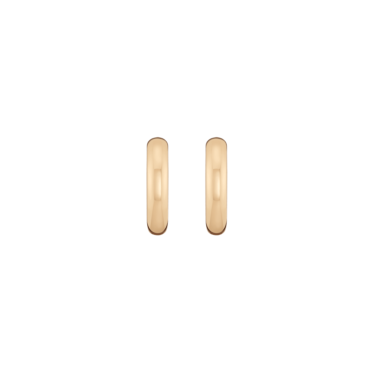 Made in 18k gold. Diameter: 18mm, Length: 25mm, Width: 3.5mm, Thickness: 5.5mm, Weight: 5.5g. Mirror polished, hollowed for comfort. Hinged curved ear wire.