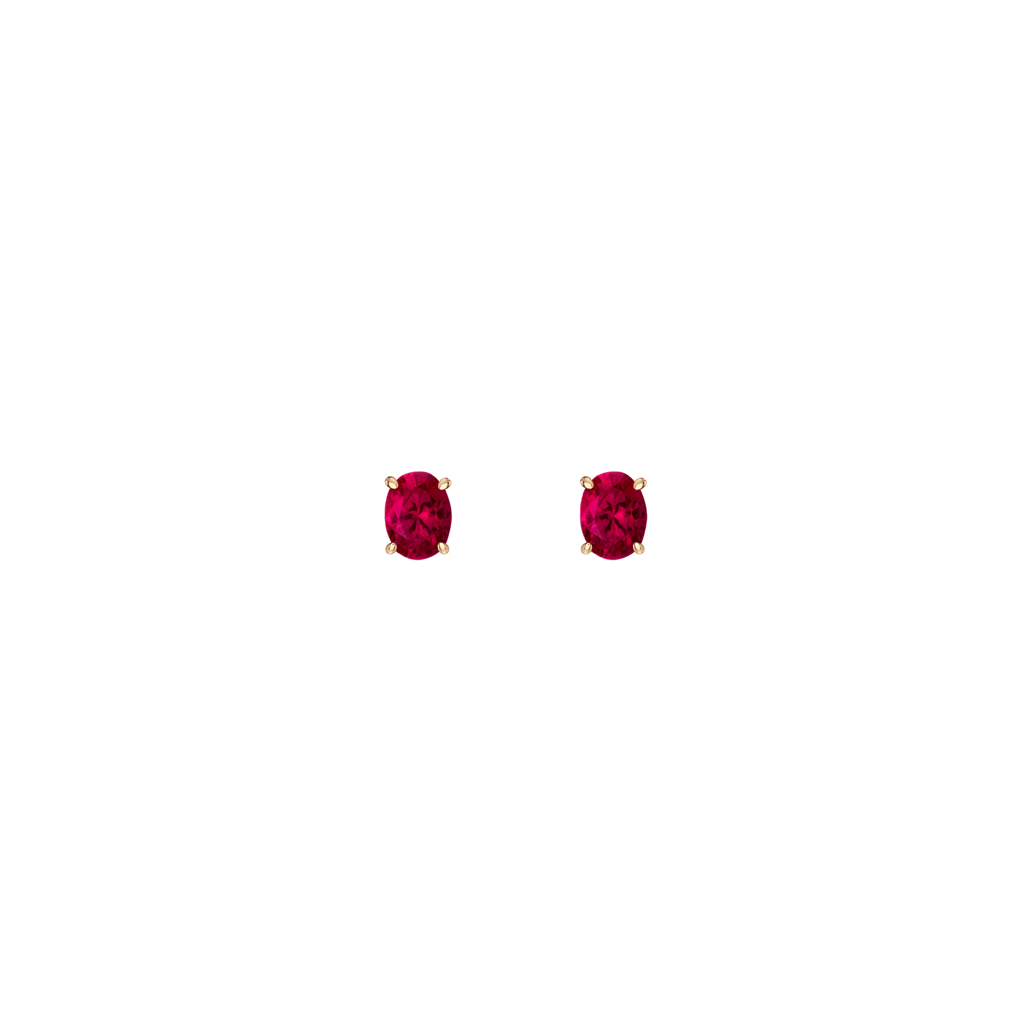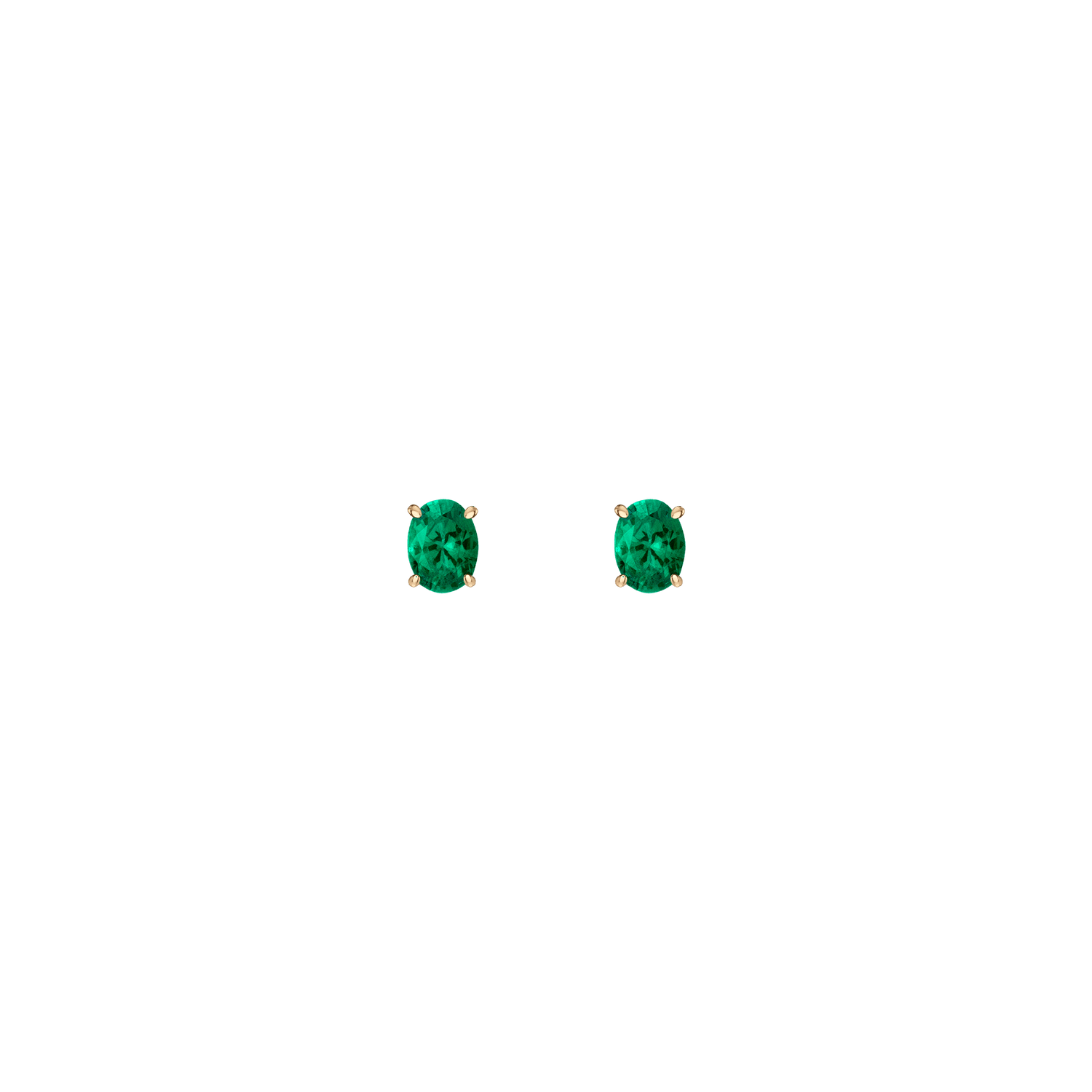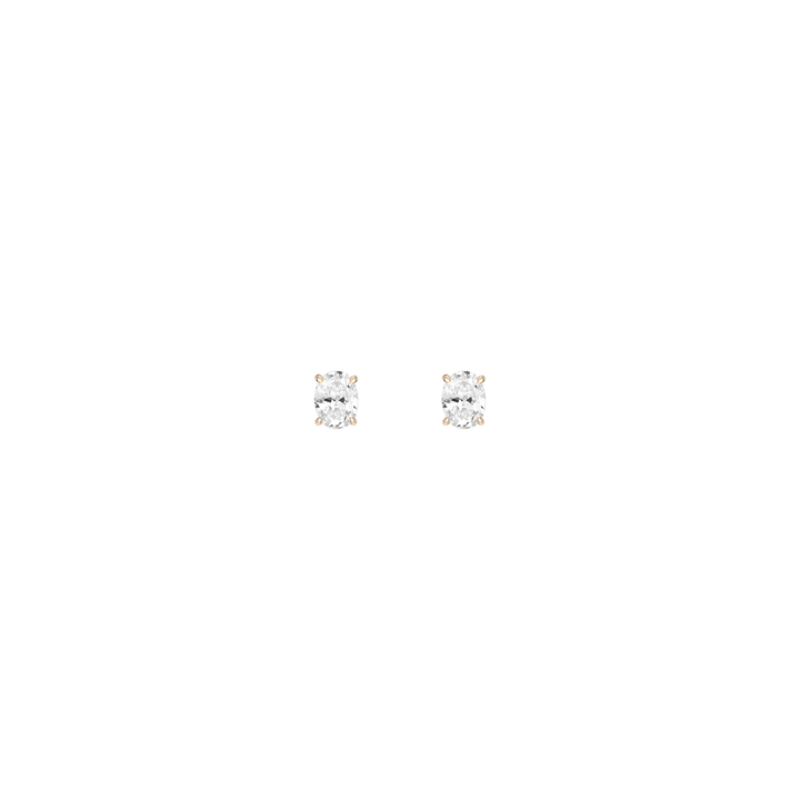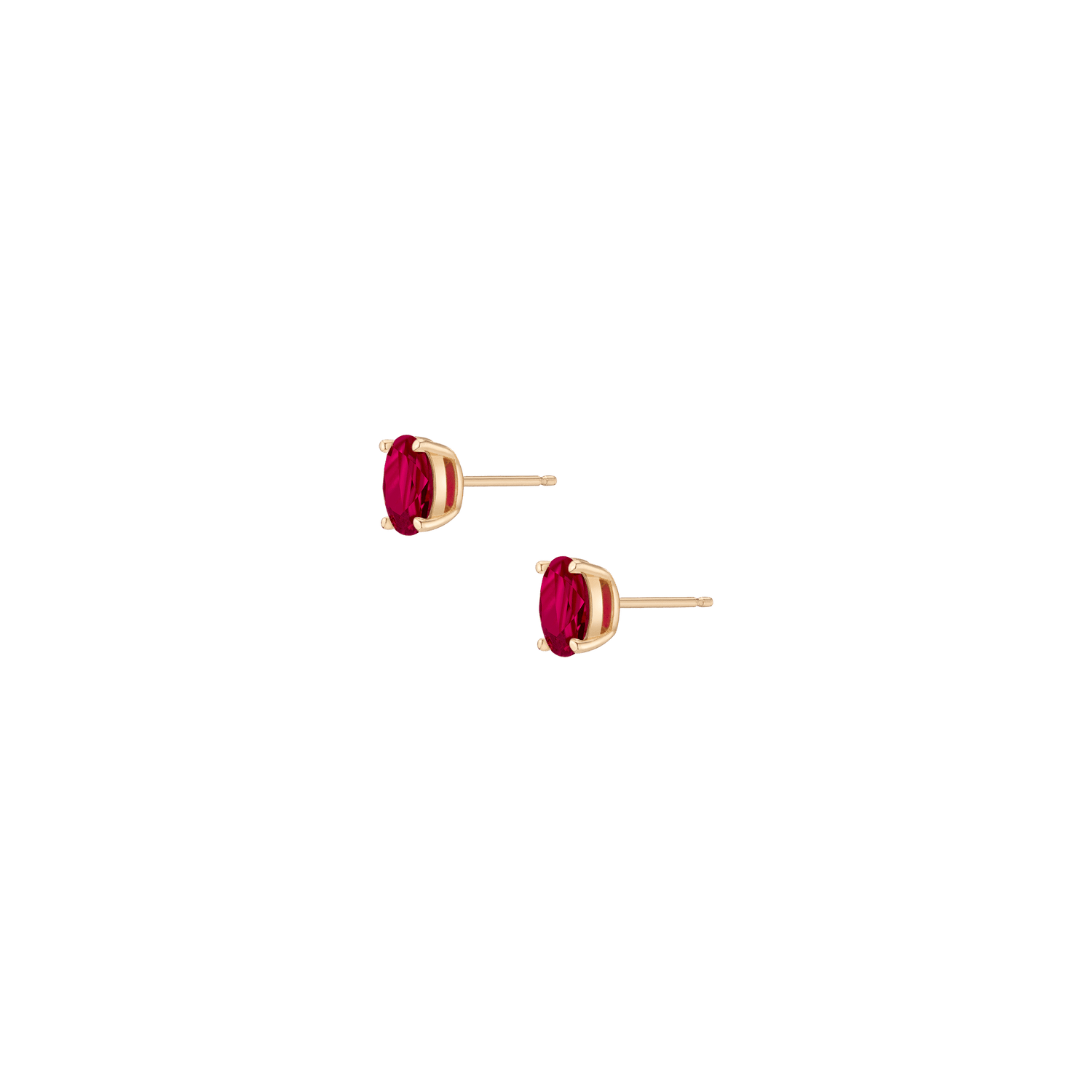 Prong-set 8mm oval-cut AAA quality created gemstones (2ct each) in vermeil gold. Available in White Sapphire, Emerald, Ruby, Blue Sapphire, Aquamarine. Thickness: 5mm. Width: 8mm. Weight: 1.5g. Set with wingnut backing.
