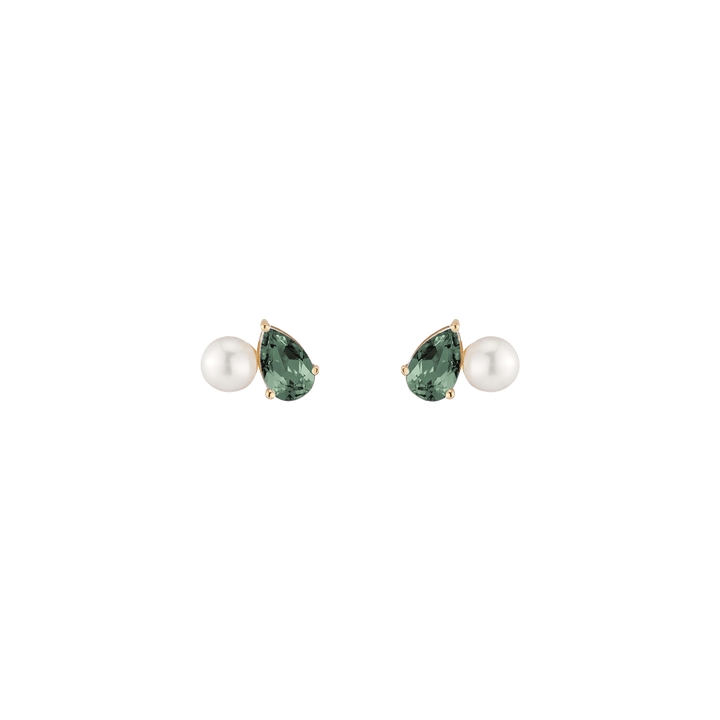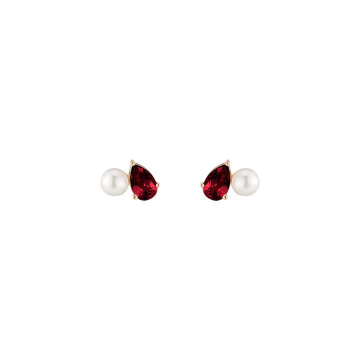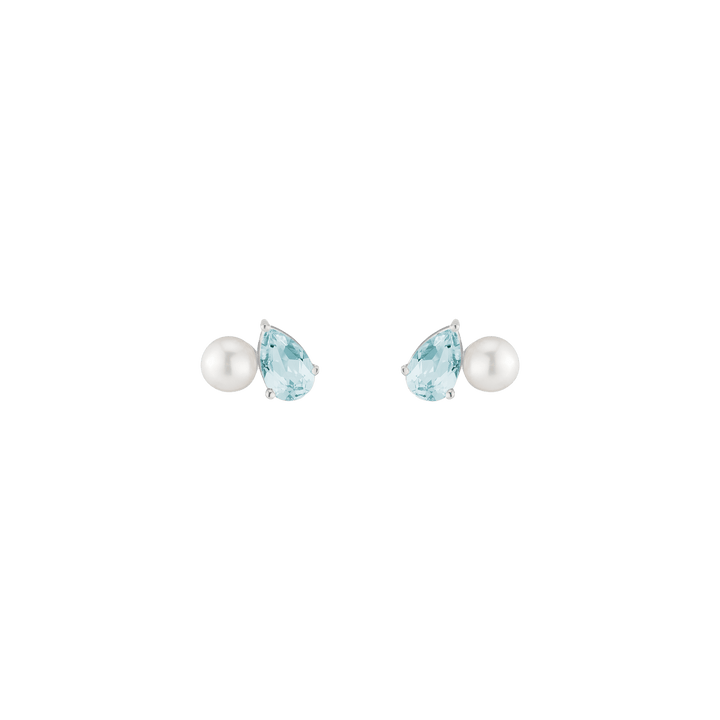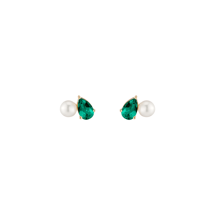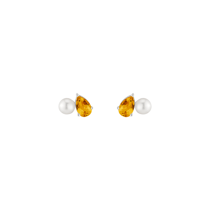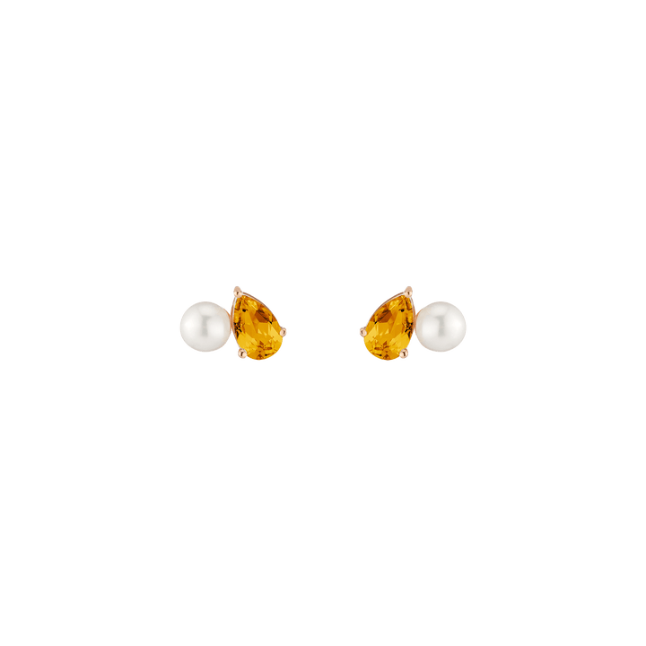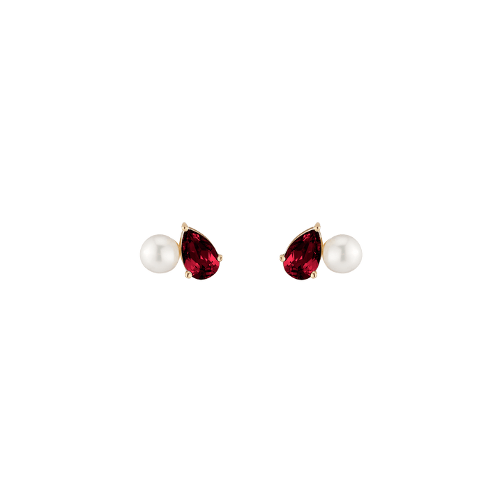 Crafted in vermeil with a 5.5mm freshwater cultured pearl and an 8x5mm pear-cut gemstone. Set on posts with wingnut backs. Weight: 3.5g.