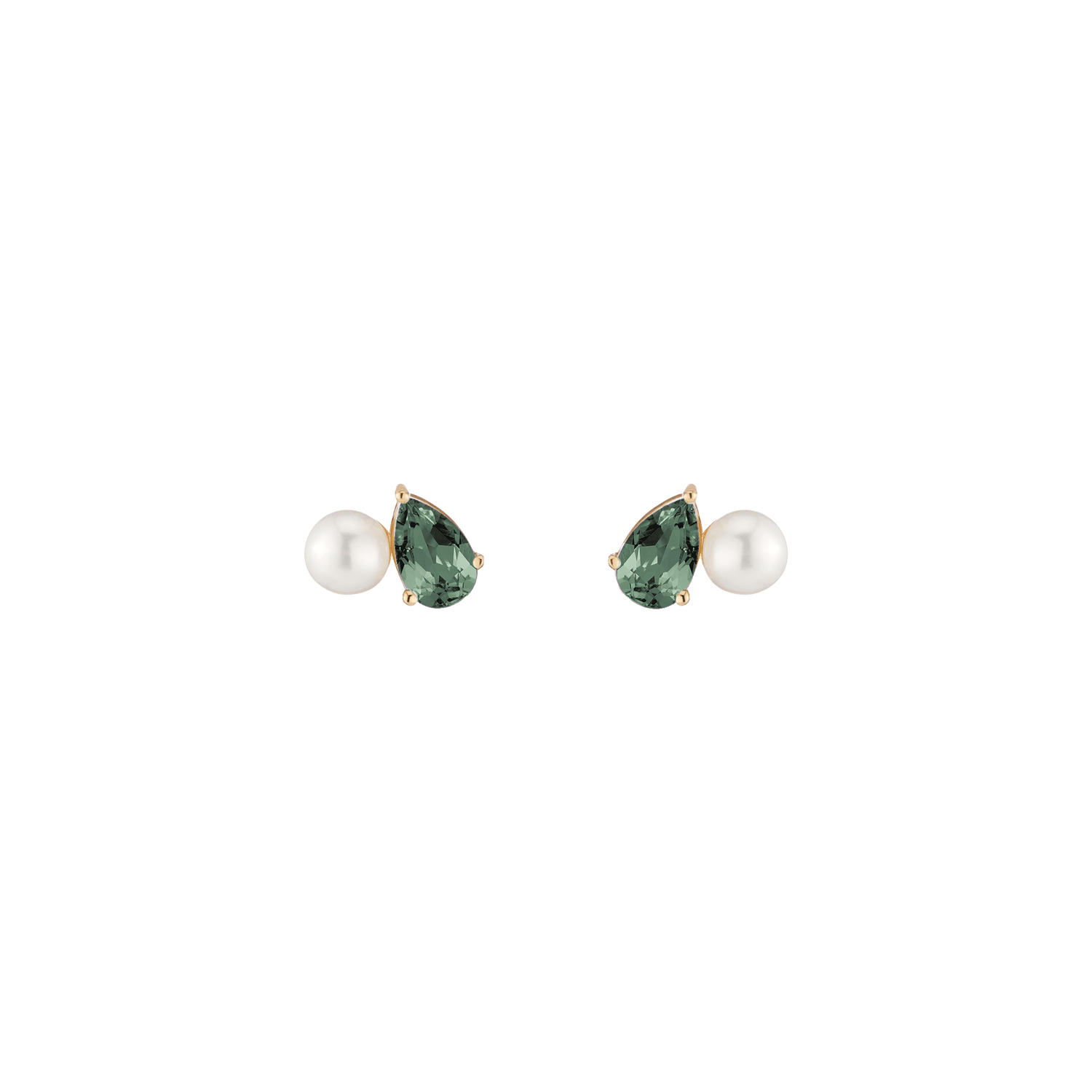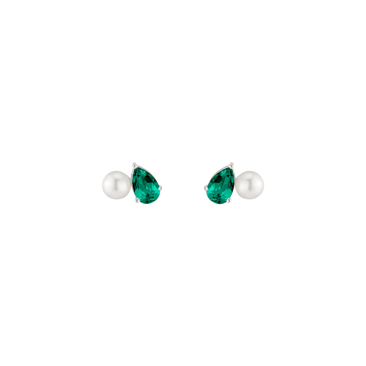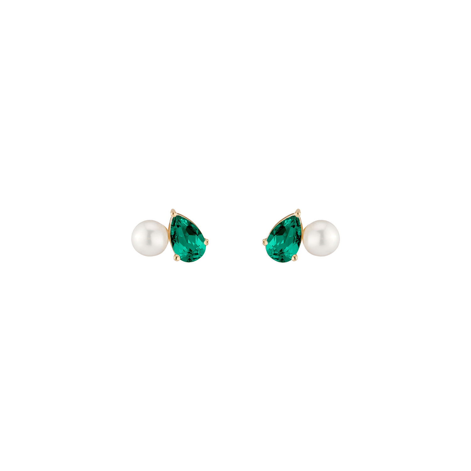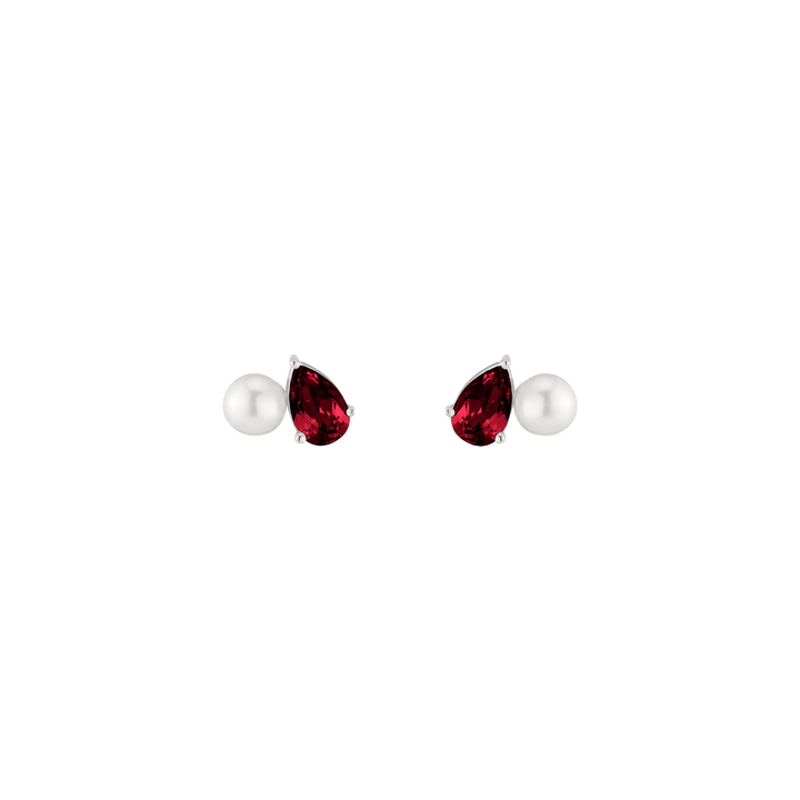 Crafted in vermeil with a 5.5mm freshwater cultured pearl and an 8x5mm pear-cut gemstone. Set on posts with wingnut backs. Weight: 3.5g.