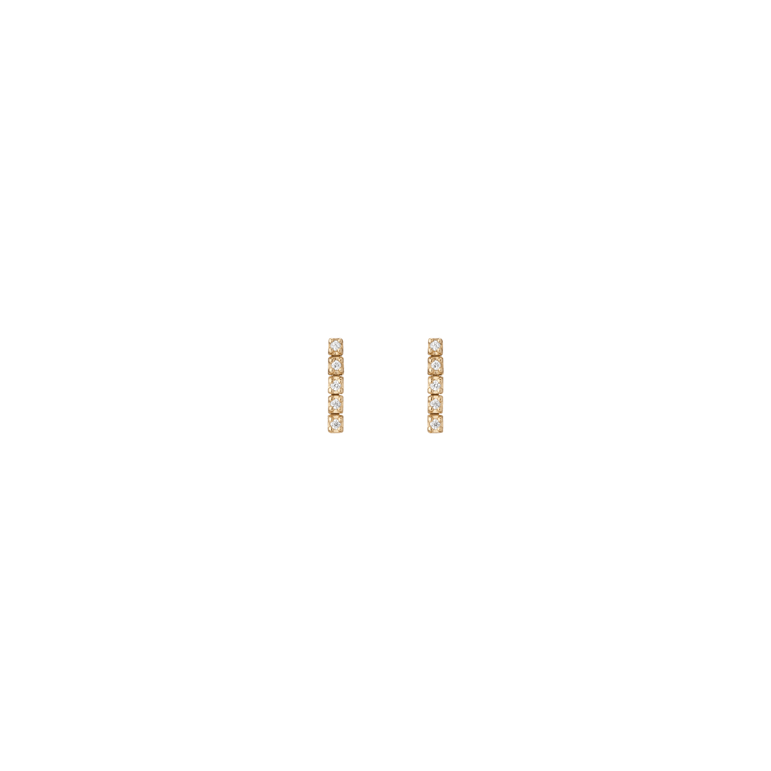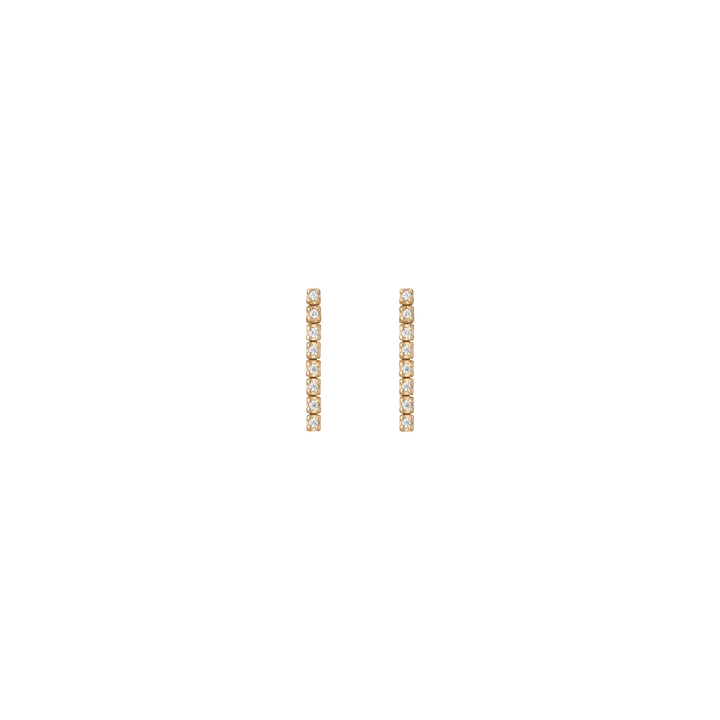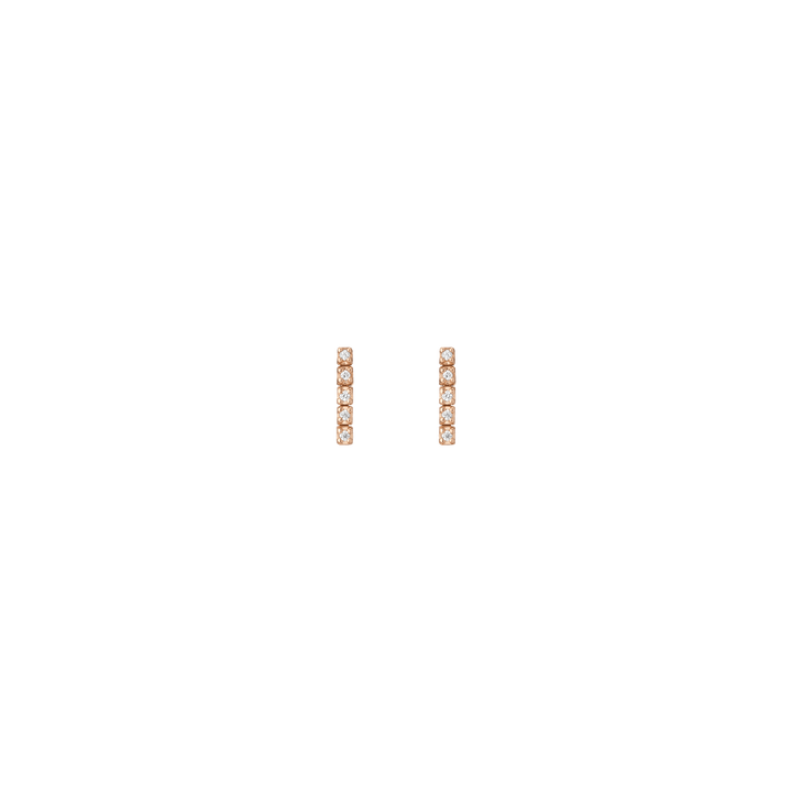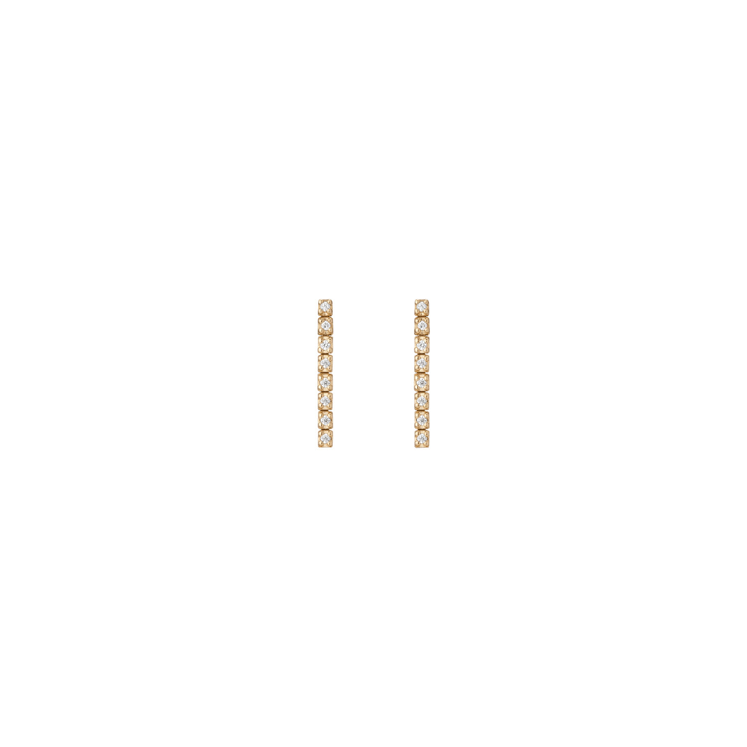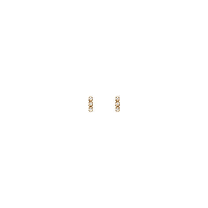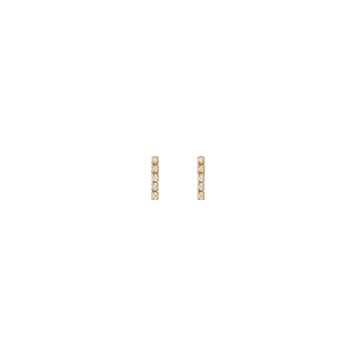 Handcrafted in 14k gold with GH SI quality round lab-grown diamonds, each 1mm (0.0058ct). Available options: 3-stone pair (0.035tcw), 5-stone (0.058tcw), 8-stone (0.093tcw), 12-stone (0.140tcw). Lengths: 6mm to 23mm. Width: 1.8mm, thickness: 2mm; weight 0.4g–1.6g per pair.