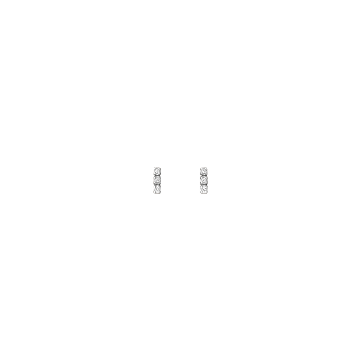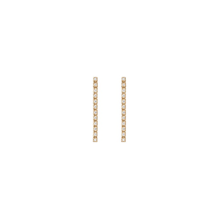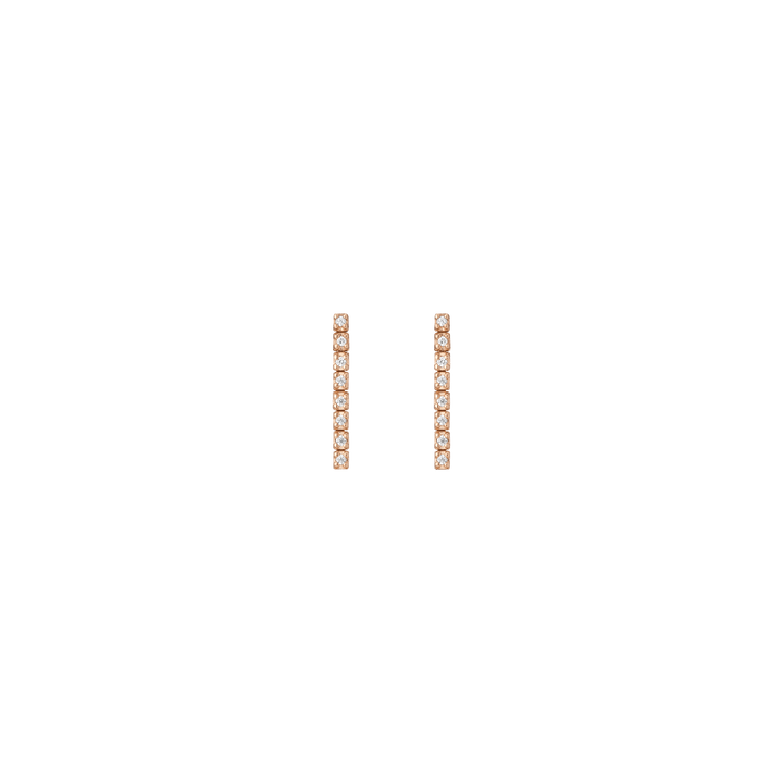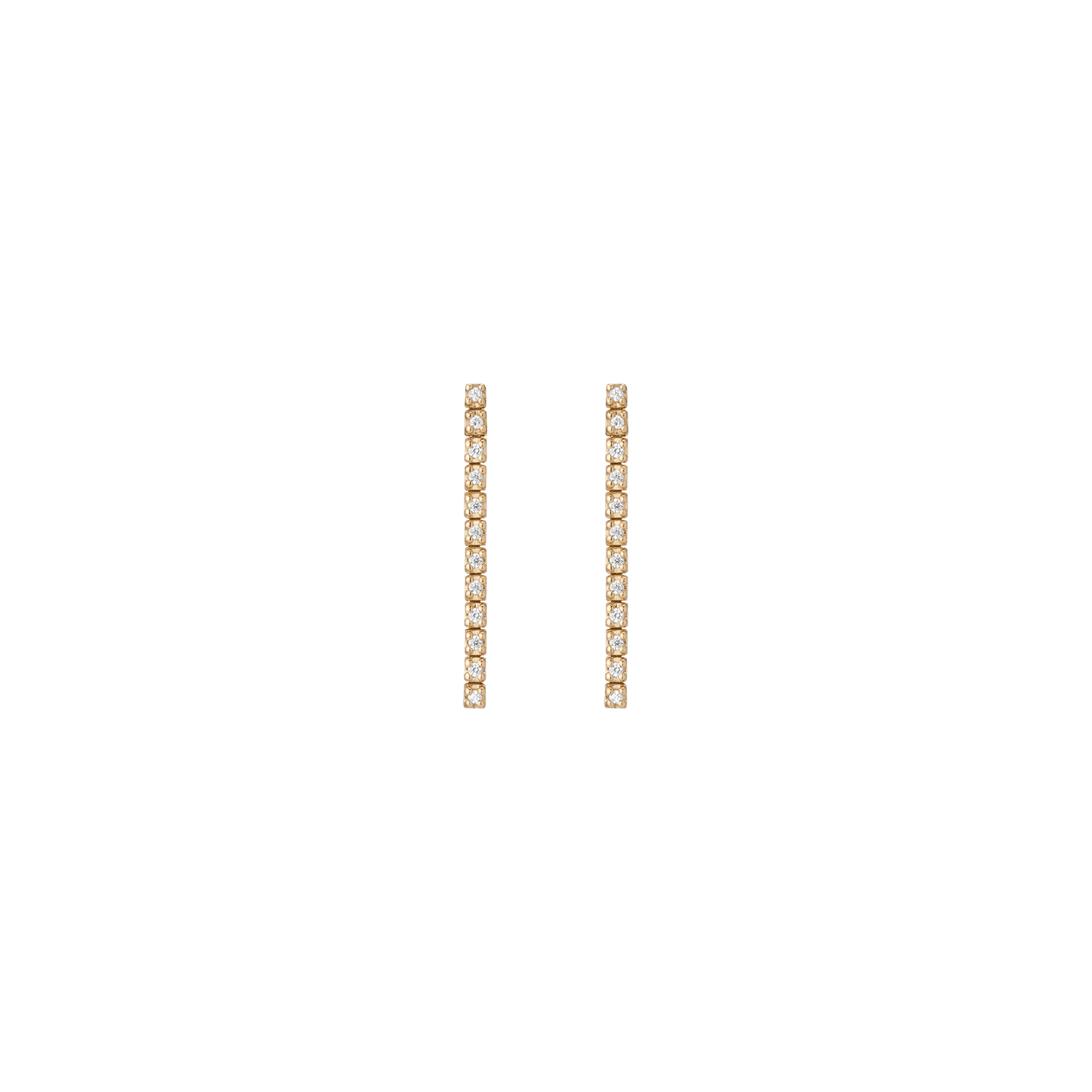 Handcrafted in 14k gold with GH SI quality round lab-grown diamonds, each 1mm (0.0058ct). Available options: 3-stone pair (0.035tcw), 5-stone (0.058tcw), 8-stone (0.093tcw), 12-stone (0.140tcw). Lengths: 6mm to 23mm. Width: 1.8mm, thickness: 2mm; weight 0.4g–1.6g per pair.
