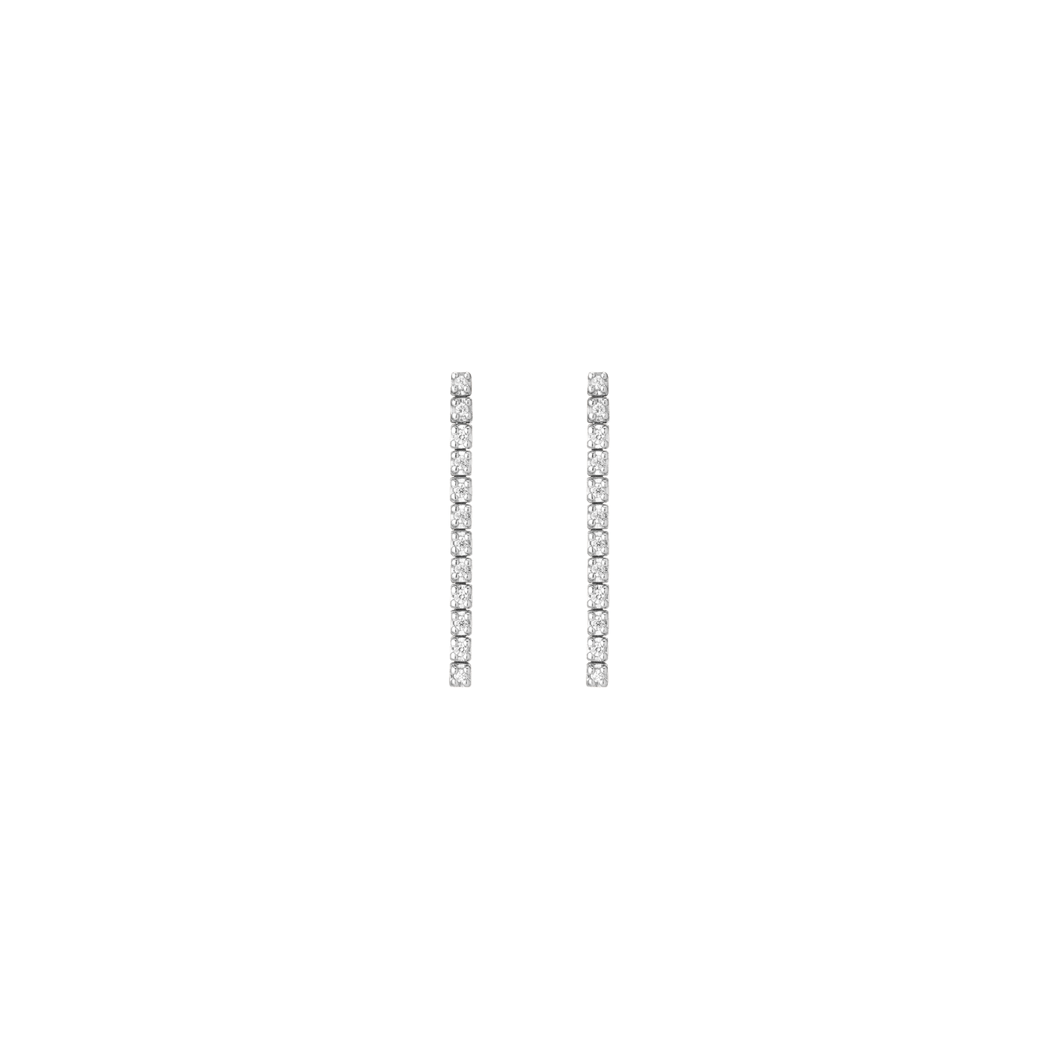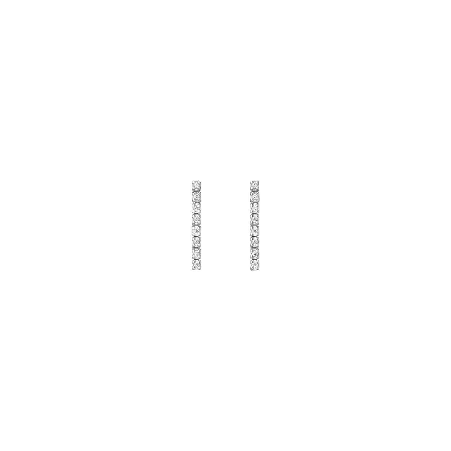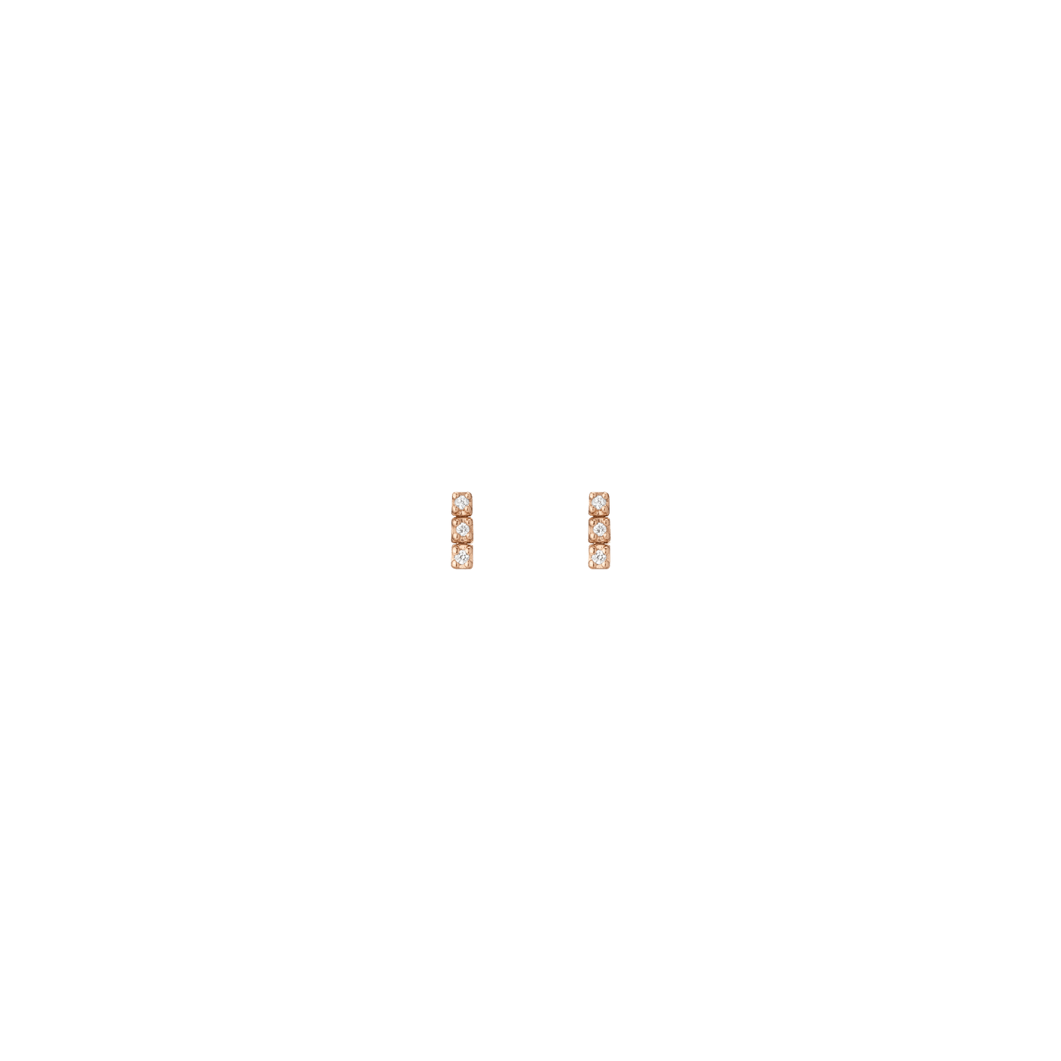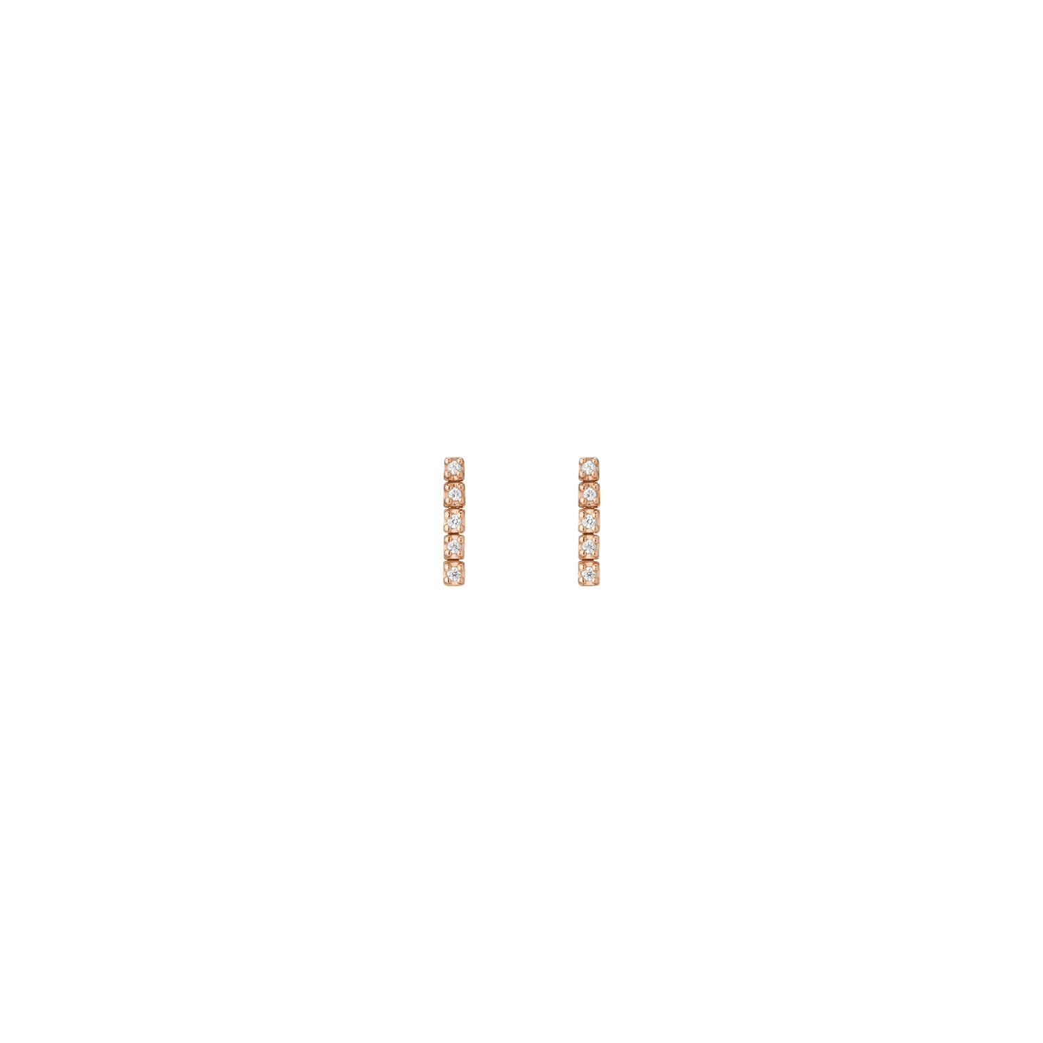 Handcrafted in 14k gold with GH SI quality round lab-grown diamonds, each 1mm (0.0058ct). Available options: 3-stone pair (0.035tcw), 5-stone (0.058tcw), 8-stone (0.093tcw), 12-stone (0.140tcw). Lengths: 6mm to 23mm. Width: 1.8mm, thickness: 2mm; weight 0.4g–1.6g per pair.