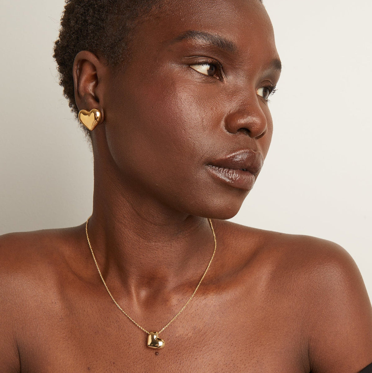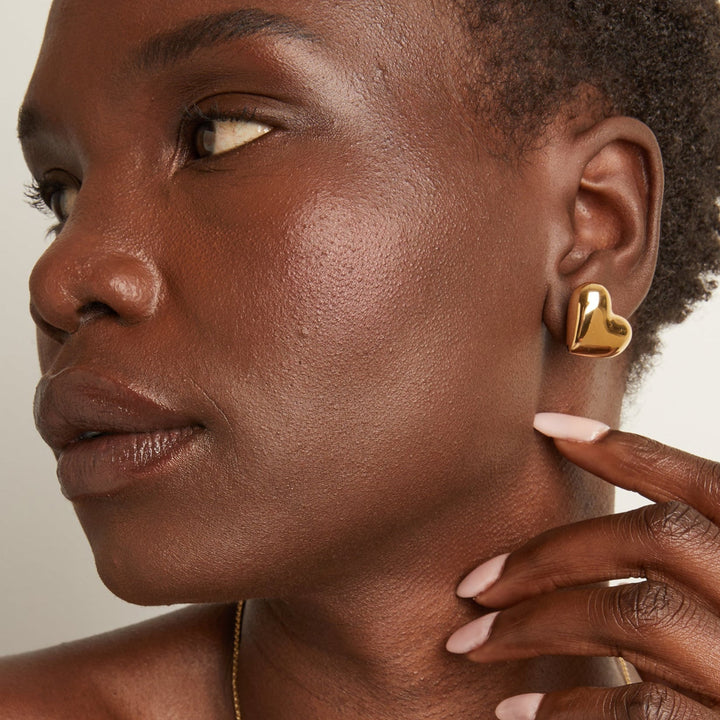 These Pillow Heart Stud Earrings by Aurate are crafted with substantial dimension that beautifully catches both light and attention. Their bold yet classic silhouette exudes warmth and affection, making them a charming addition to any jewelry lover’s weekly rotation. With a sleek high-polish finish, these heart-shaped studs offer a modern expression of love and are ideal for daily wear or as a heartfelt gift.