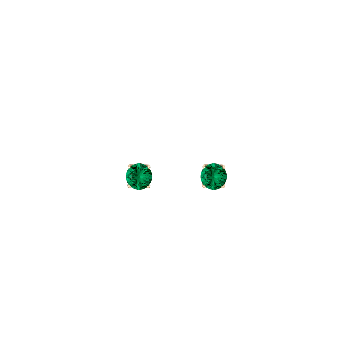 Prong-set in high-quality vermeil with AAA grade created gemstones. Stones: 8mm (2ct) round-cut White Sapphire, Blue Sapphire, Emerald, Ruby, or Aquamarine. Thickness: 5mm; Weight: 1.5g.