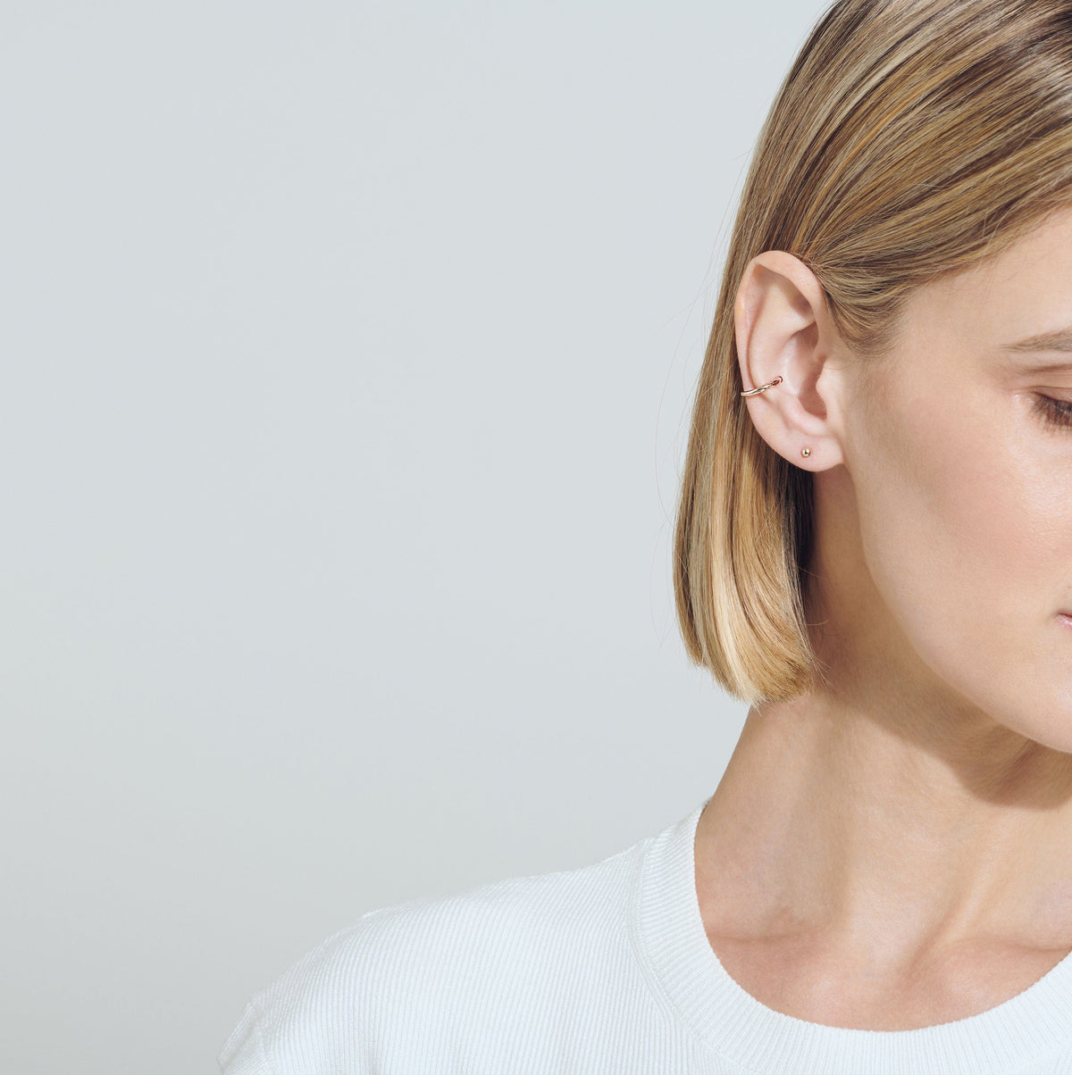 This Simple Mini Ear Cuff by Aurate in 14k is a rebellious yet refined addition to any ear stack. Designed to perch high on the lobe without requiring a piercing, it adds a subtle gleam and unexpected edge. Lightweight and minimalist, it's a statement in simplicity.