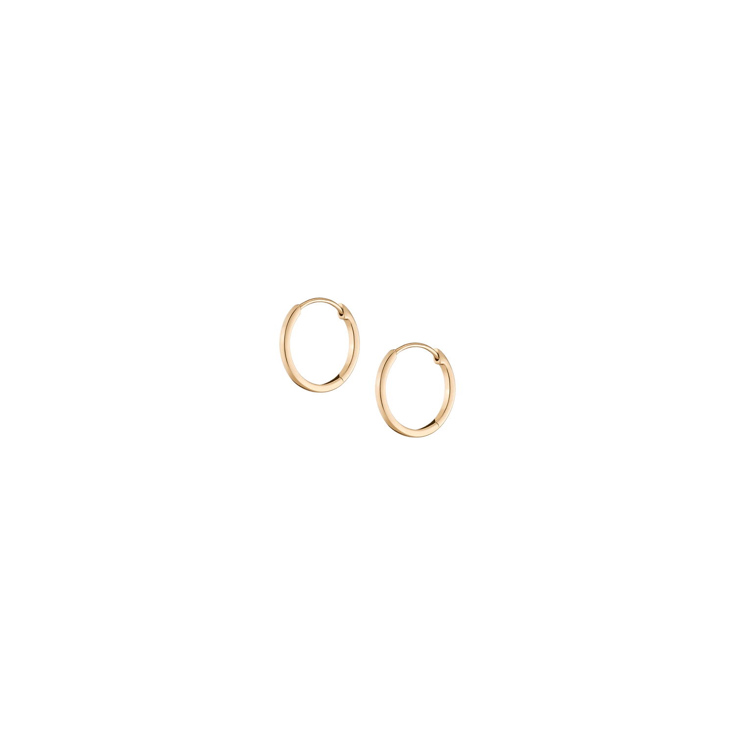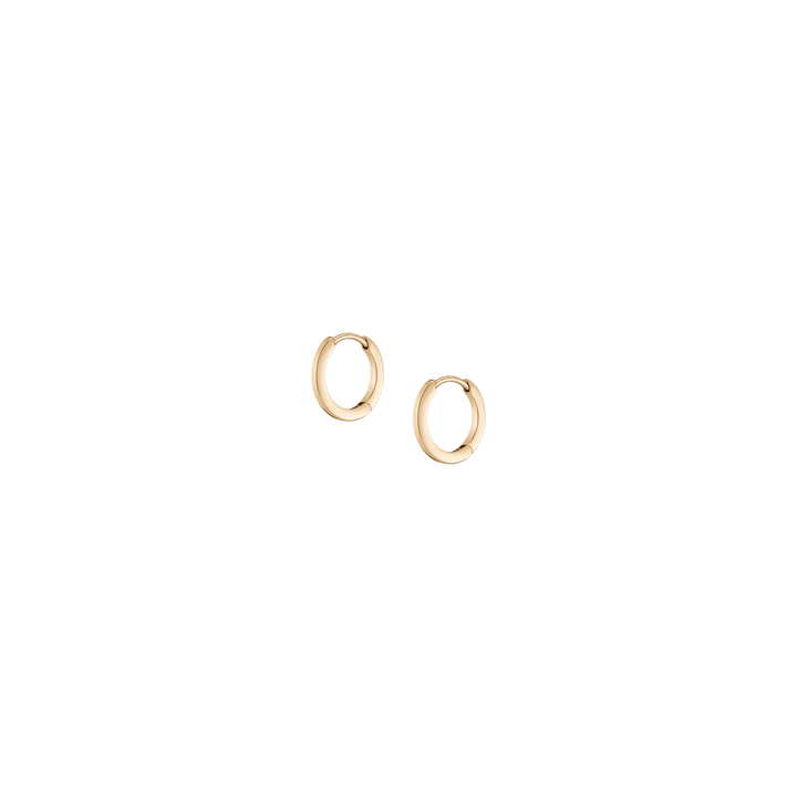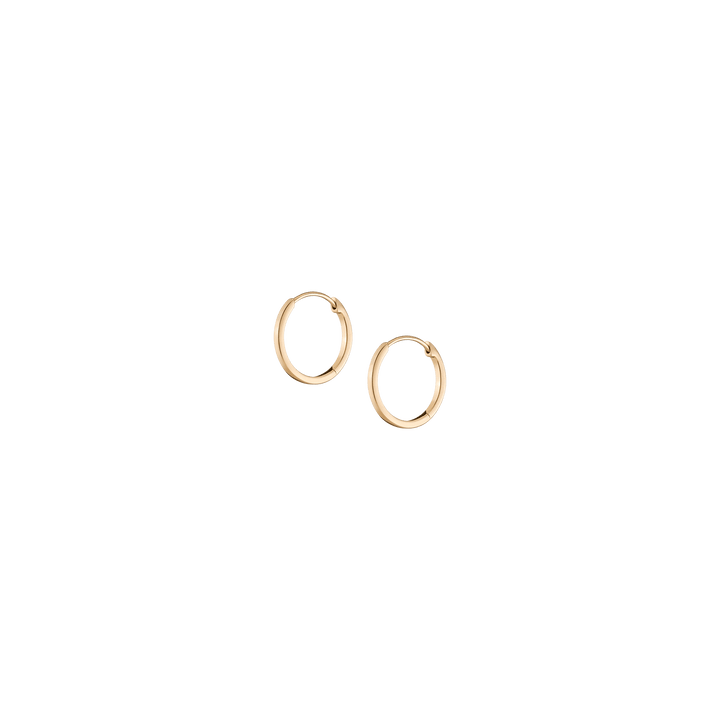 Made in gold vermeil. Available in 10mm, 12mm, or 15mm diameter. Width and Thickness: 1.2mm. Weight: 0.5–0.7g. Mirror polished finish, hinged closure.