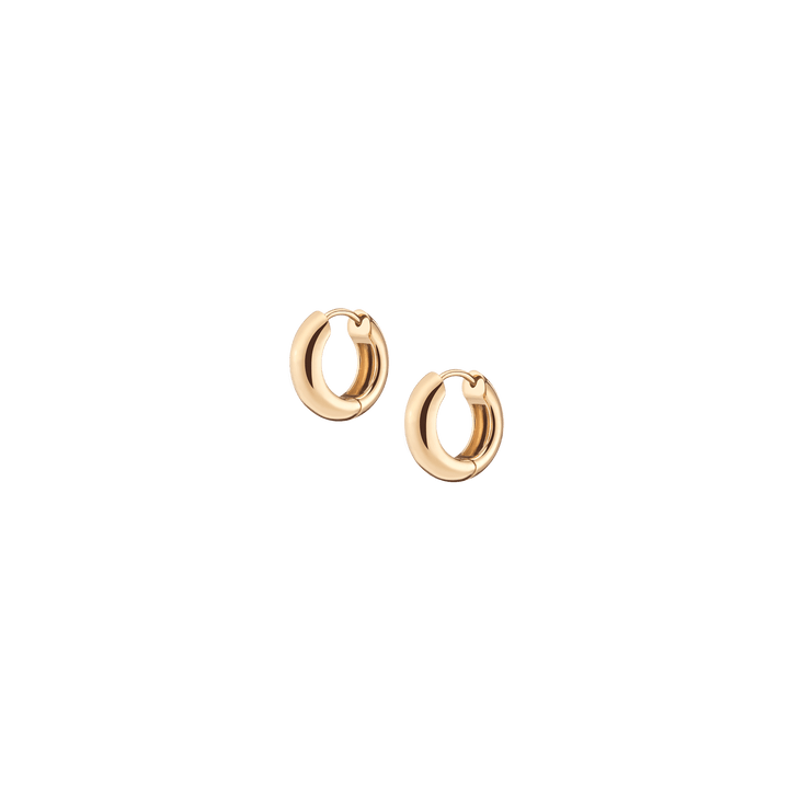 These Small Chunky Hinged Hoop Earrings by Aurate are the perfect fusion of boldness and lightness. Sculpted in a domed silhouette with a mirror-like polish, they exude modern glamour while staying comfortable enough for everyday wear. Their minimalist, compact form offers high visual impact without the weight.