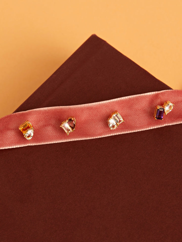 Materials: Crafted in gold vermeil with 5x3mm pear and 5x3mm emerald-cut gemstones (0.29ct each). Weight: 0.3g. Includes a combination of lab-grown and natural stones.