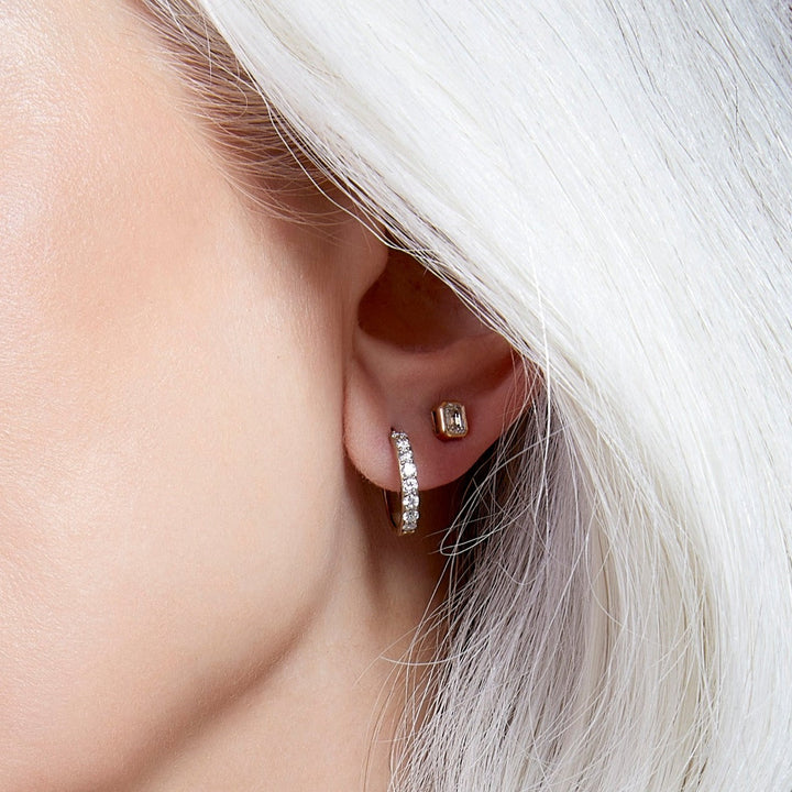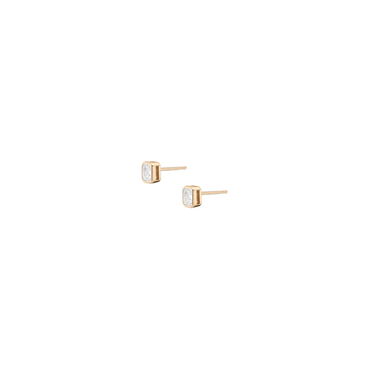 These XL Lab Grown Diamond Emerald Bezel Stud Earrings by Aurate in 18k gold offer the same luminous design with a richer, deeper tone. The bezel setting enhances the clean geometry of each lab-grown diamond, making them a timeless choice for refined, minimalist sparkle.