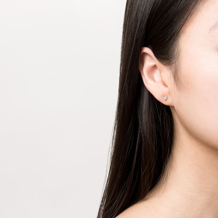 Handcrafted in 14-karat gold with two lab-grown pear-cut diamonds (4x3mm each), totaling 0.42tcw. SI1 clarity, brilliant cut. Secured with post and wingnut backs.